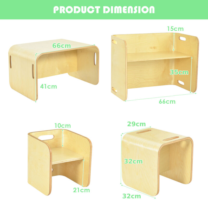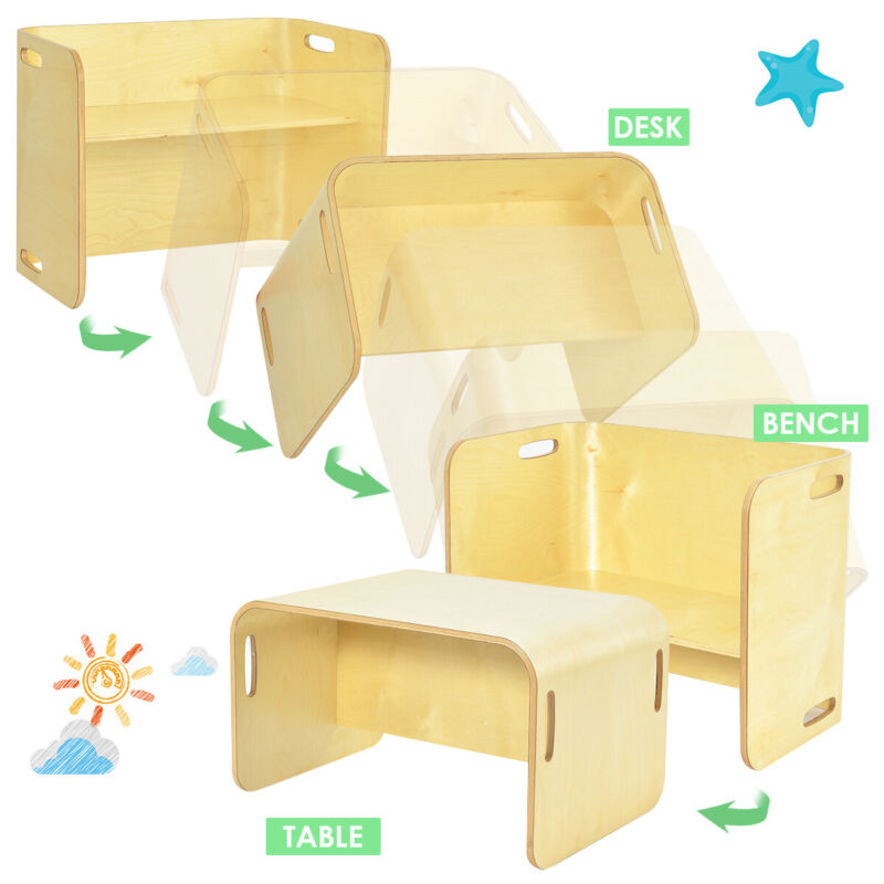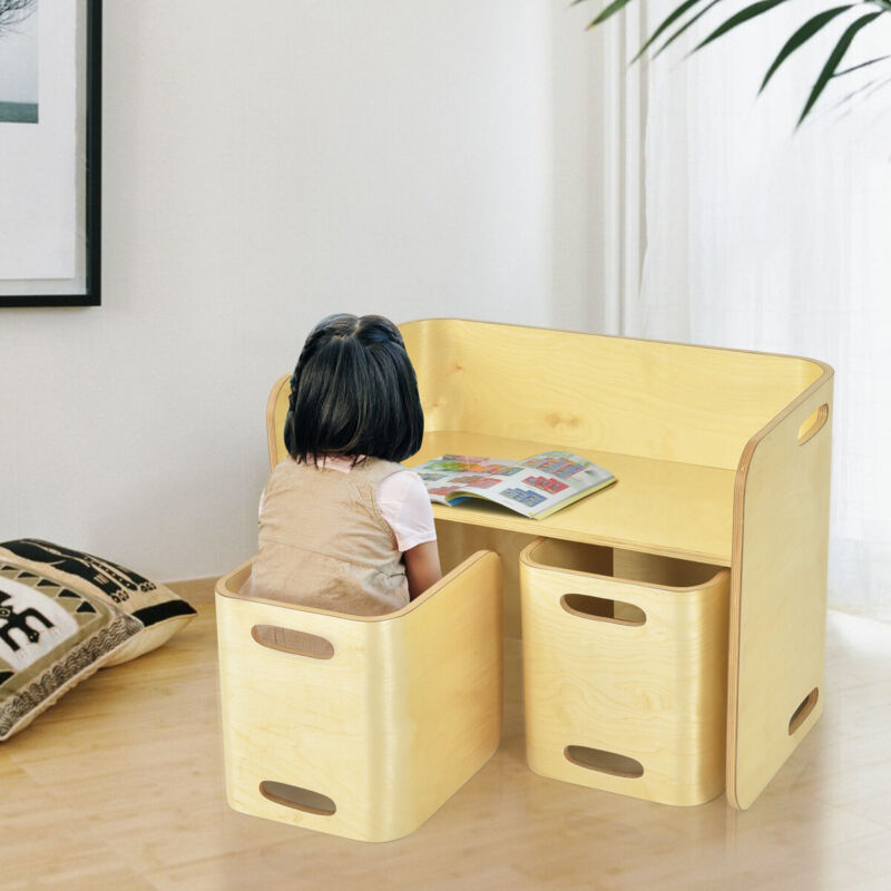 3-Piece Kids Table & Chair Set Children Wooden Activity Table Bench Storage Desk