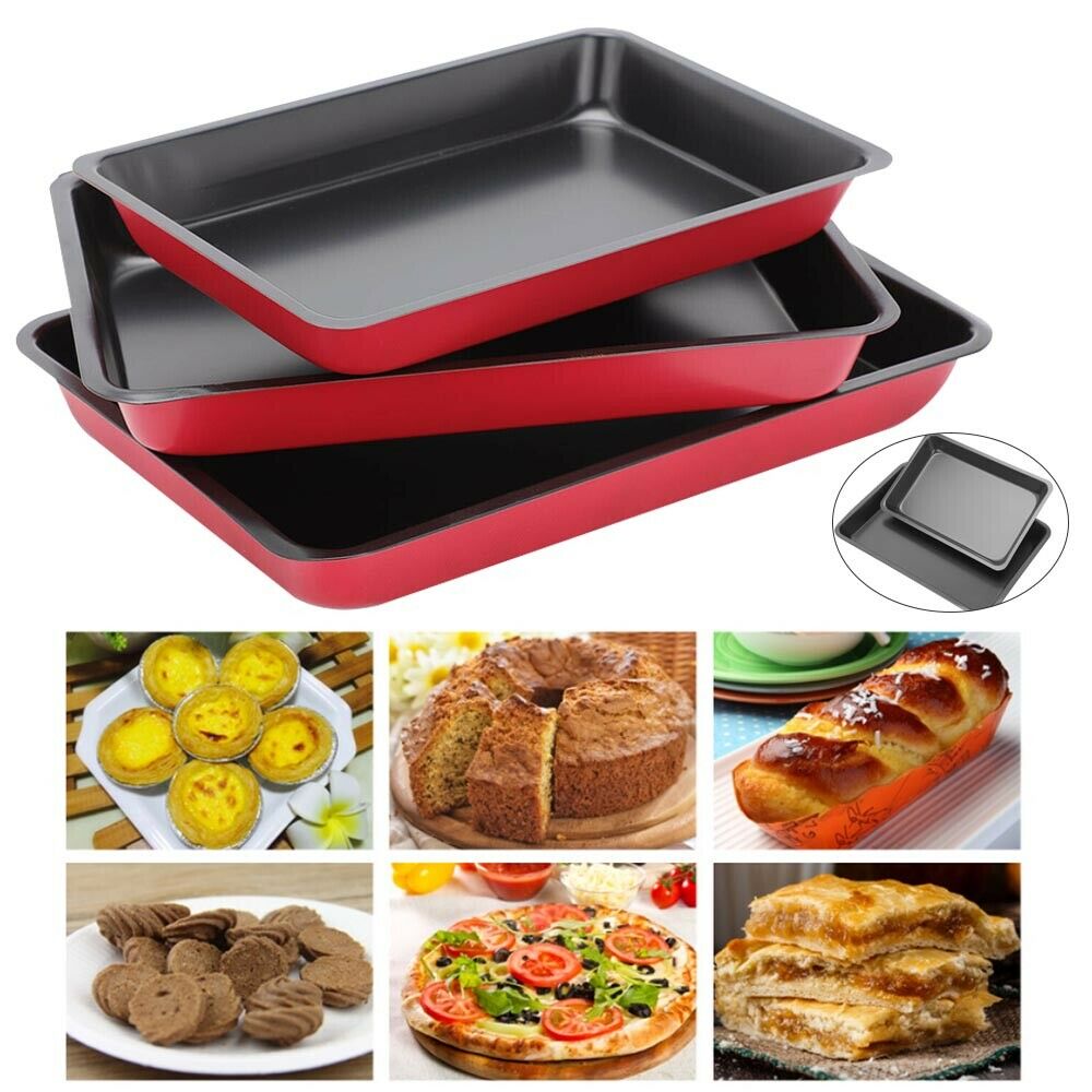 3 PIECE NEW LARGE NON STICK OVEN BAKING ROASTING PAN DISH ROAST TIN & TRAYS SET