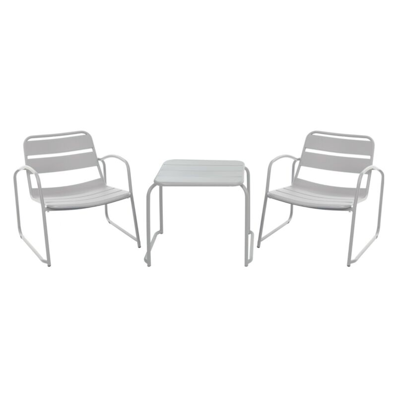3 Piece Outside Garden Taupe Metal Patio Furniture Table And Chair Lounge Set