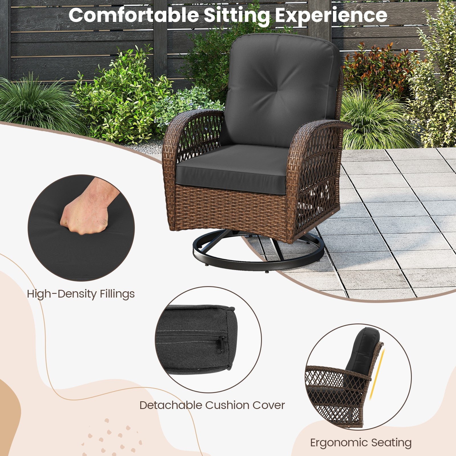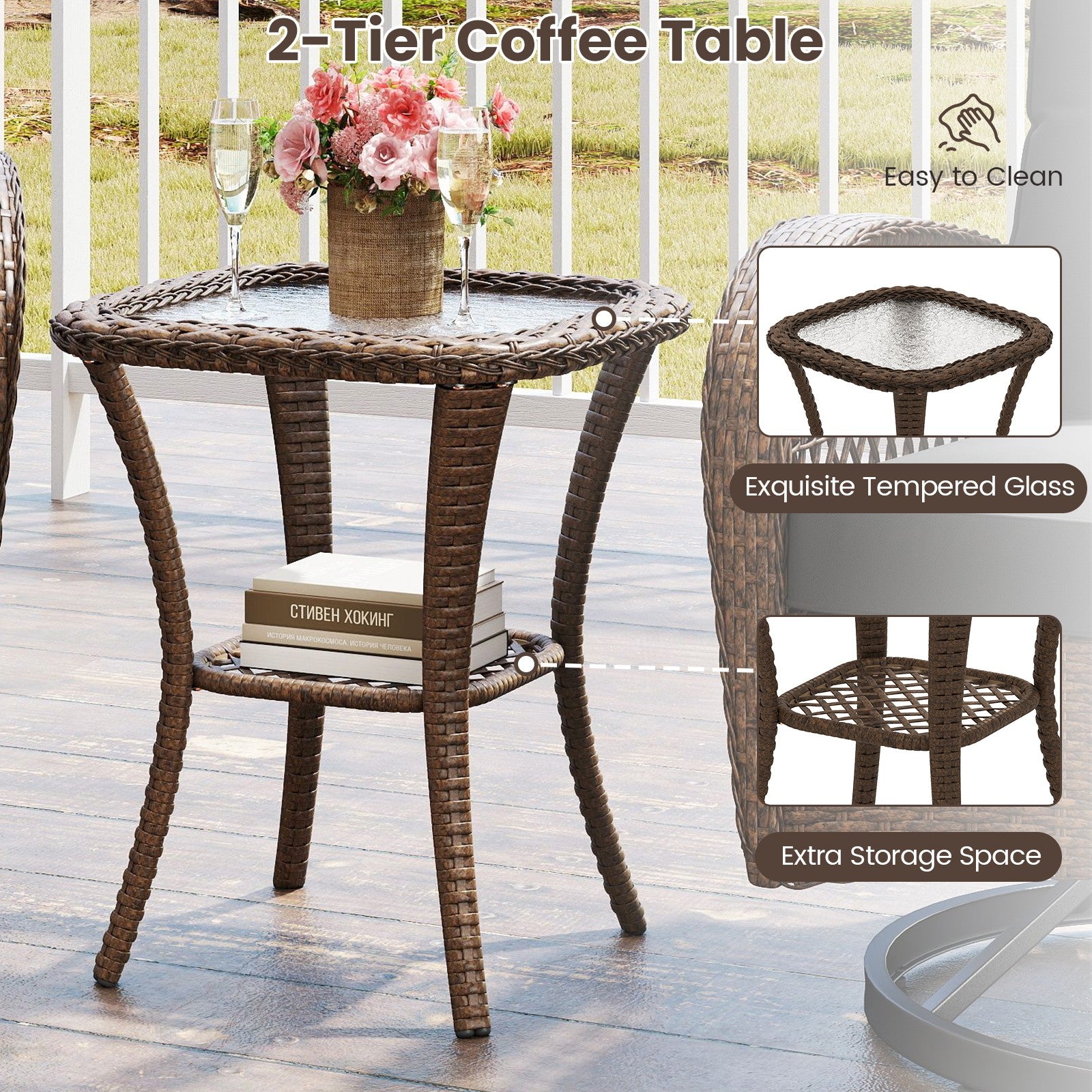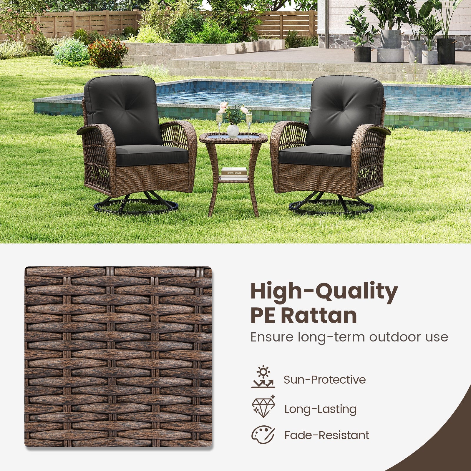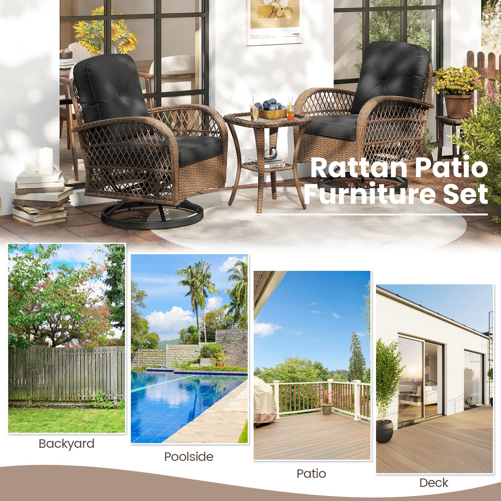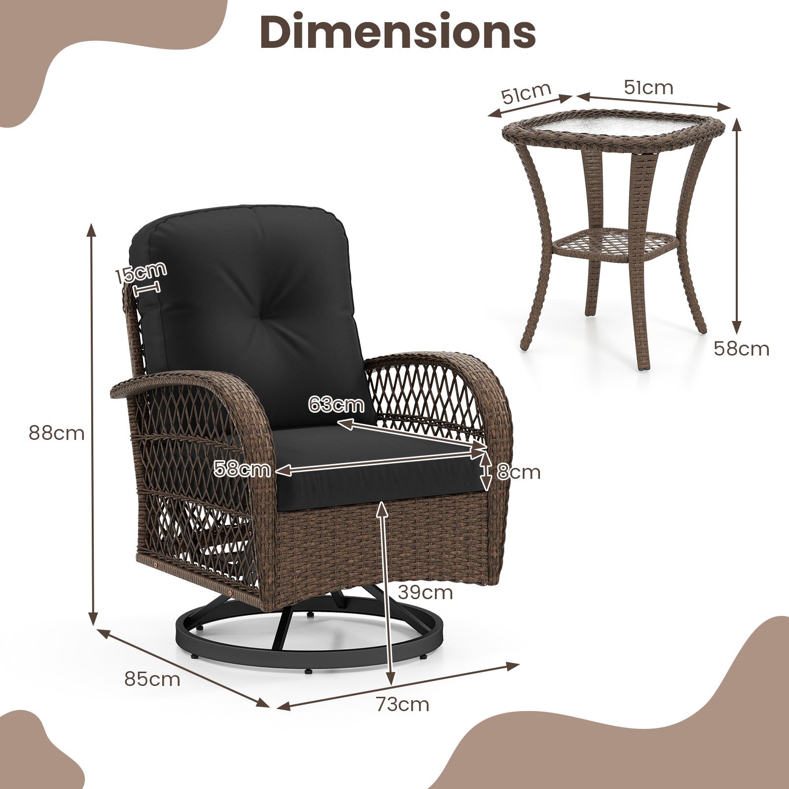 3 Piece Patio Swivel Rocker Set 2 Outdoor Wicker Rocking Chairs Black
