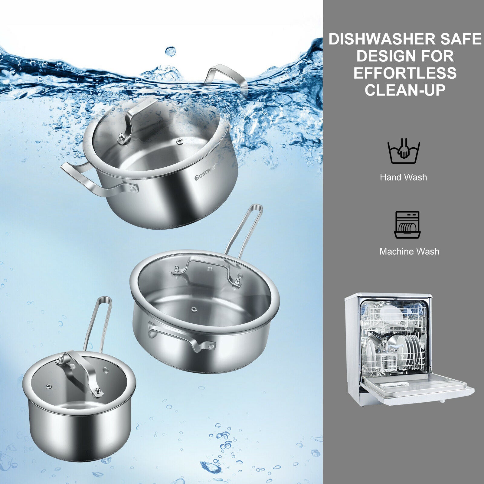 3 Piece Stainless Steel Pot Kitchen Cookware Set W/ Frying Pan Stockpot Milk Pot