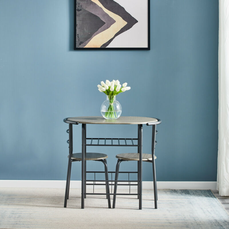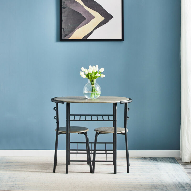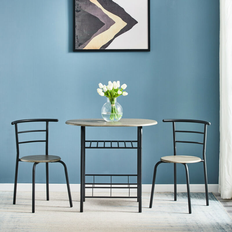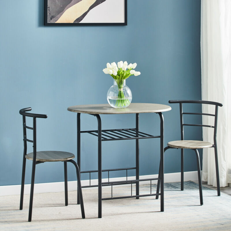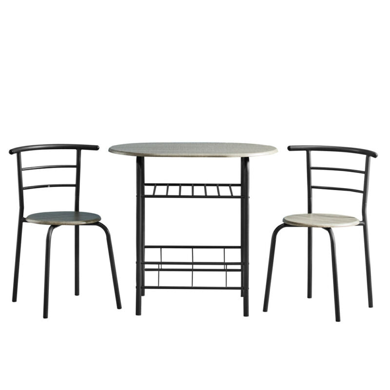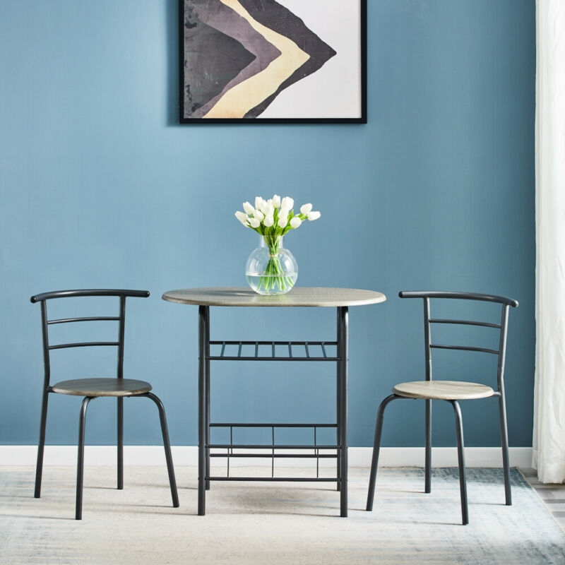 3 Pieces Bar Table Dining Kitchen Table Chair Dining Room Sets w/ Storage Shelf