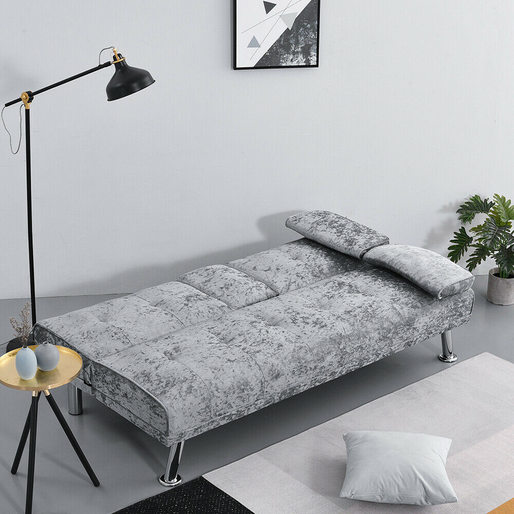3 Seater Click-Clack Leather Fabric Sofa Bed with 2 Drink Holder Recliner Lounge