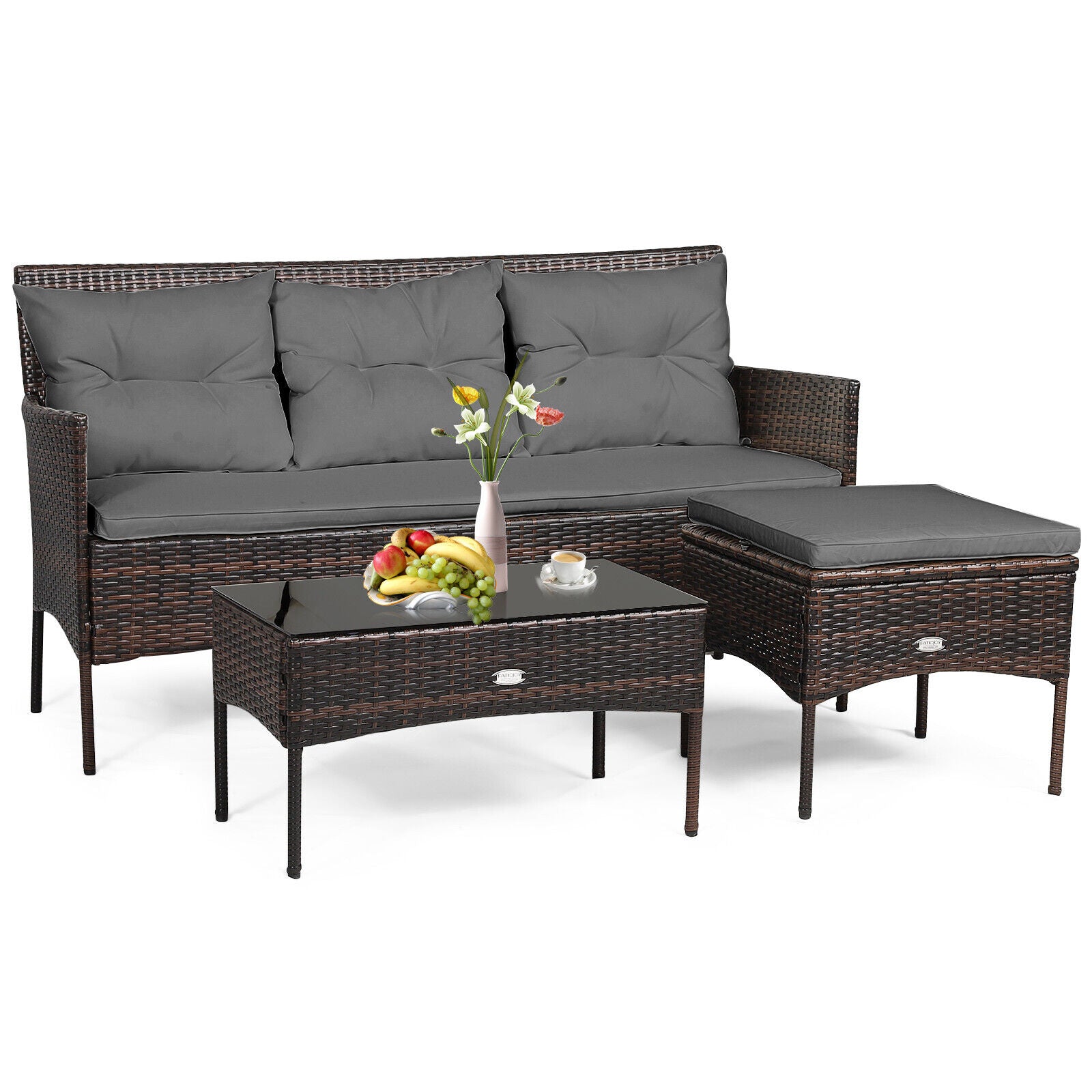 Material Rattan + Steel + Fabric + Sponge + Tempered Glass