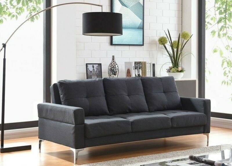 3 Seater Sofa Bed Charcoal Fabric Recliner Sofabed Metal Legs