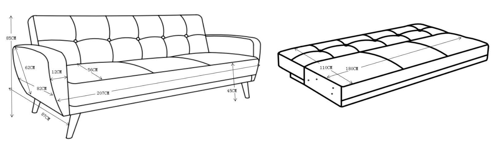 Features: Click Clac Recliner Function, Linen/Polyester Fabric, Natural Wooden Legs, High Arm Rests, Sofa Bed Function