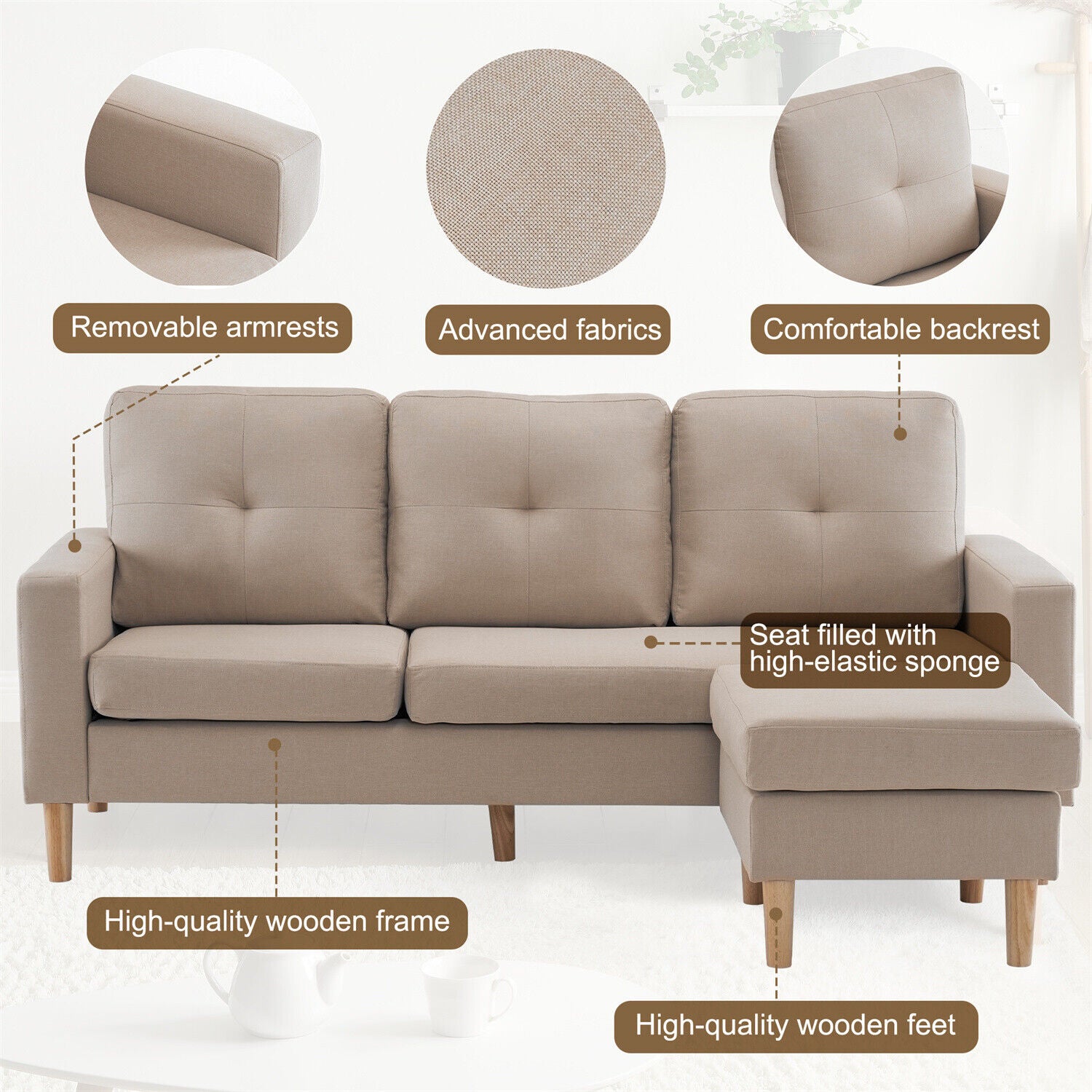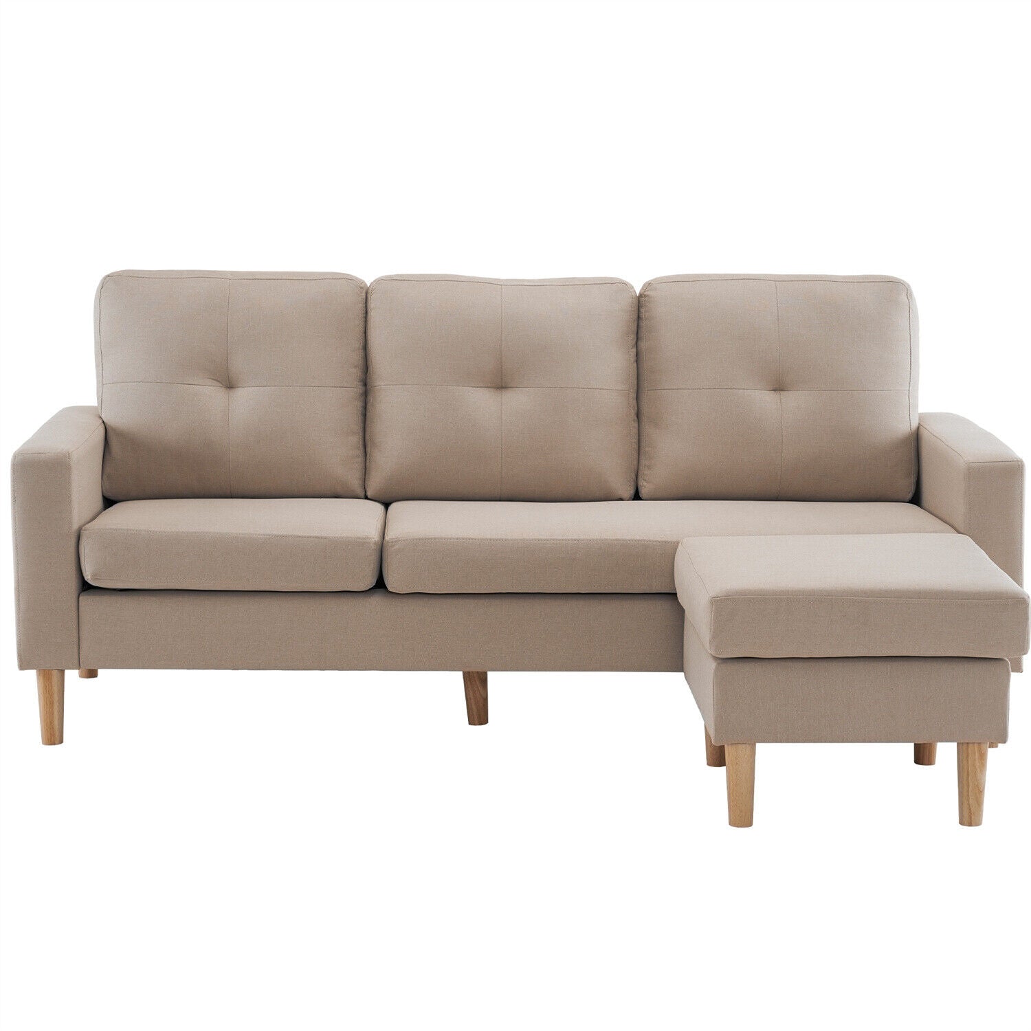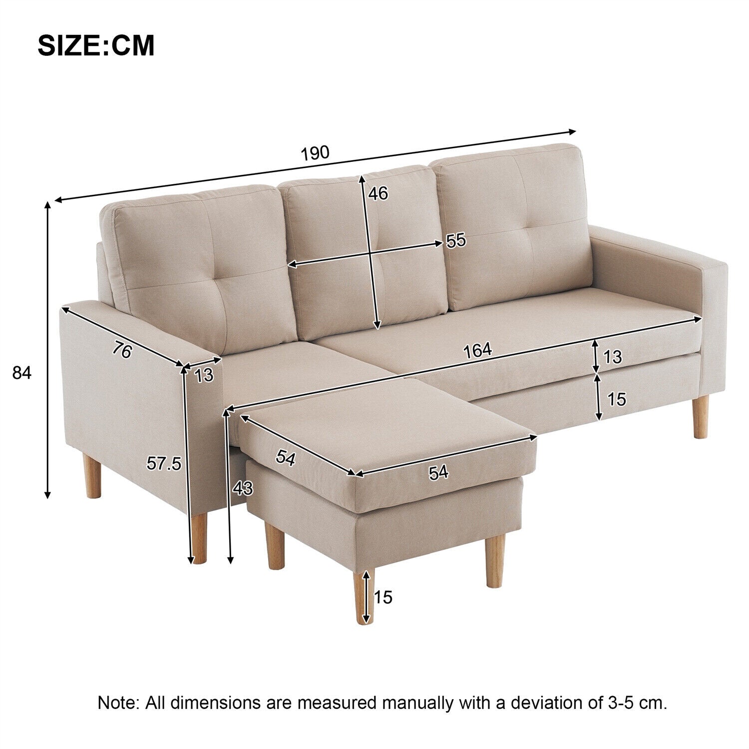3 Seater Sofa Corner Sofa Modern Fabric Upholstered Sofa Couch w/ Footrest Beige