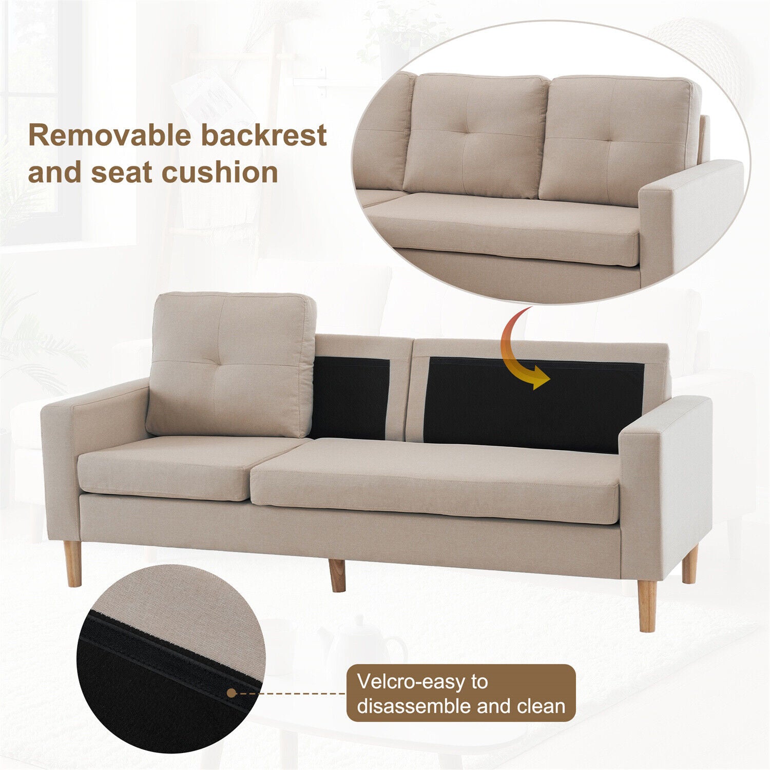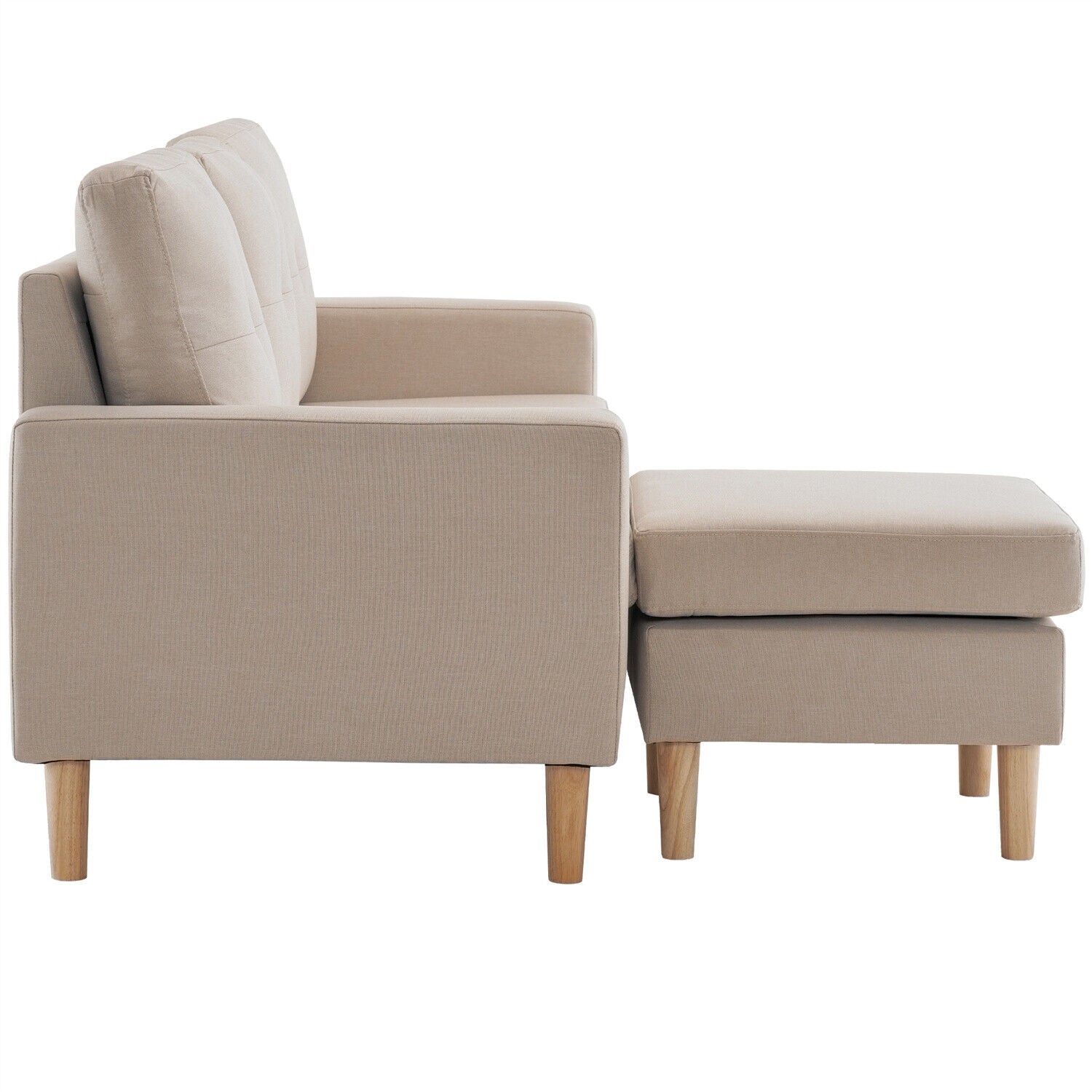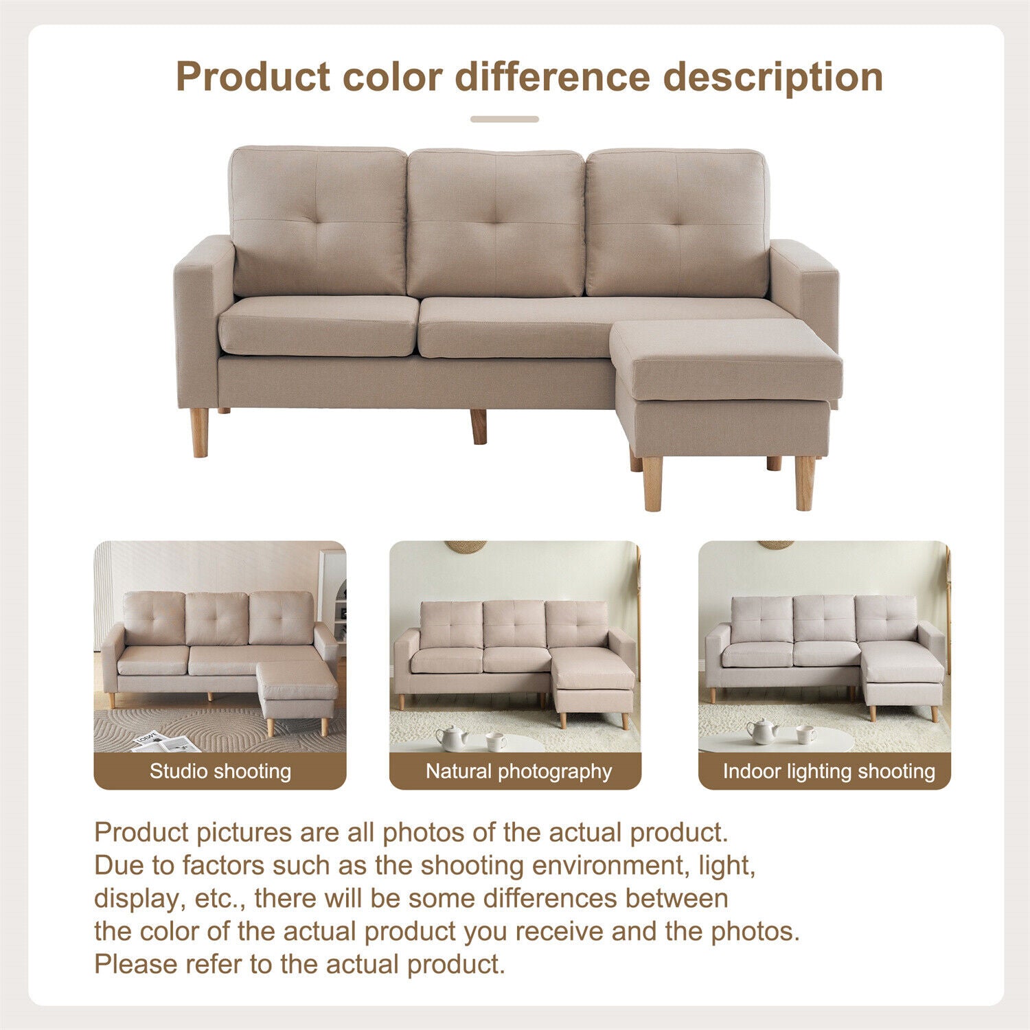 3 Seater Sofa Corner Sofa Modern Fabric Upholstered Sofa Couch w/ Footrest Beige
