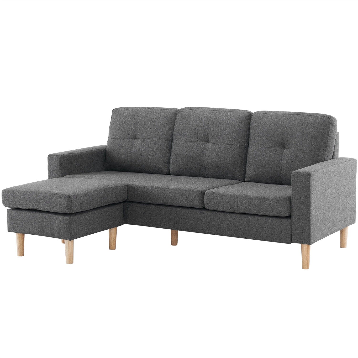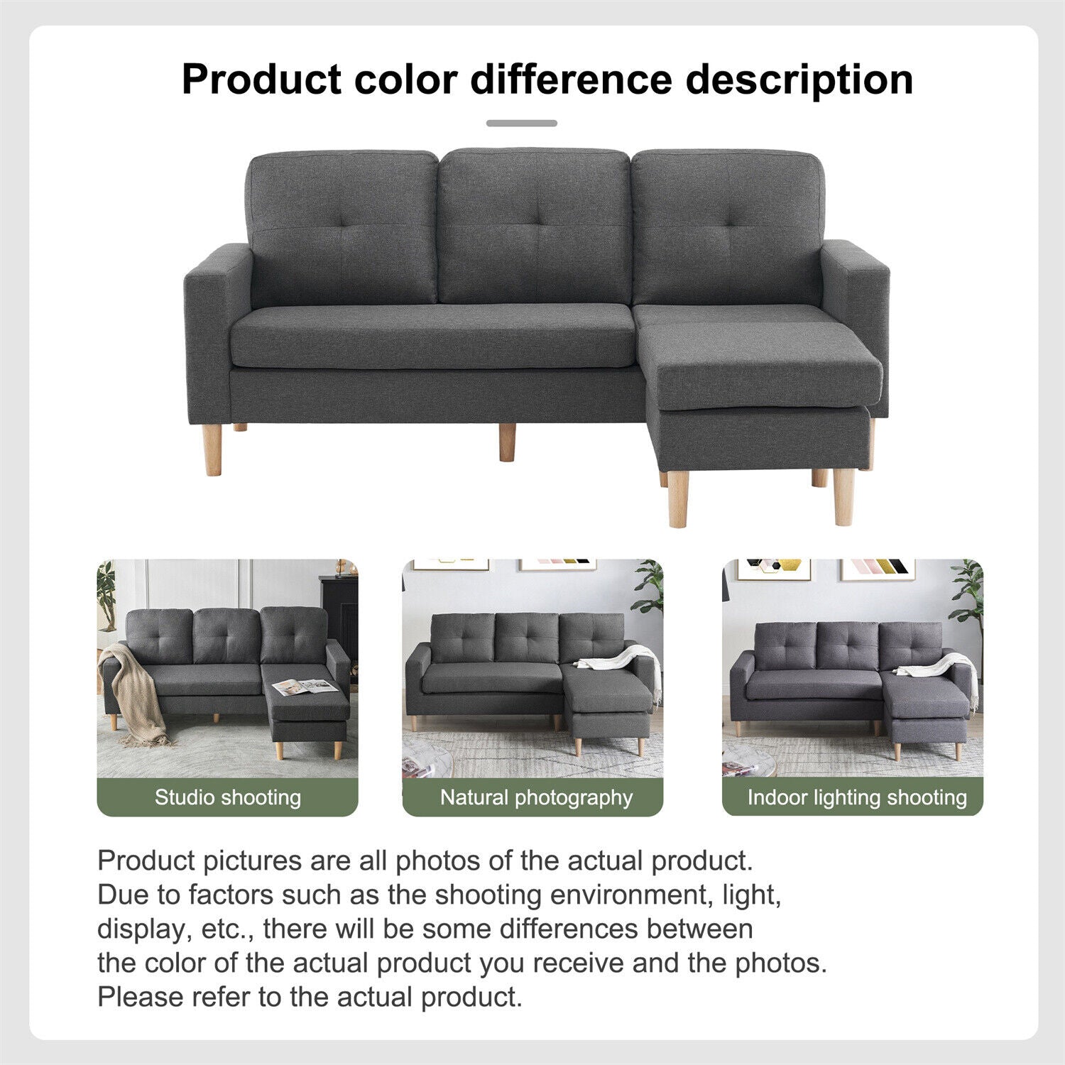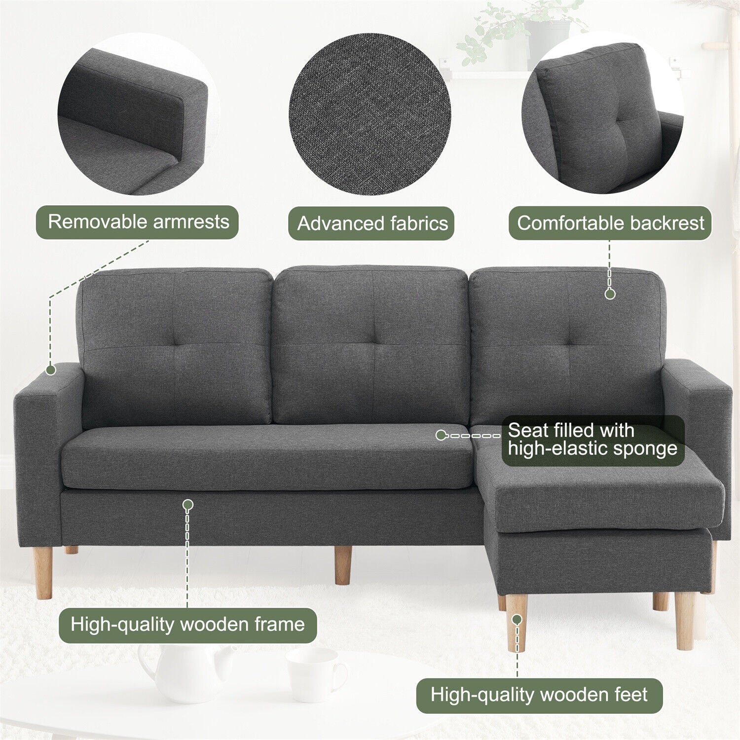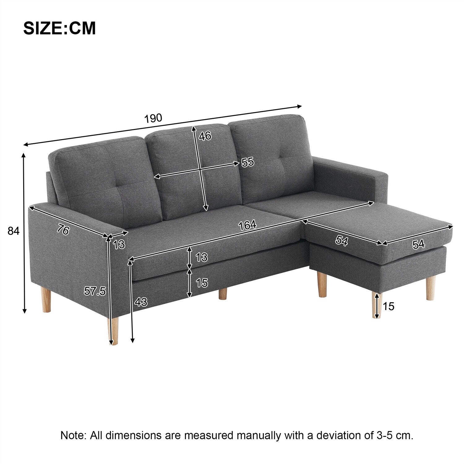 3 Seater Sofa Corner Sofa Modern Fabric Upholstered Sofa Couch with Footrests