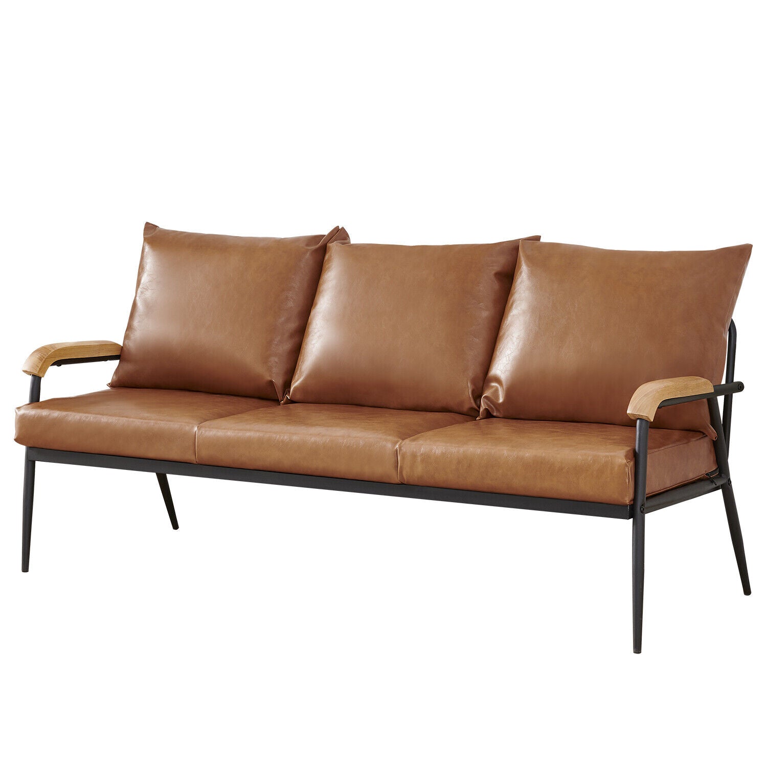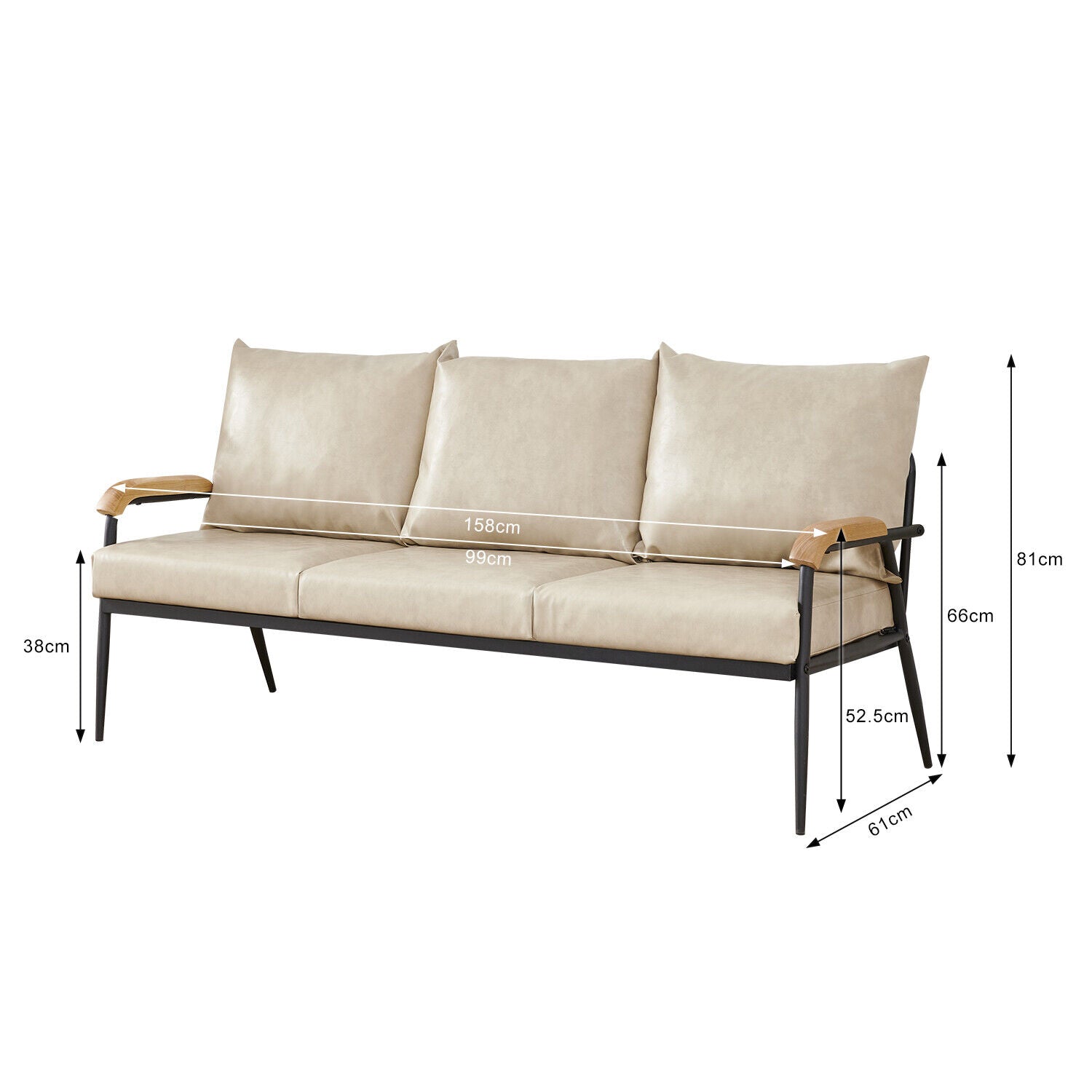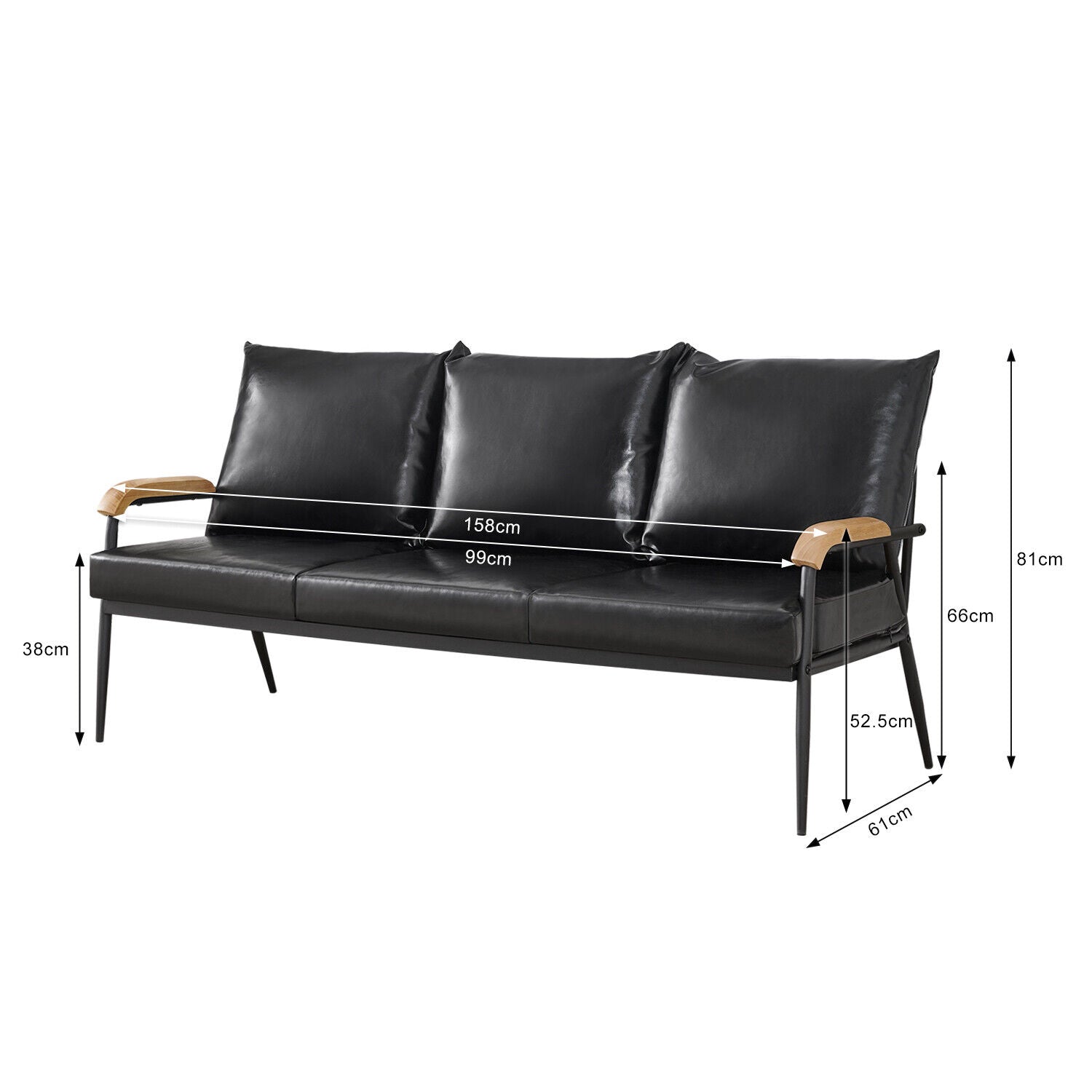 3 Seats Faux Leather Sofa Living Room Armchair Metal Legs Simple Modern 4 Colors
