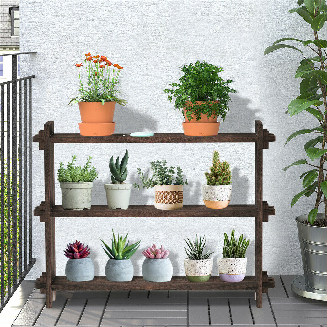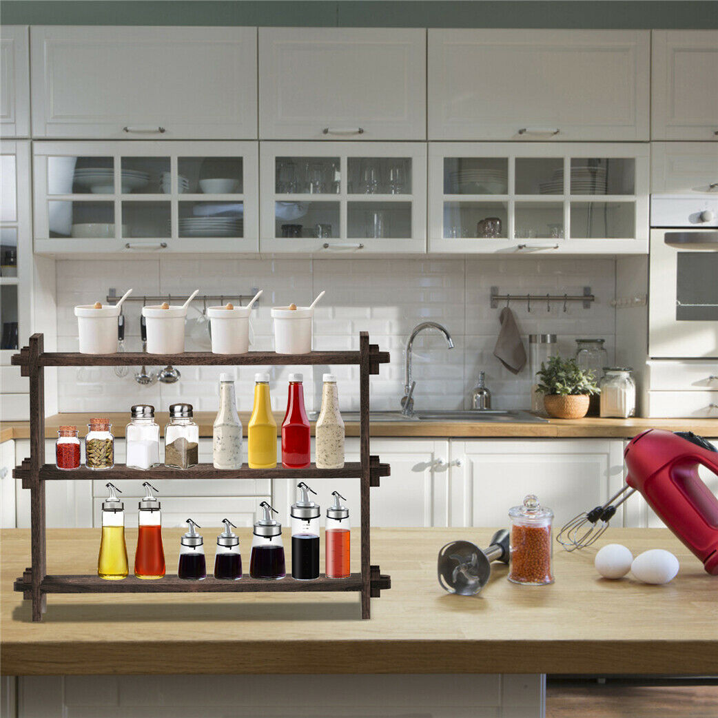 3 Shelf Wooden Spice Rack Jars Organiser Unit Free Standing Kitchen Storage Wide