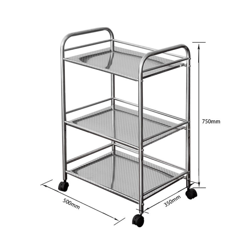 3 Shelves Kitchen Trolley Stainless Steel with Wheel Beauty Salon Cart Trolley