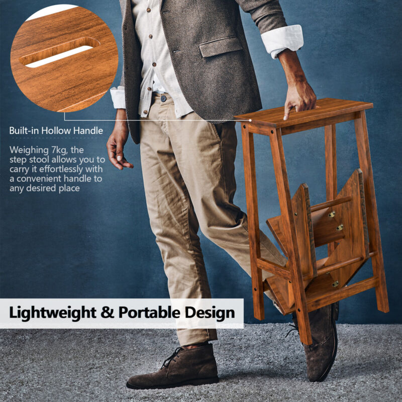 3-Step Folding Step Stool Reversible Chair Seat Portable Ladder Display Rack