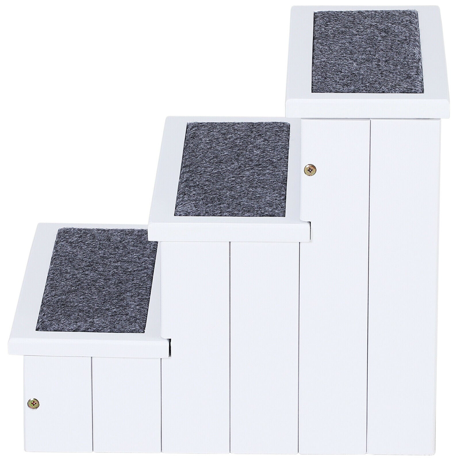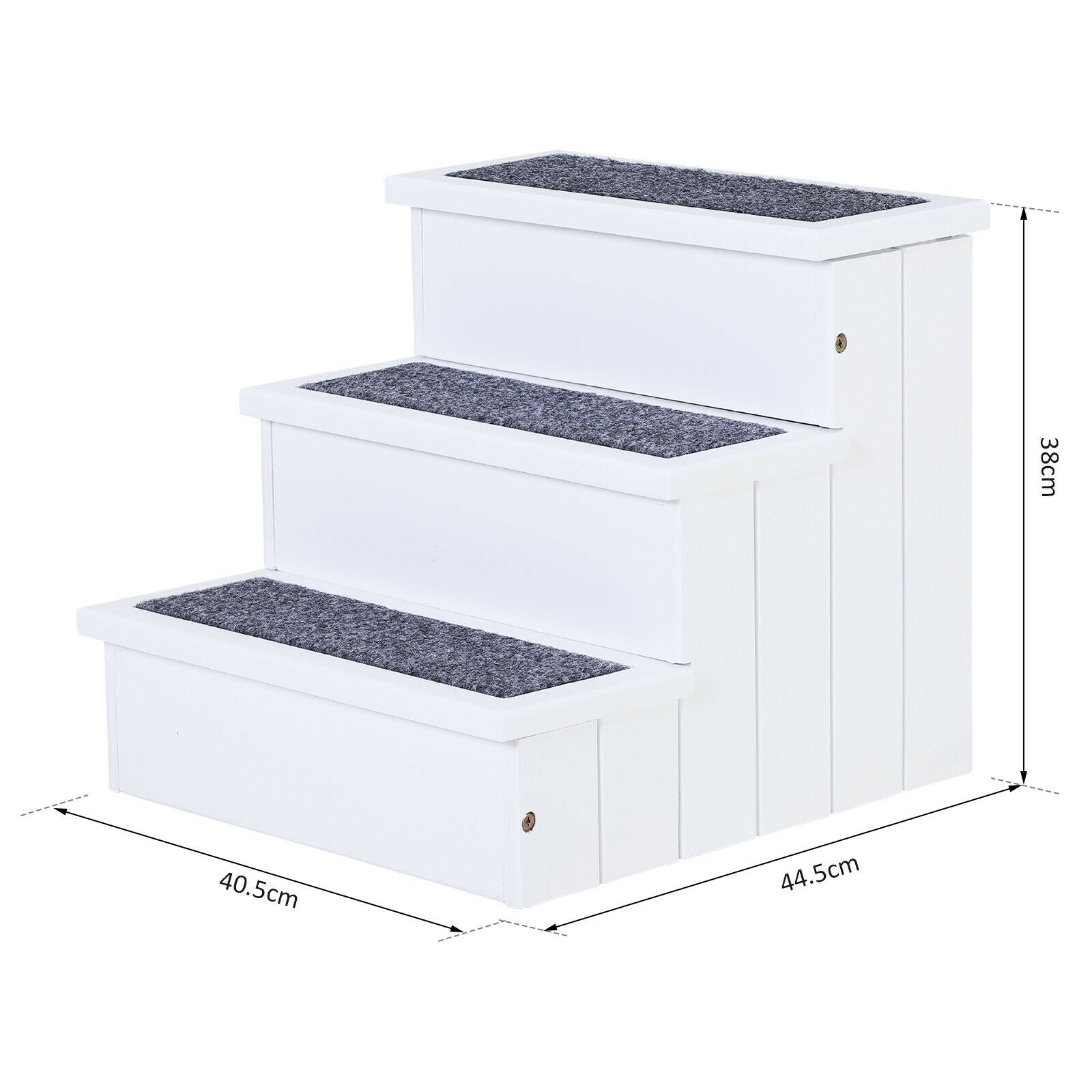 3 Step Wooden Pet Stairs Steps Carpet Non Slip for Cats and Small Dogs White