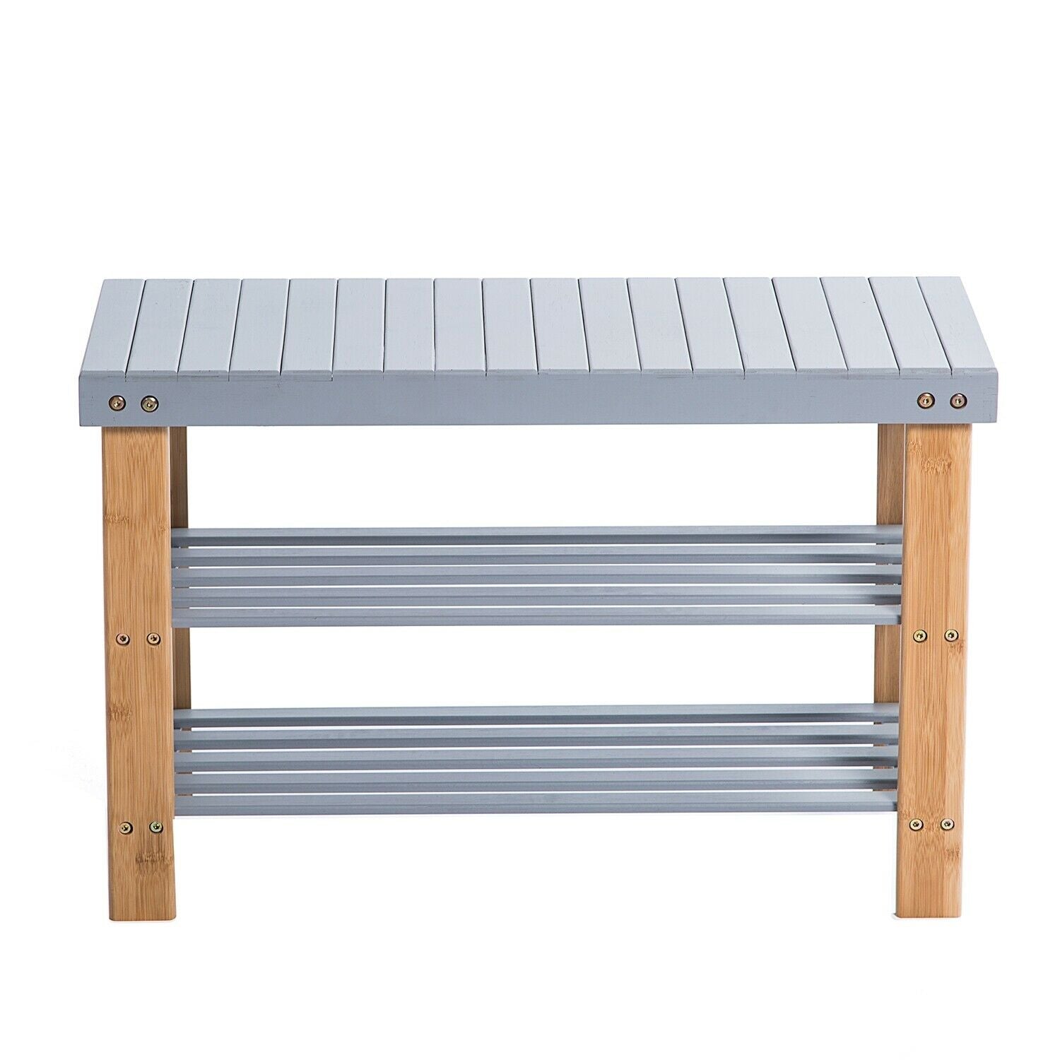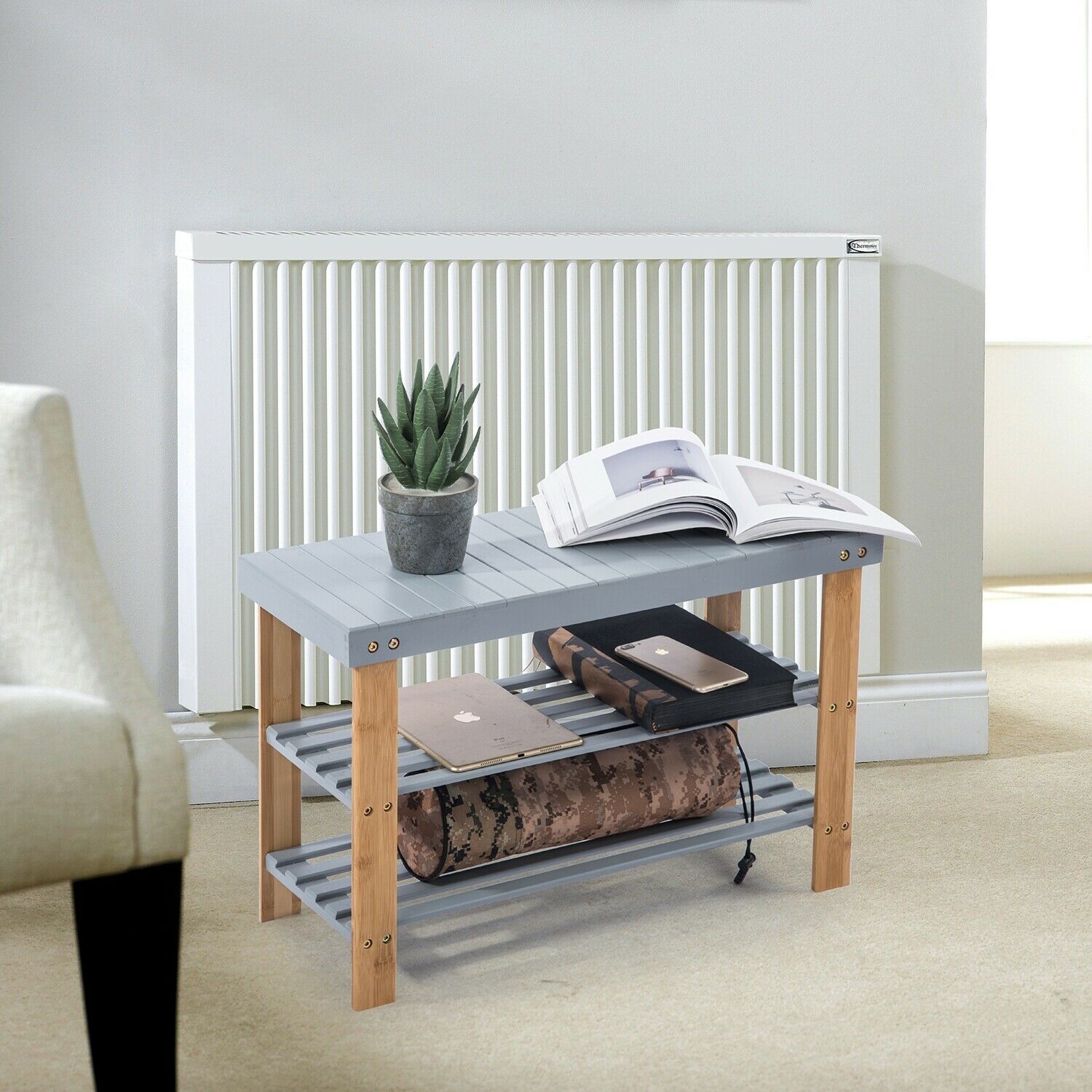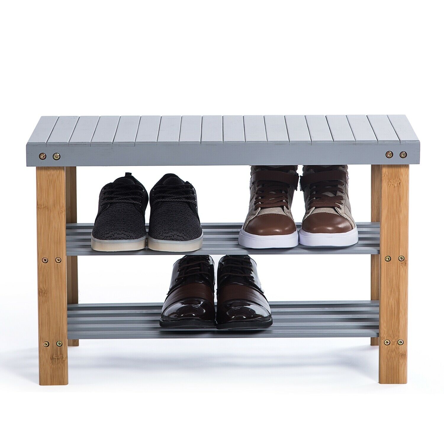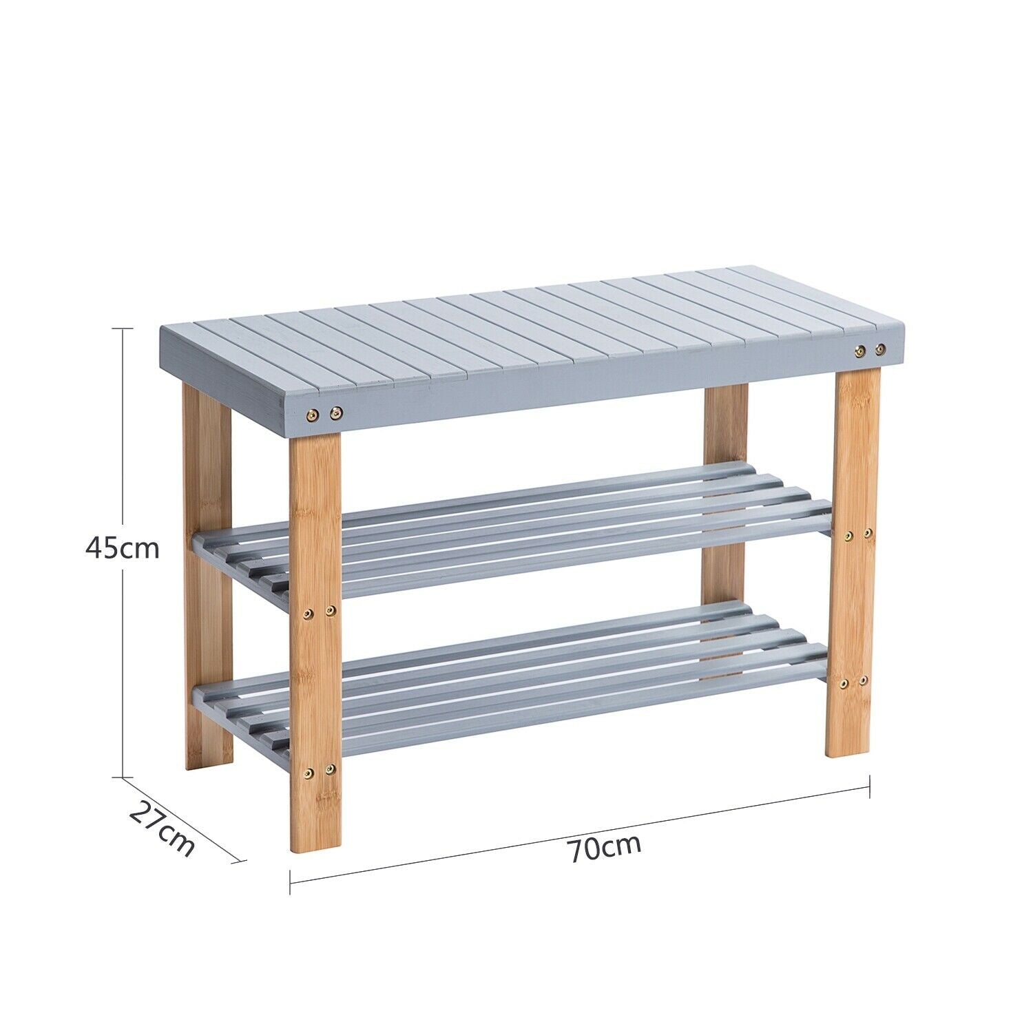 3 Tier Bamboo Bench Hallway Shoe Rack Storage Organiser Holder, Grey