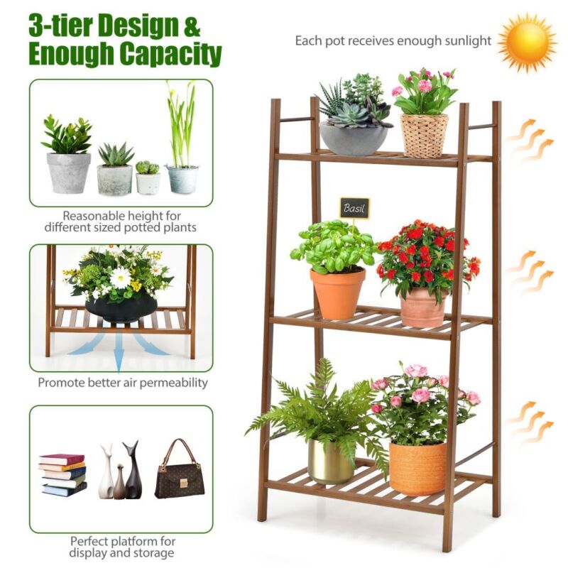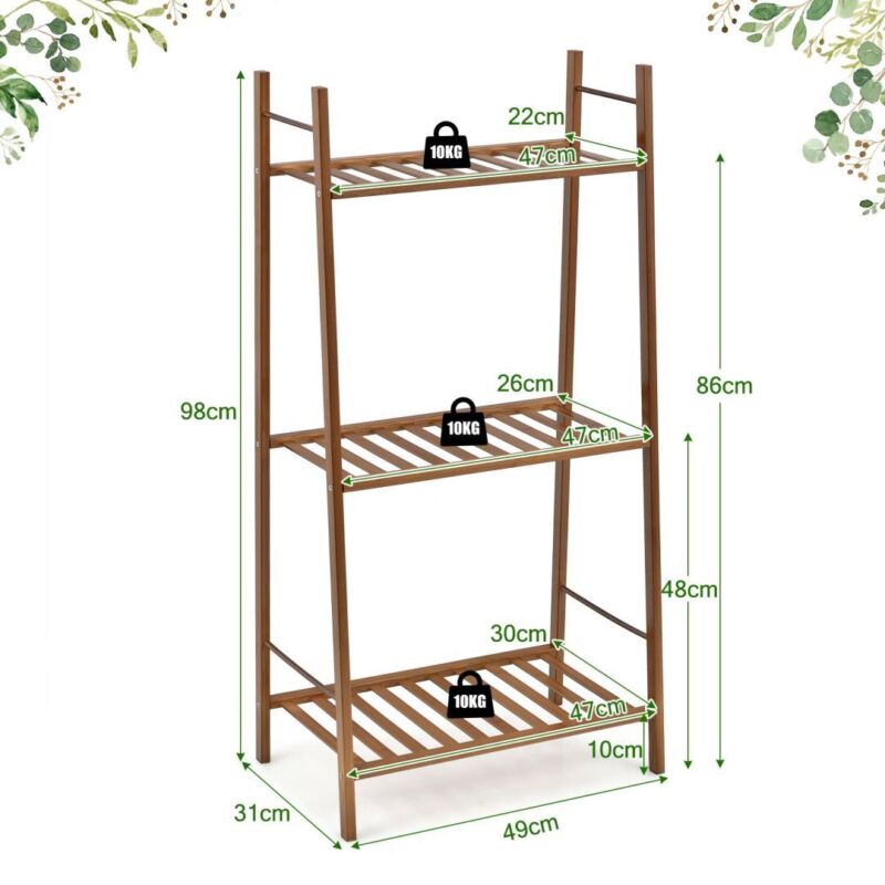 3-tier Bamboo Plant Stand Freestanding Ladder Plant Storage Shelf Display Rack
