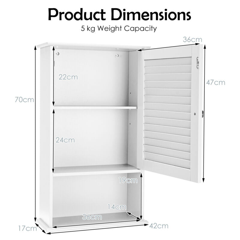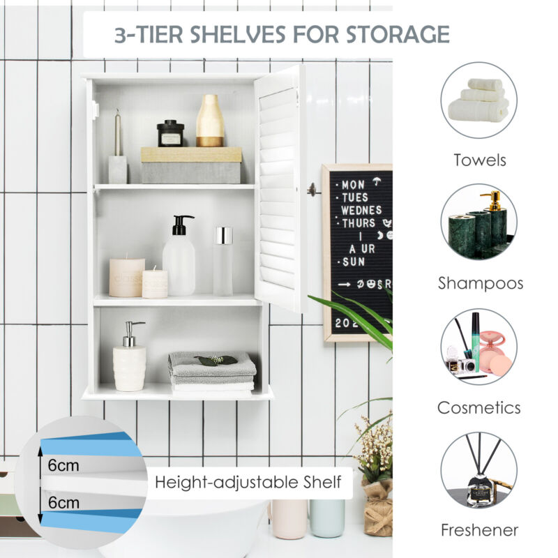 3-Tier Bathroom Cabinet Wall Mounted Storage Organizer Adjustable Shelves