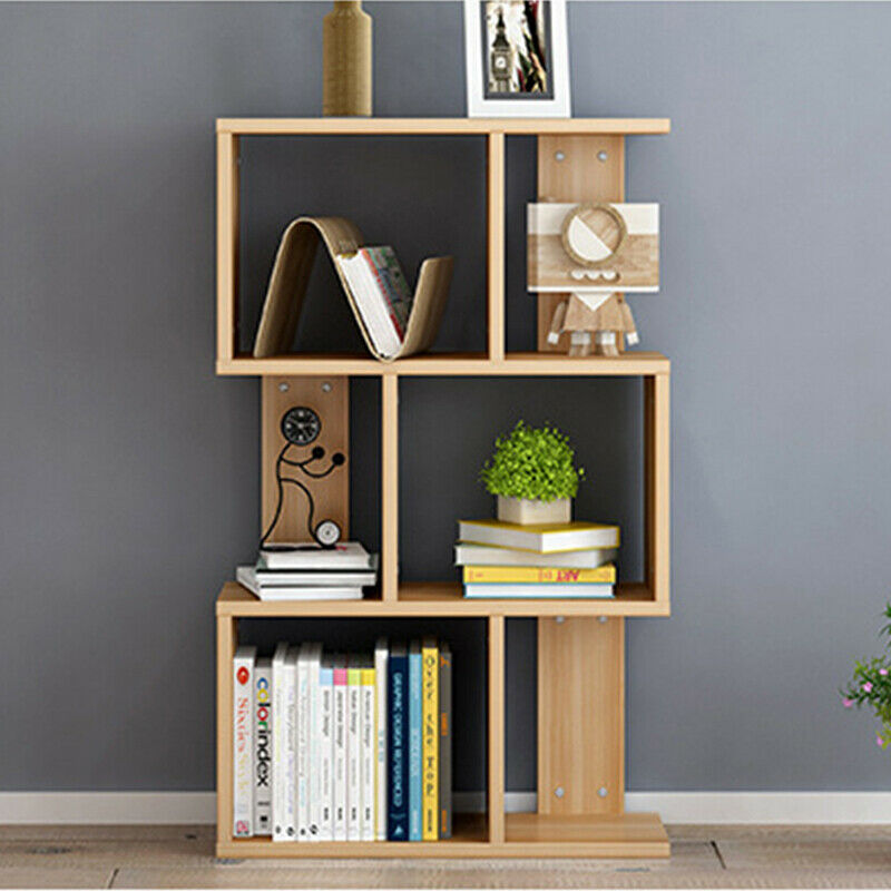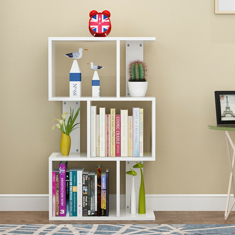 3 Tier Bookshelf S-shaped Storage Shelves White Wooden Bookcase Display Unit UK