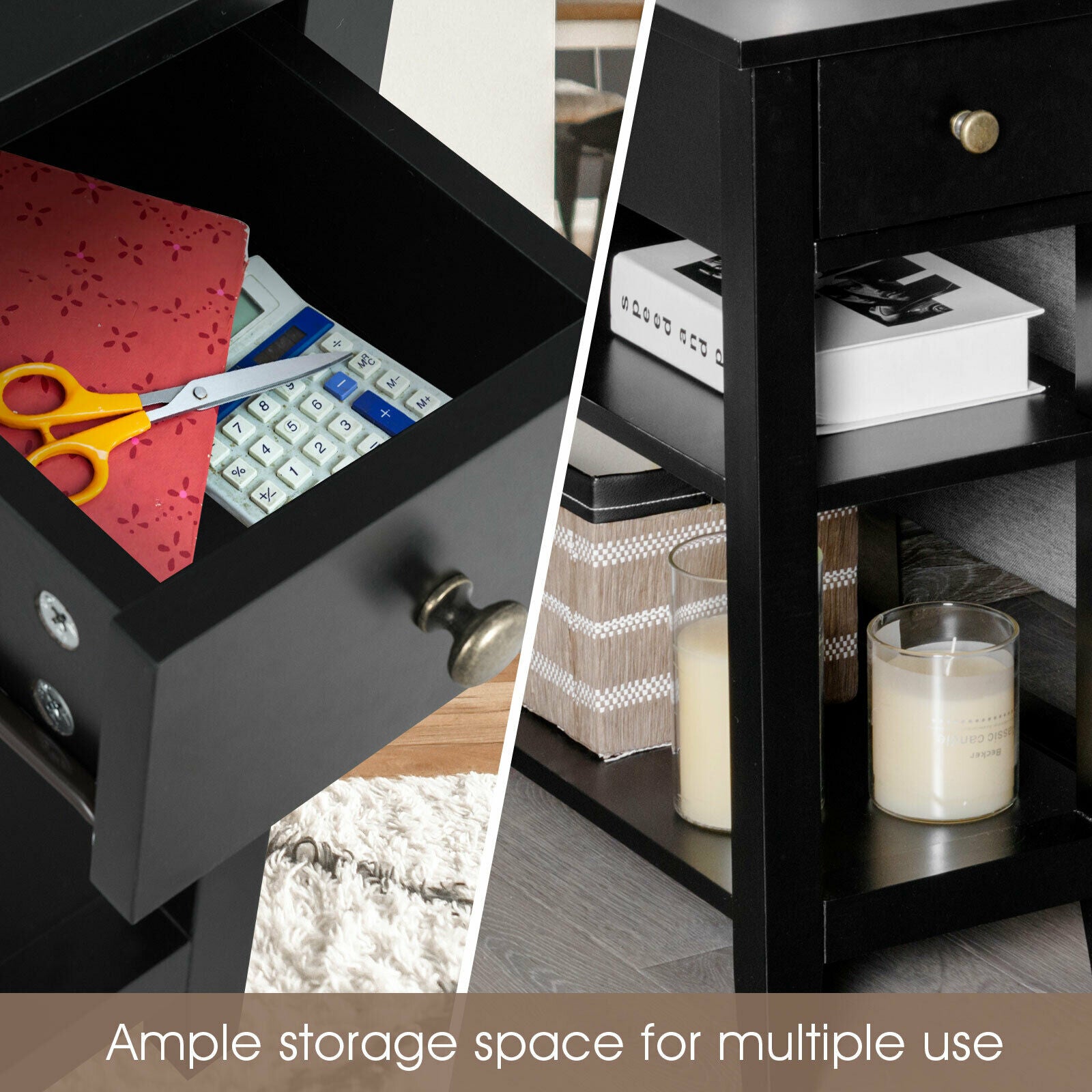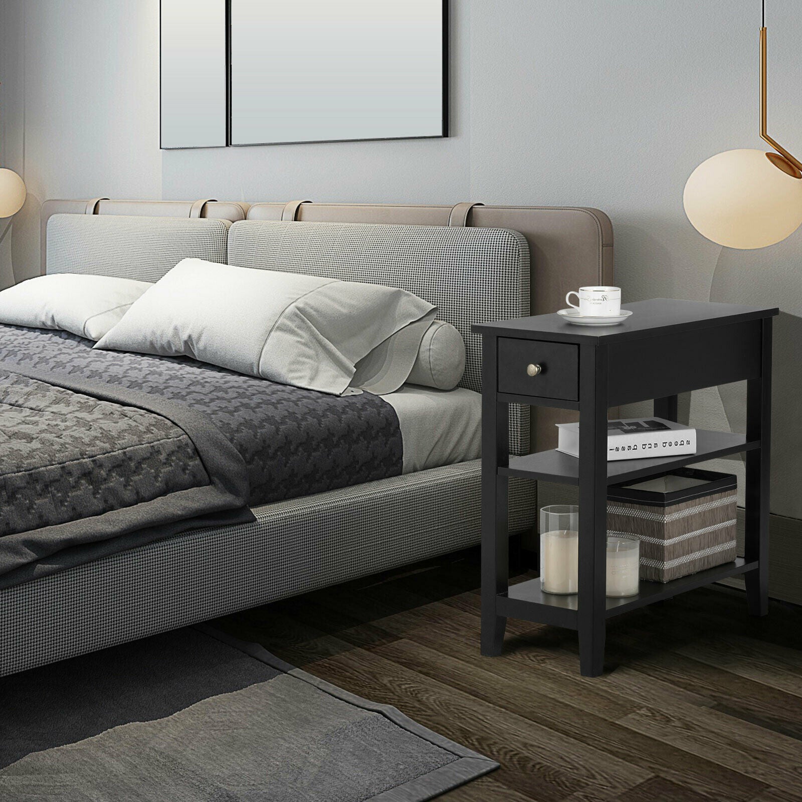 3-Tier End Table Sofa Bedside Table Nightstand Home Office Bookcase W/ Drawer