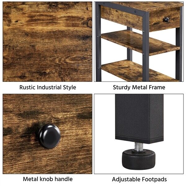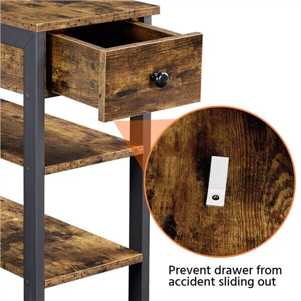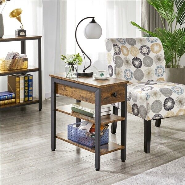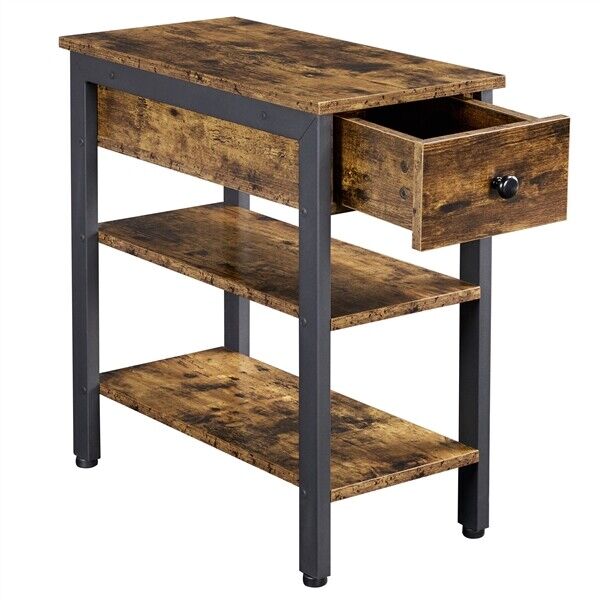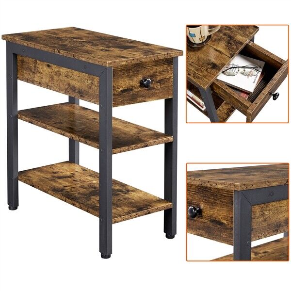 3 Tier End Table with Drawer and Shelves Slim Side Table Nightstands for Bedroom