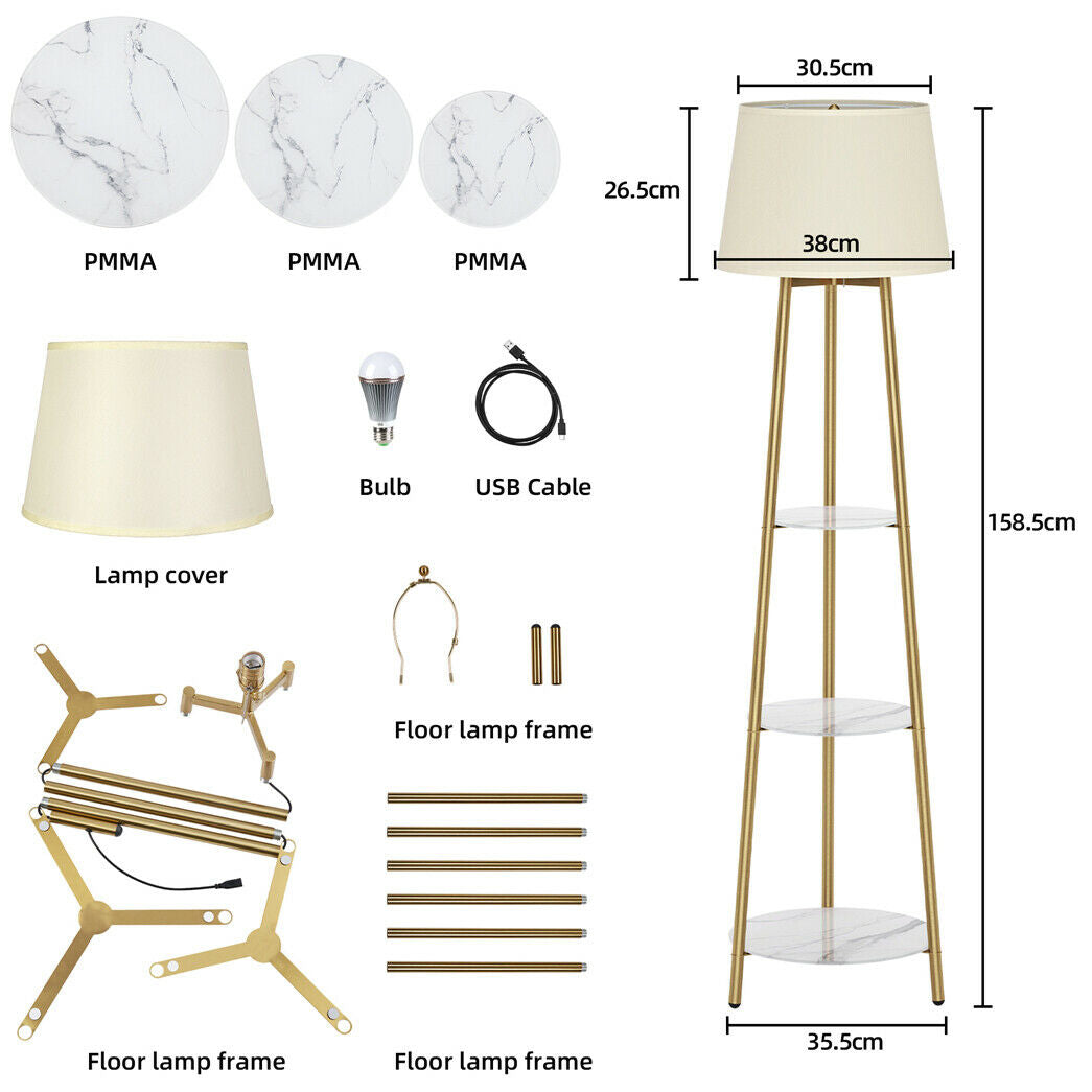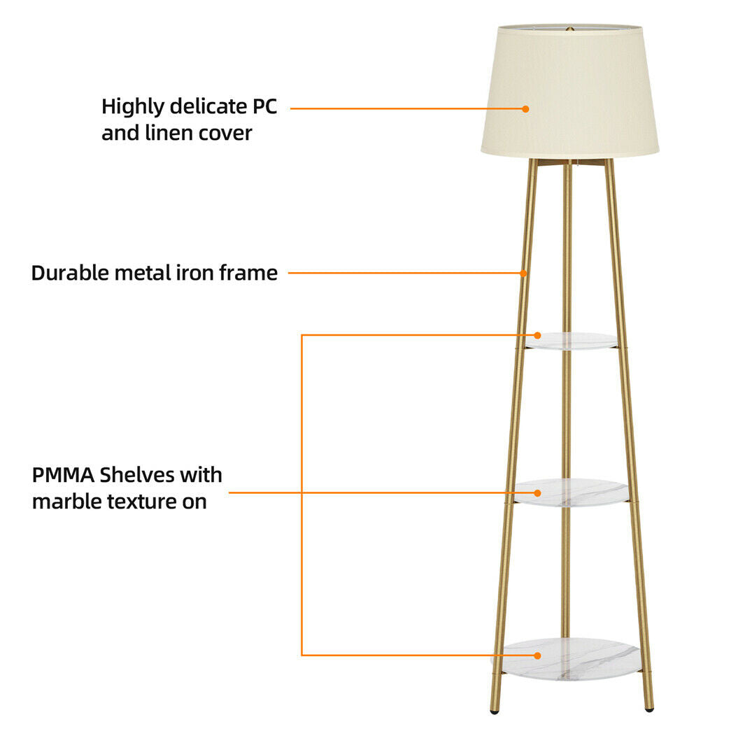 3-Tier Floor Lamp Bedside Light Free Standing Tripod Holder Storage Shelf Linen