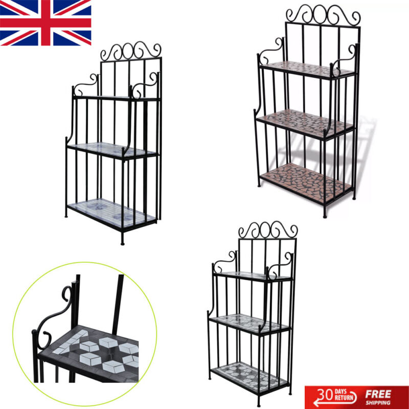 3 Tier Garden Plant Stand Plant Holder Display Shelf Terracotta Mosaic Pattern