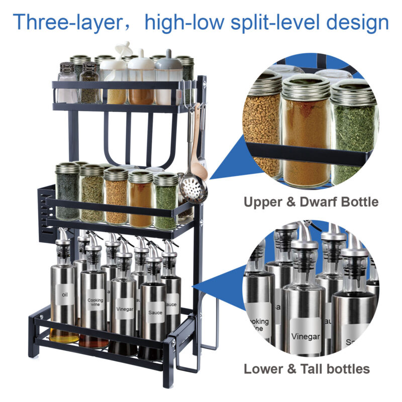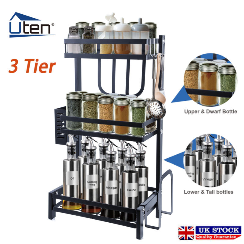 3 Tier Herbs Spice Rack Jars Organiser Cabinet Kitchen Storage Shelf Holder