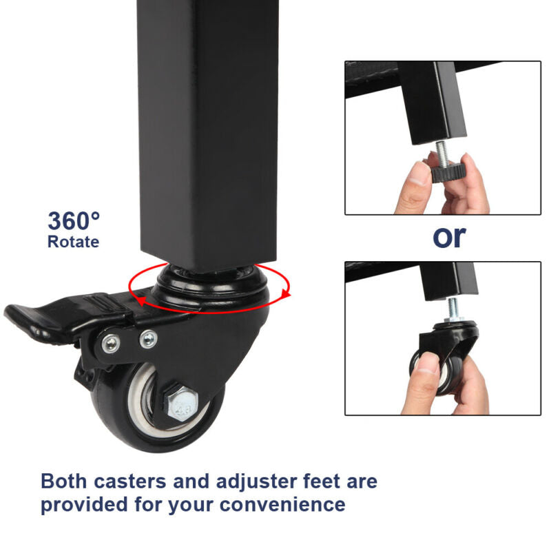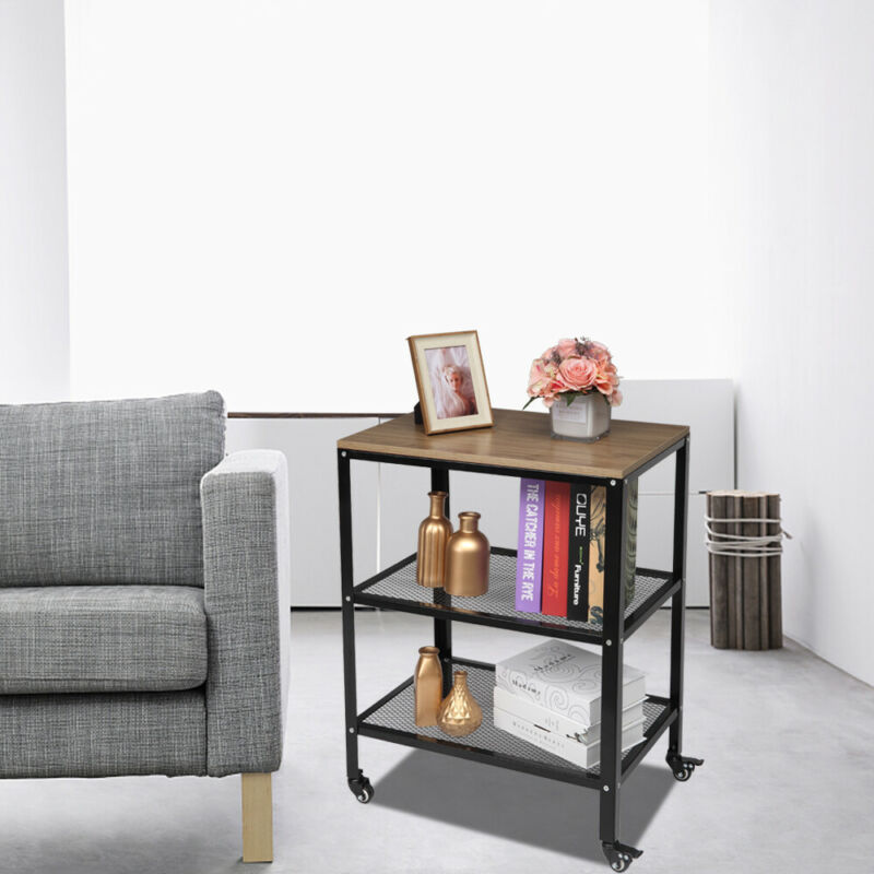 3 Tier Home Trolley Kitchen Storage Cart Steel Bars 4 Wheels Rolling Unit Shelf