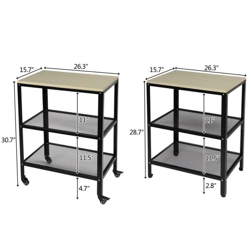 3-Tier Home Trolley Kitchen Storage Cart Steel Bars 4 Wheels Rolling Unit White