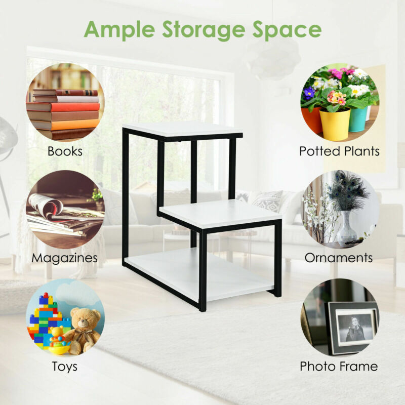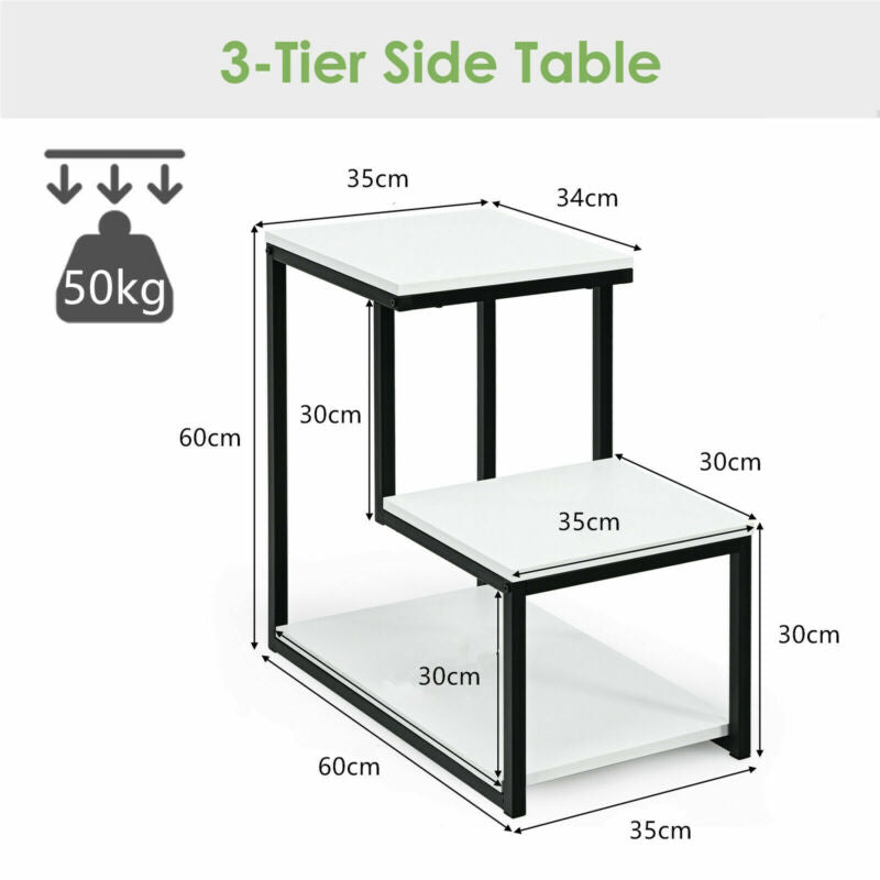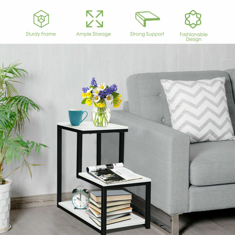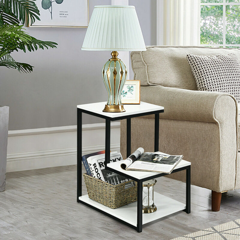 3- Tier Industrial End Table Sofa Bedside Table Nightstand Home Office Bookcase