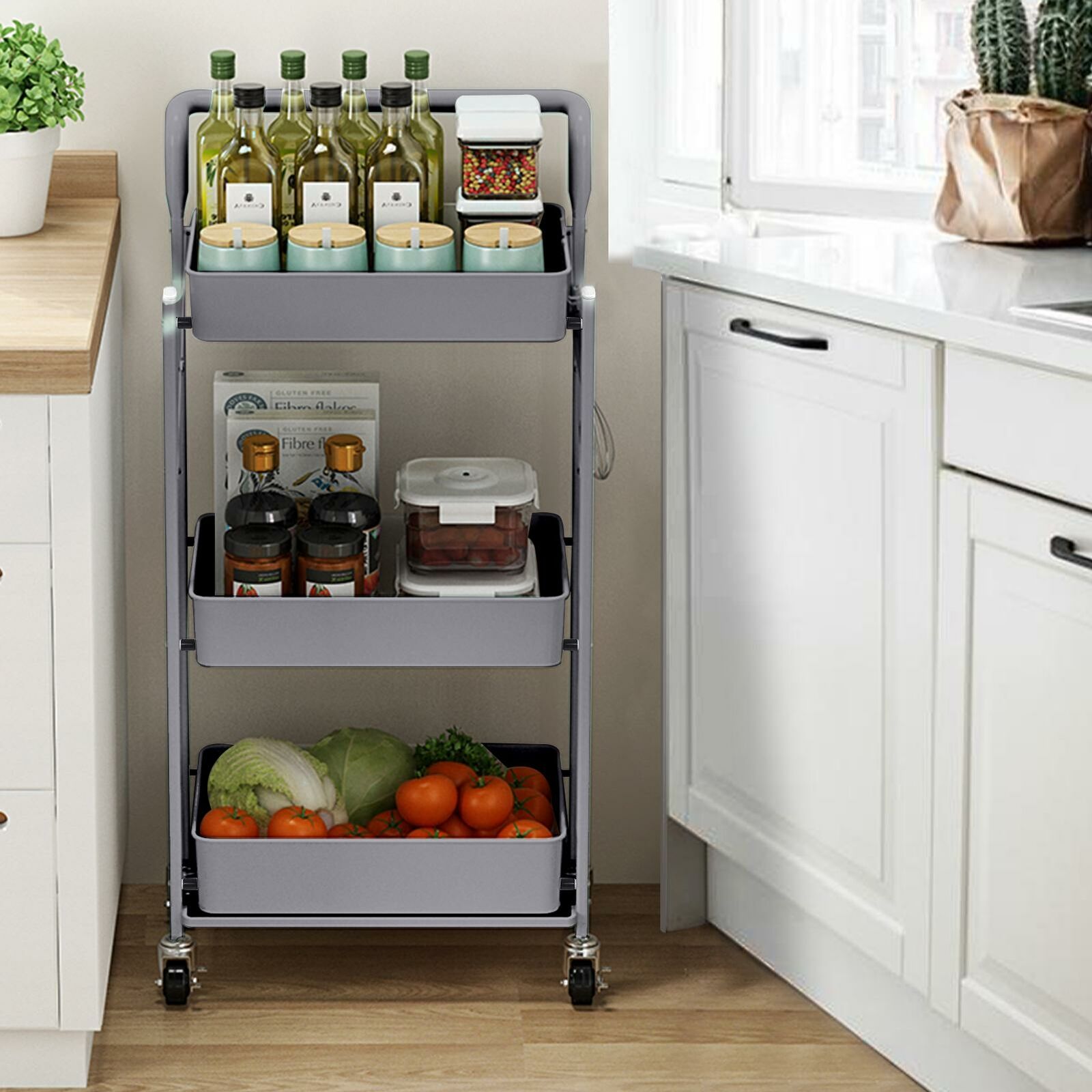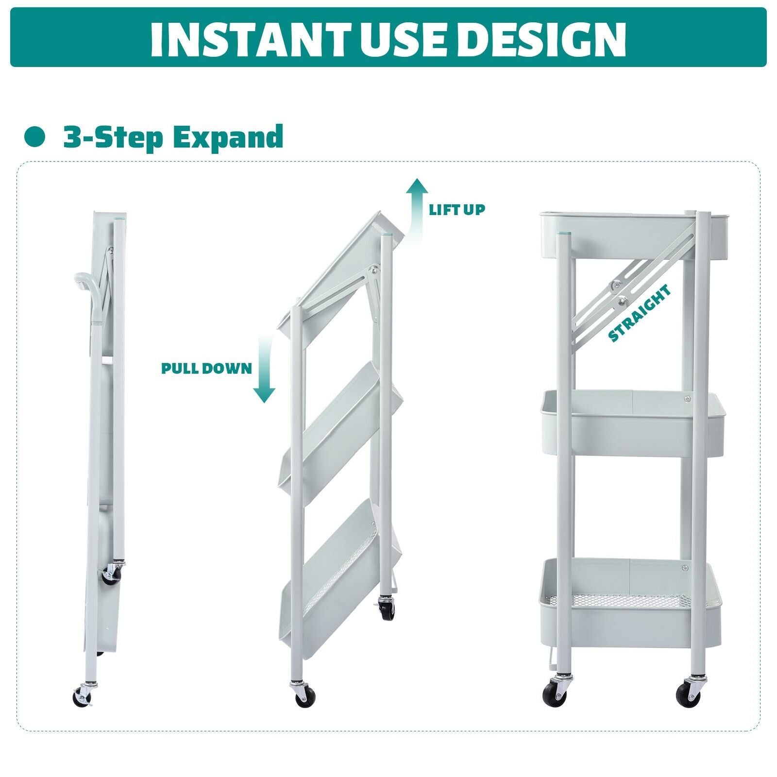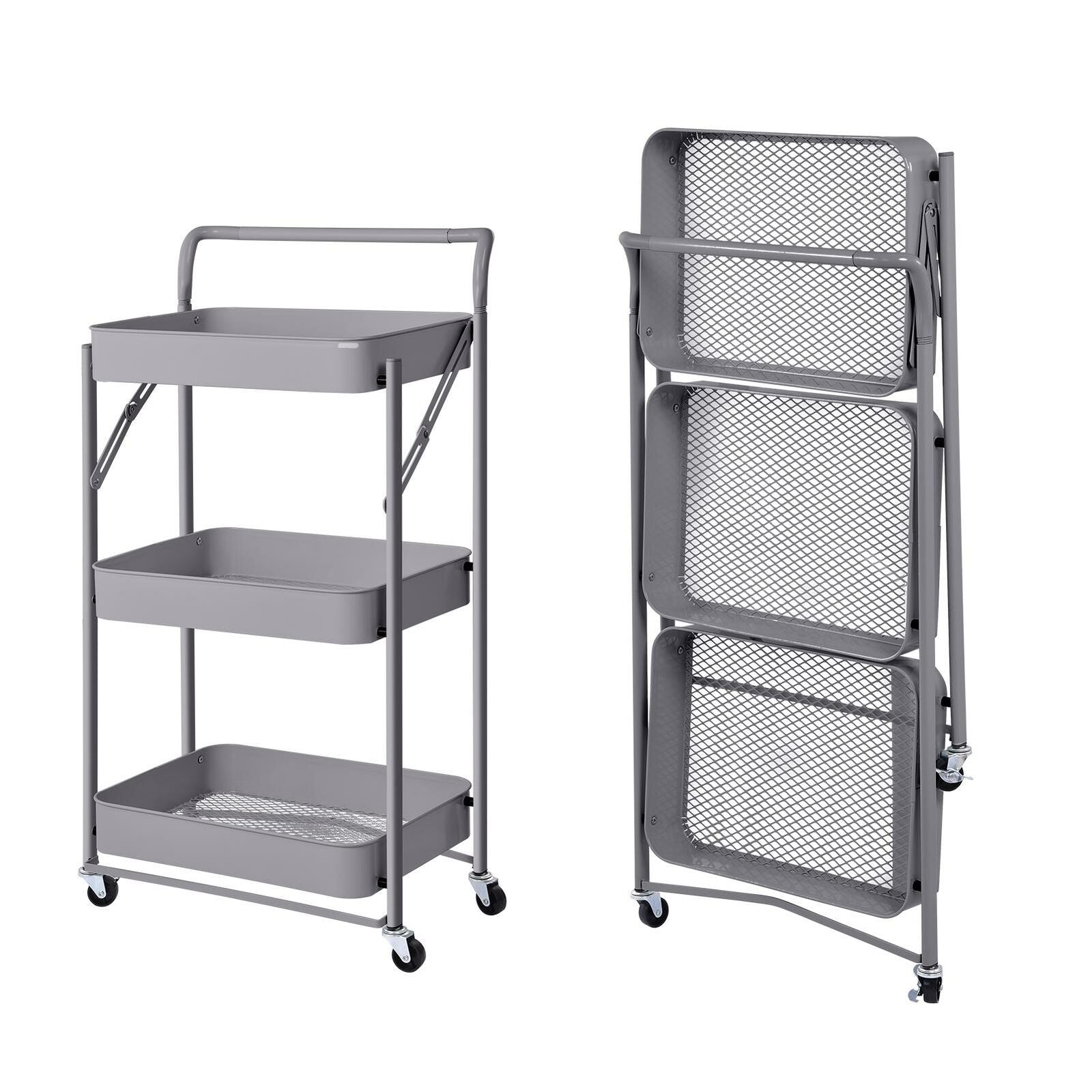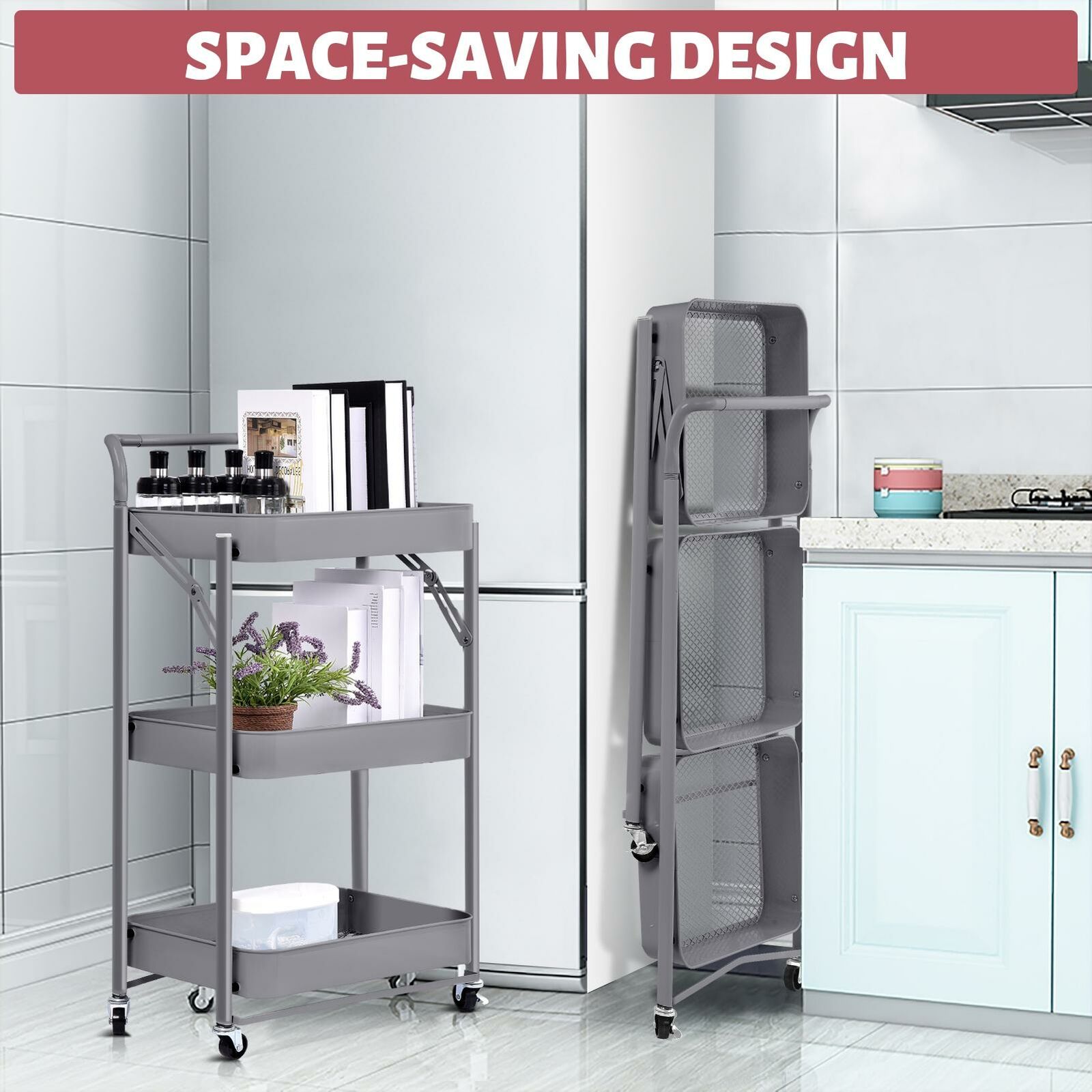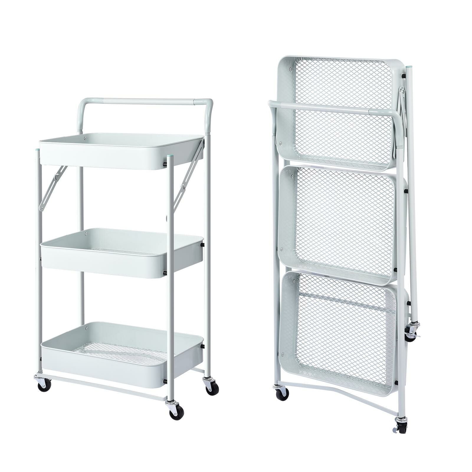 3 Tier Kitchen Folding Trolley Salon Hairdresser Storage Cart Rack Rolling Wheel