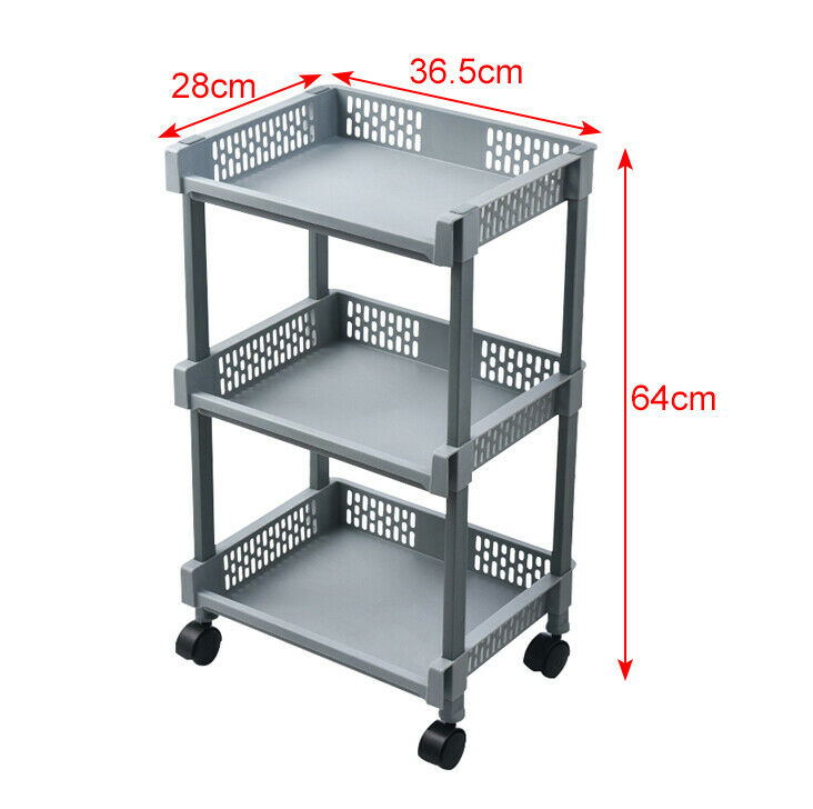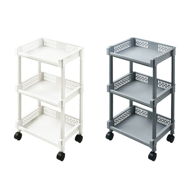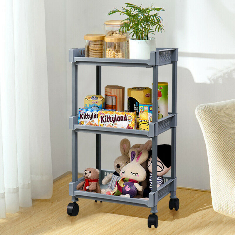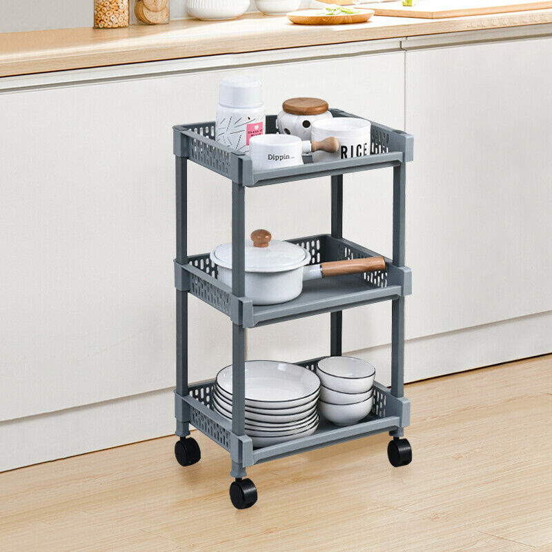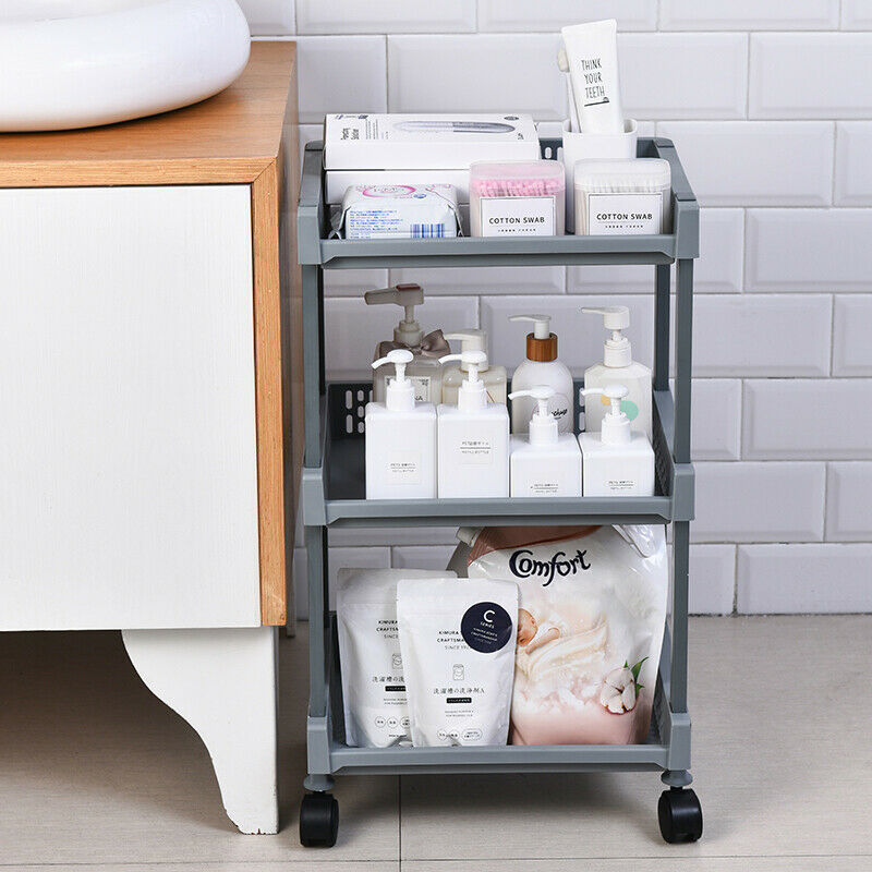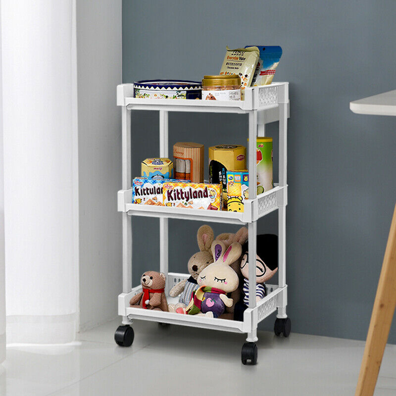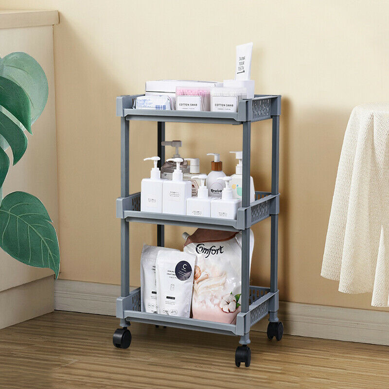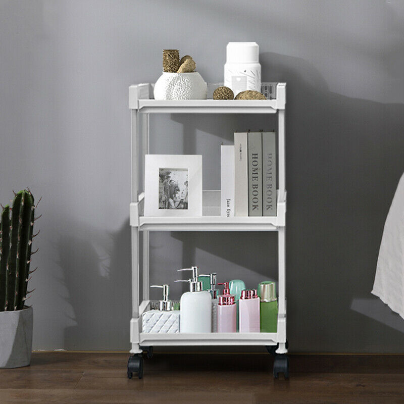 3-Tier Kitchen Storage Trolley Cart Storage Tower Rack Bathroom with Shelf Wheel