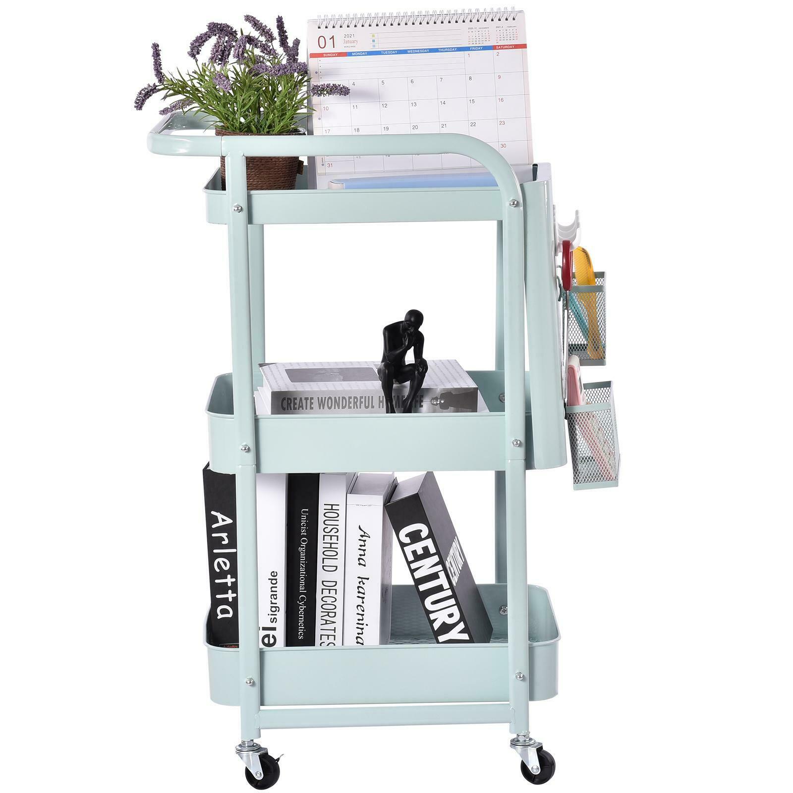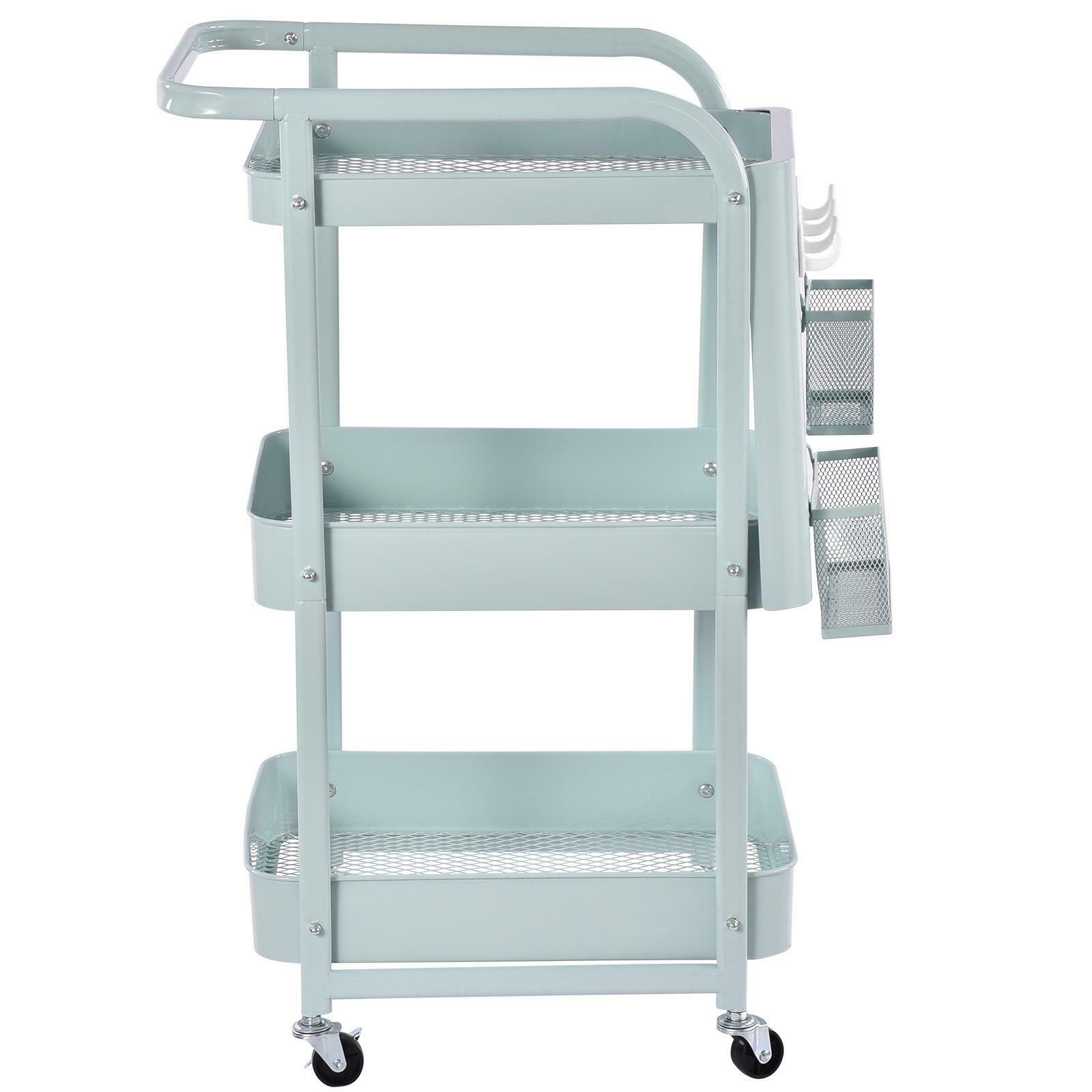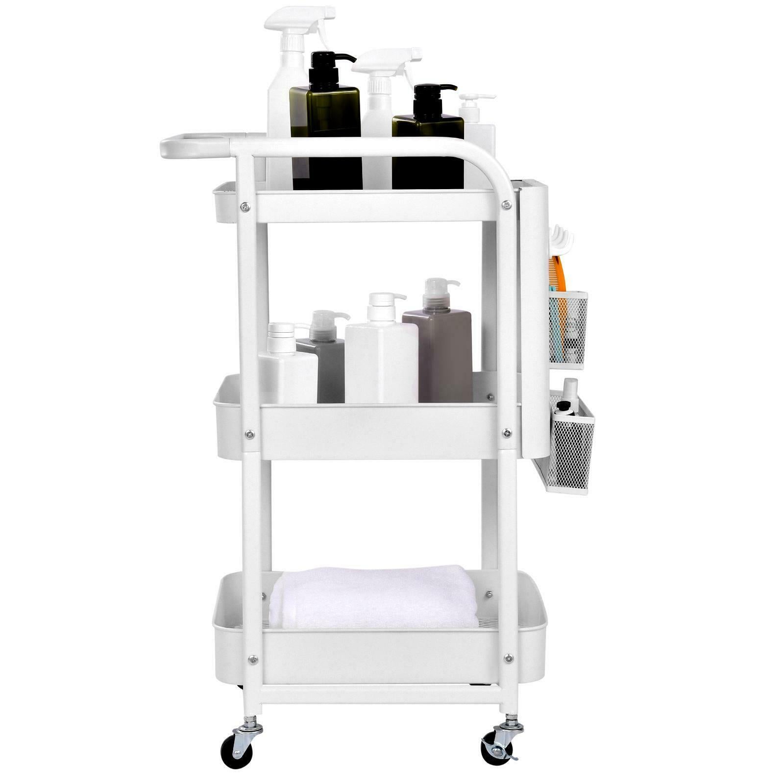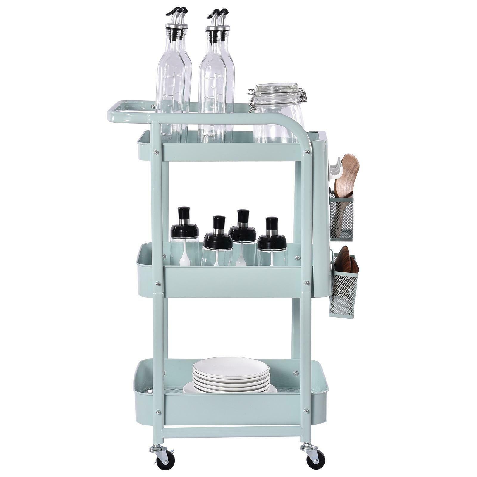 3 Tier Kitchen Trolley Cart Handle Slim Rolling Wheel Storage Basket Rack Salon
