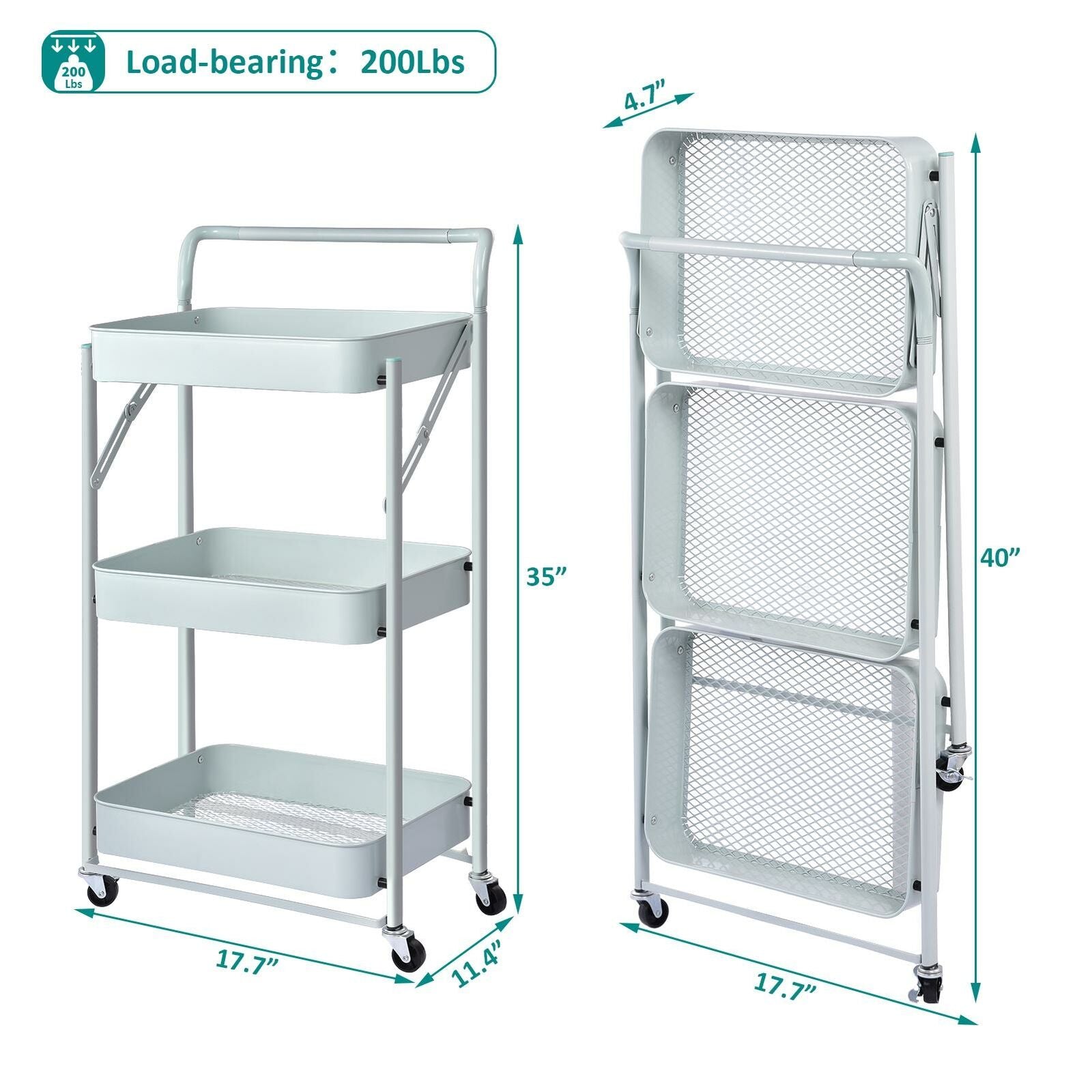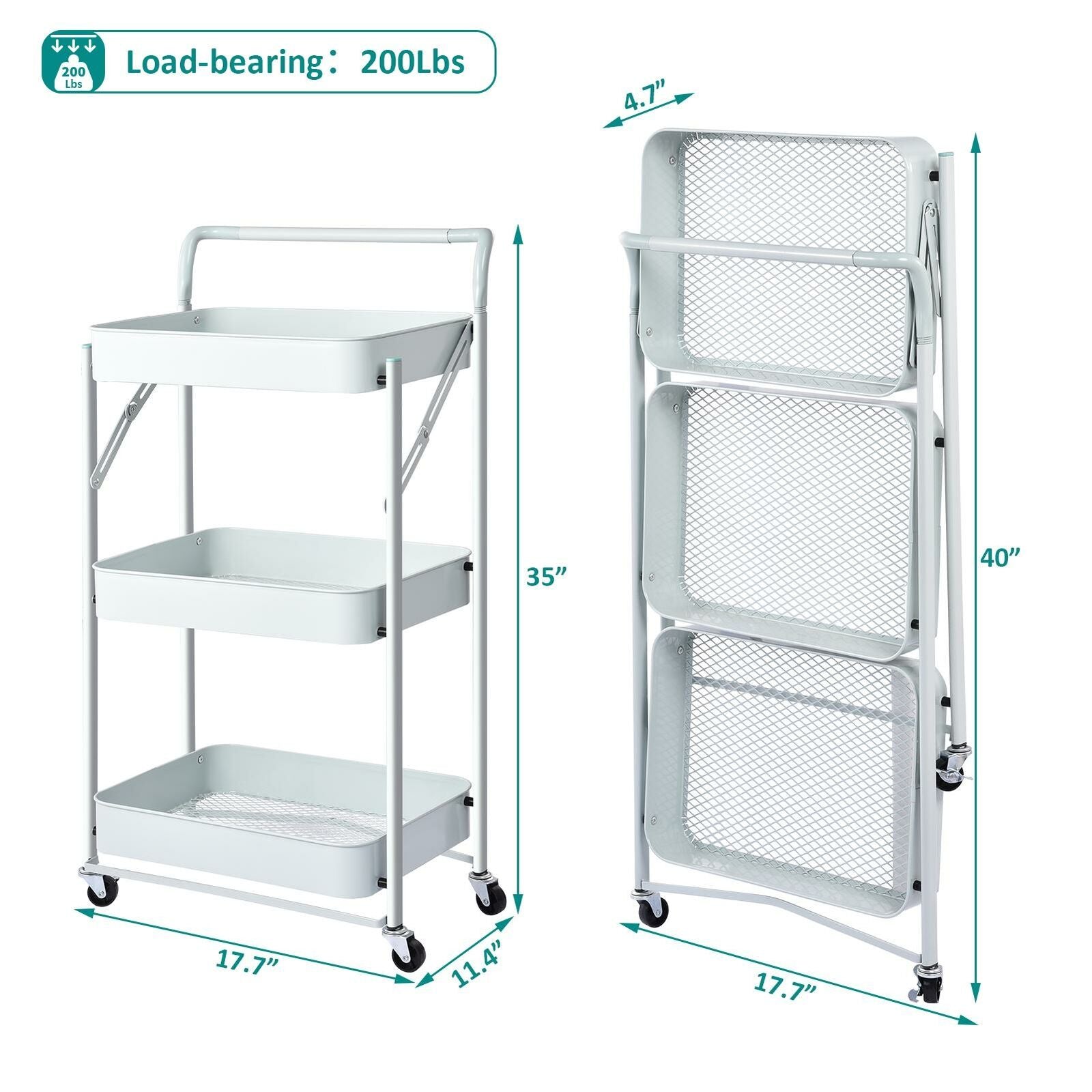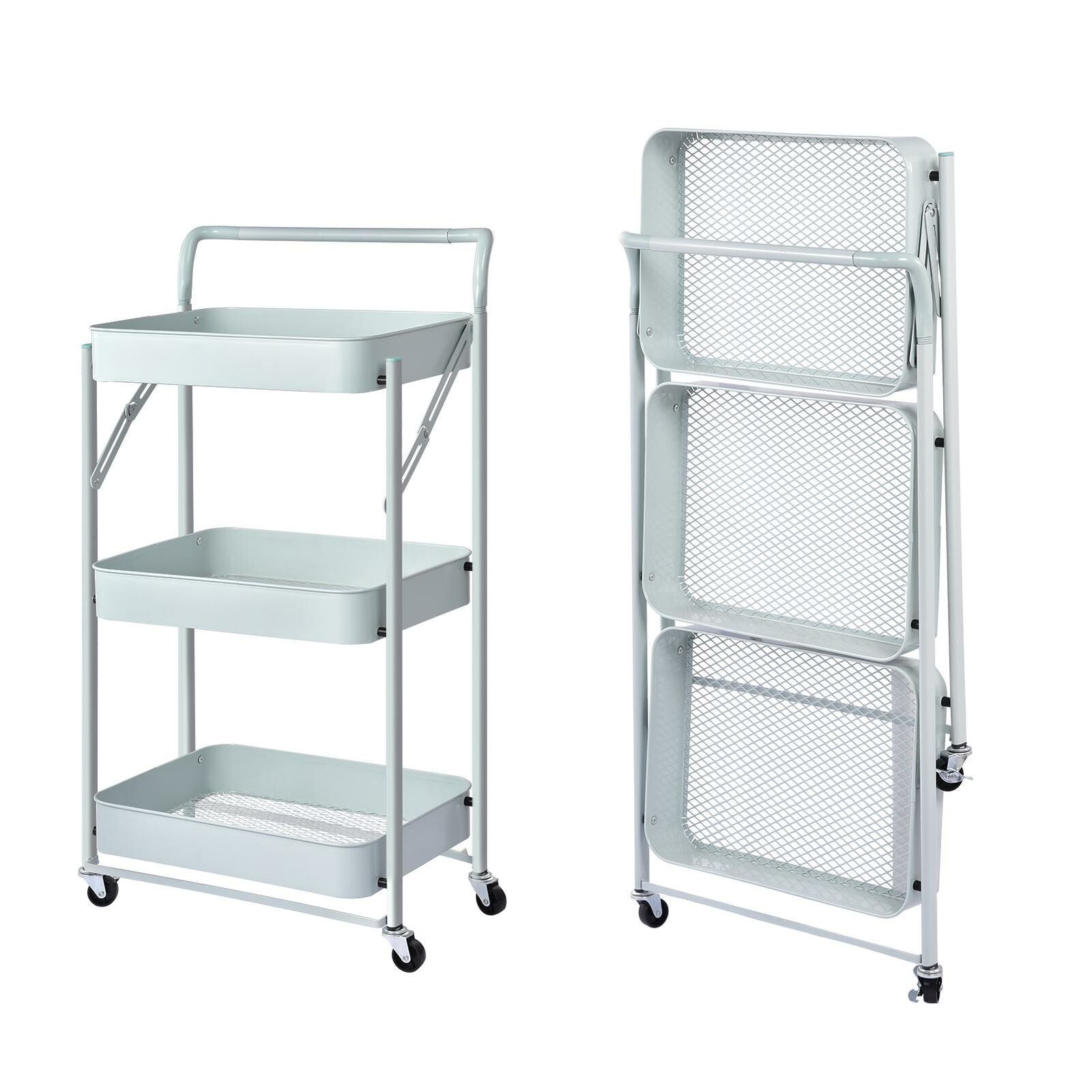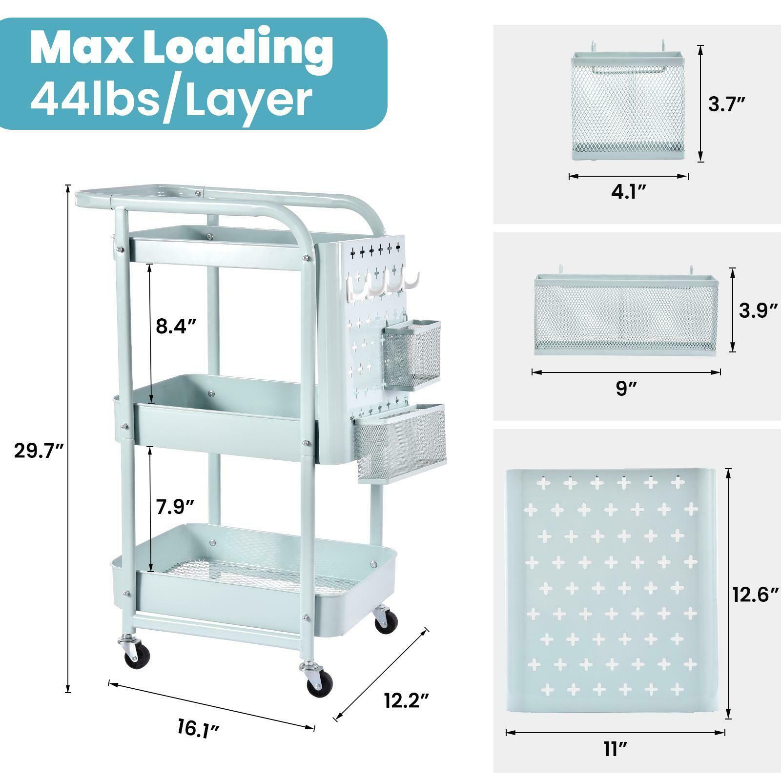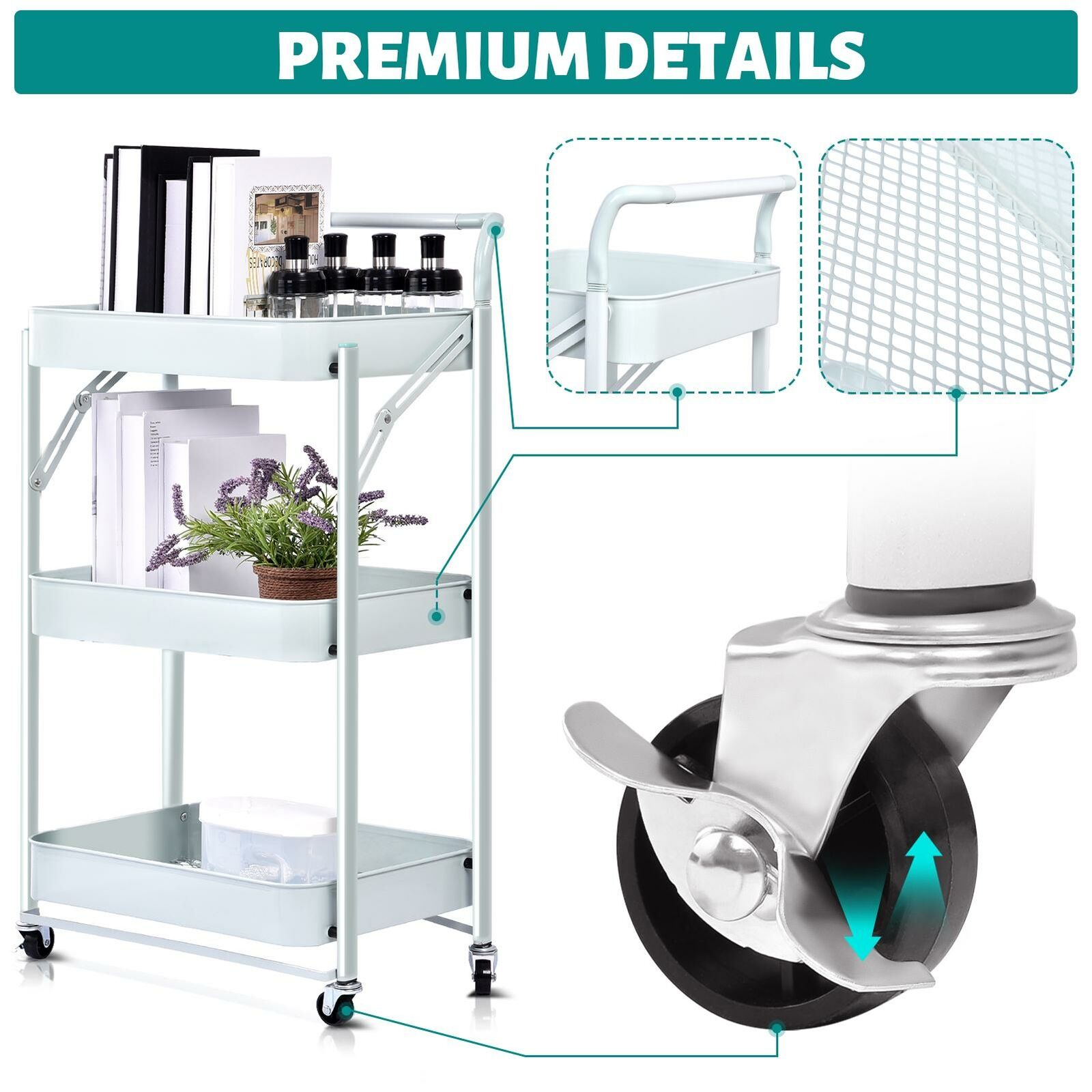 3 Tier Kitchen Trolley Cart Handle Slim Rolling Wheel Storage Basket Rack Salon