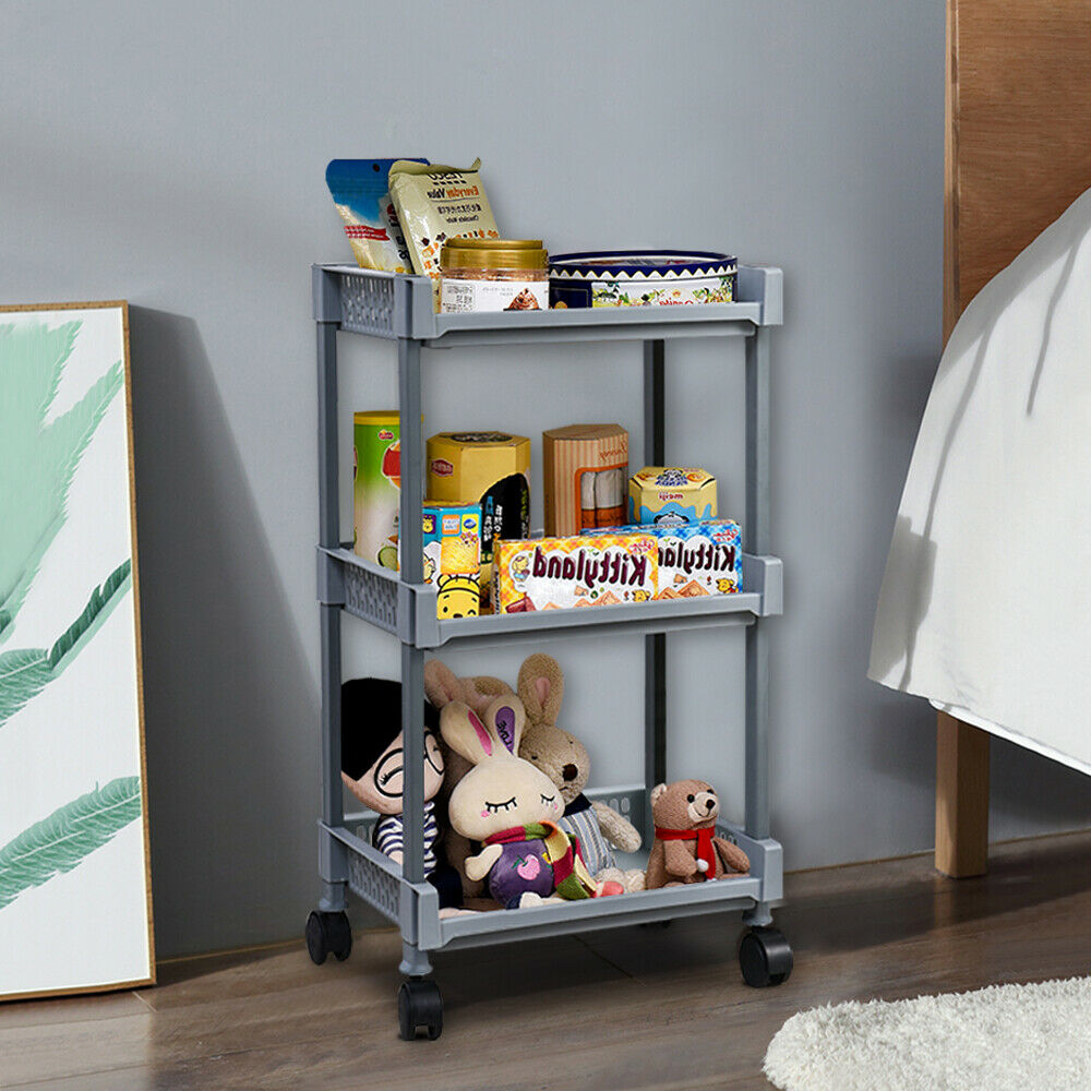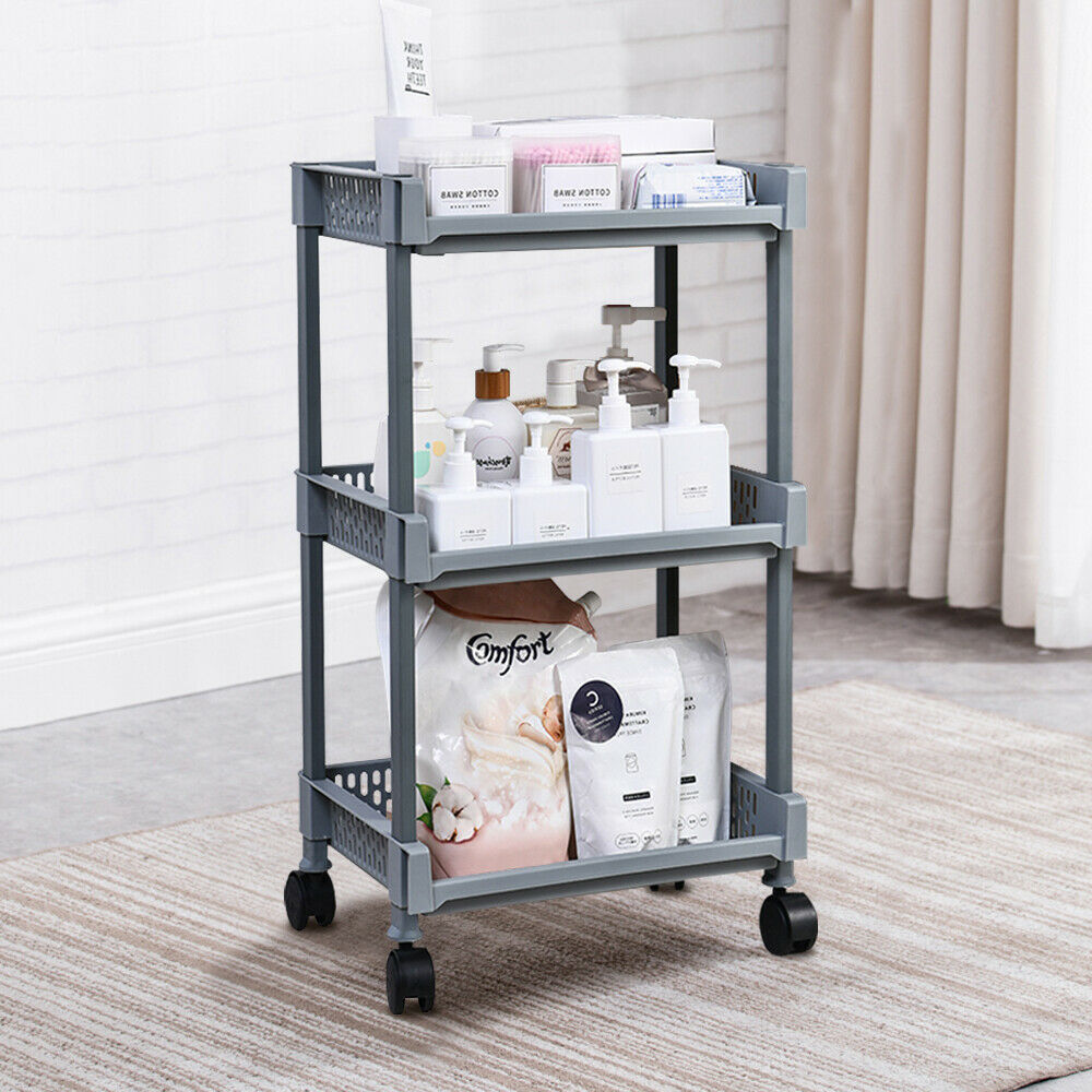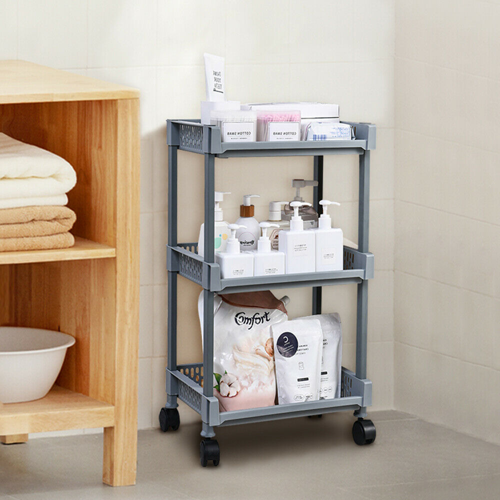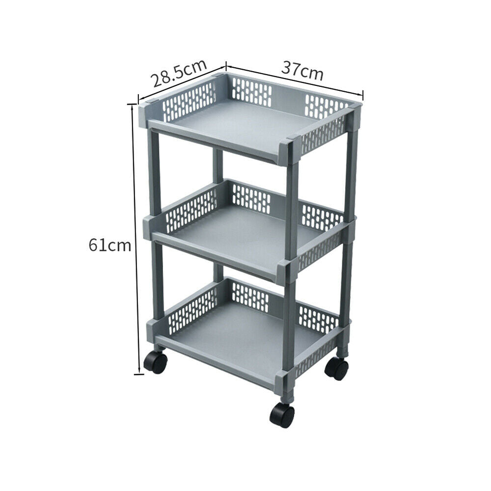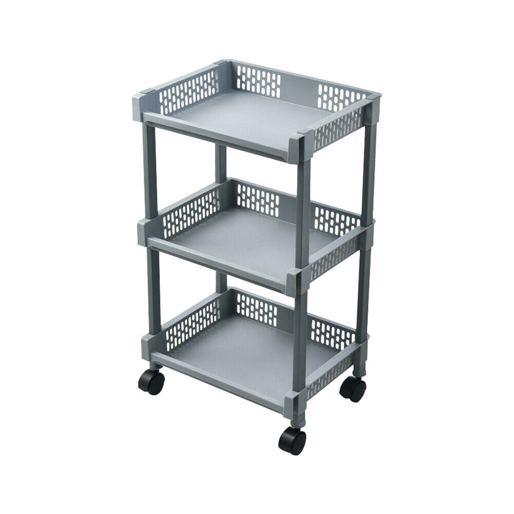 3 Tier Kitchen Trolley Cart Handle Wheel Storage Basket Rack Salon Carts