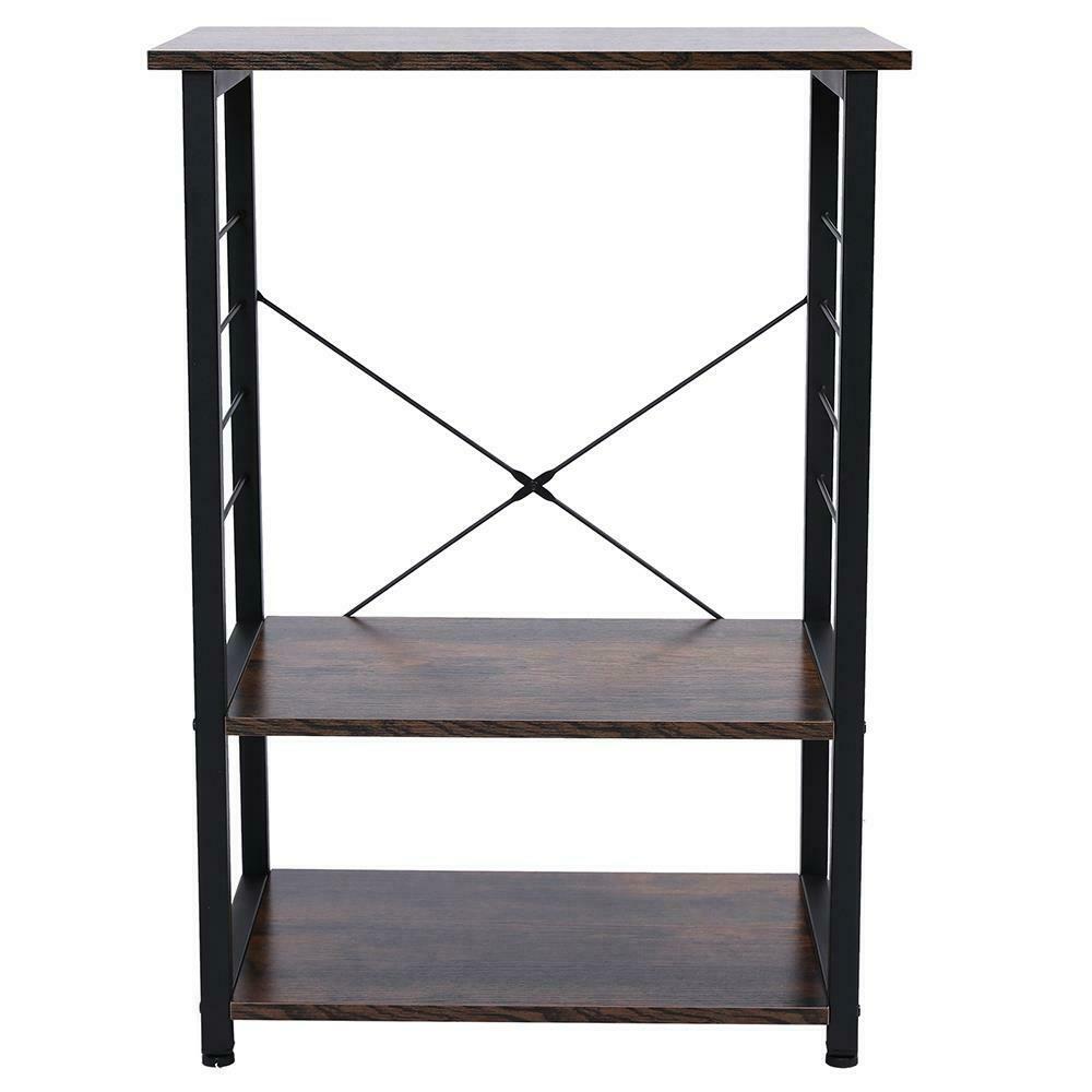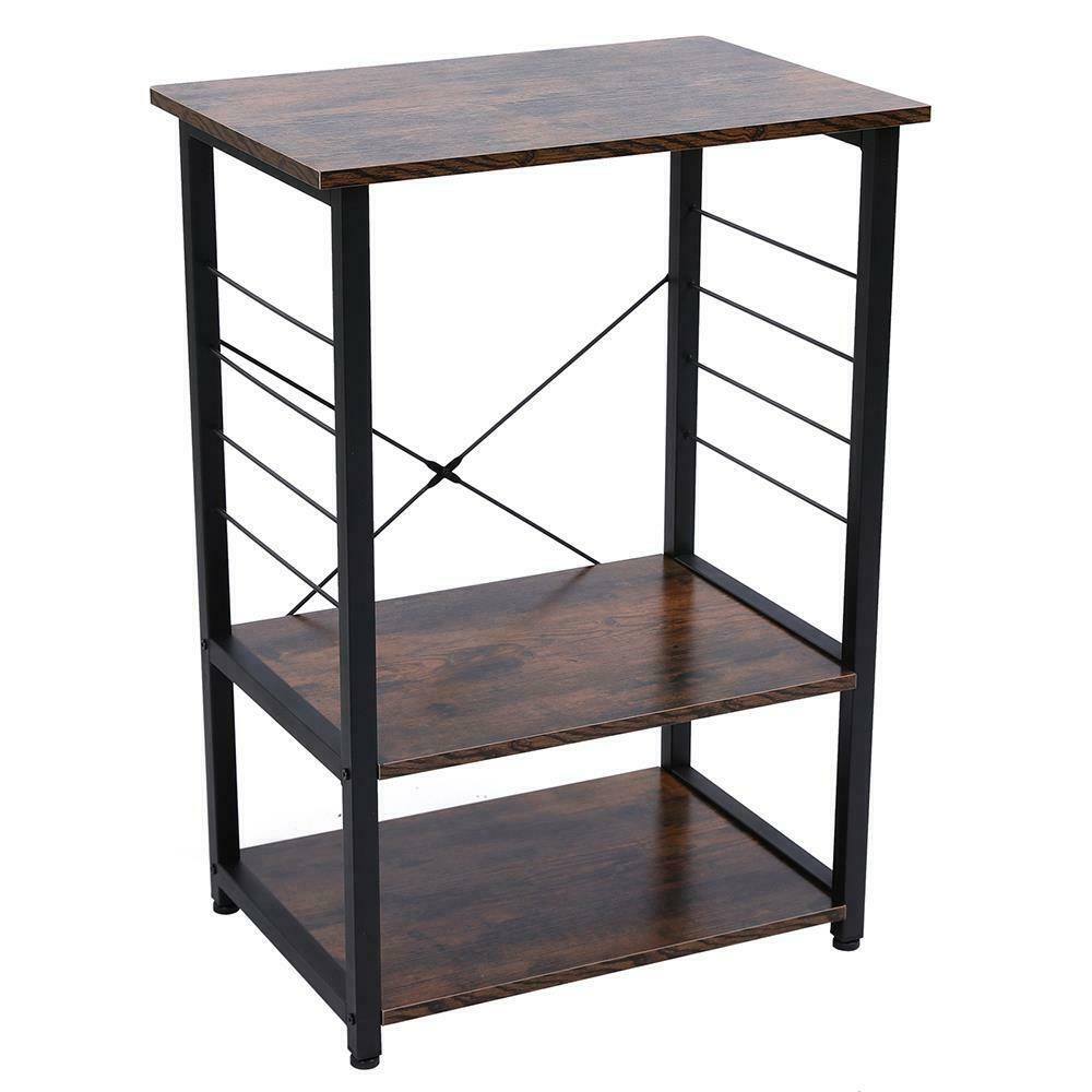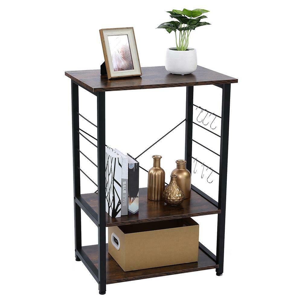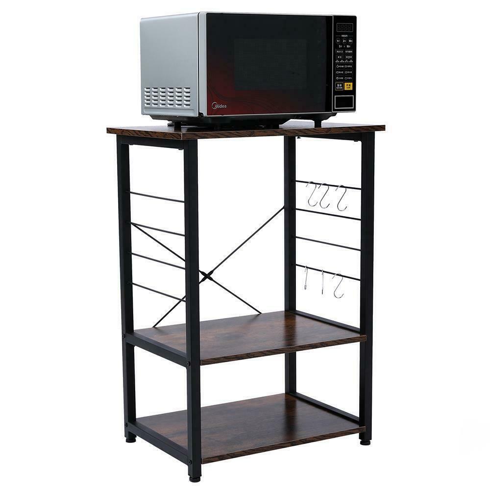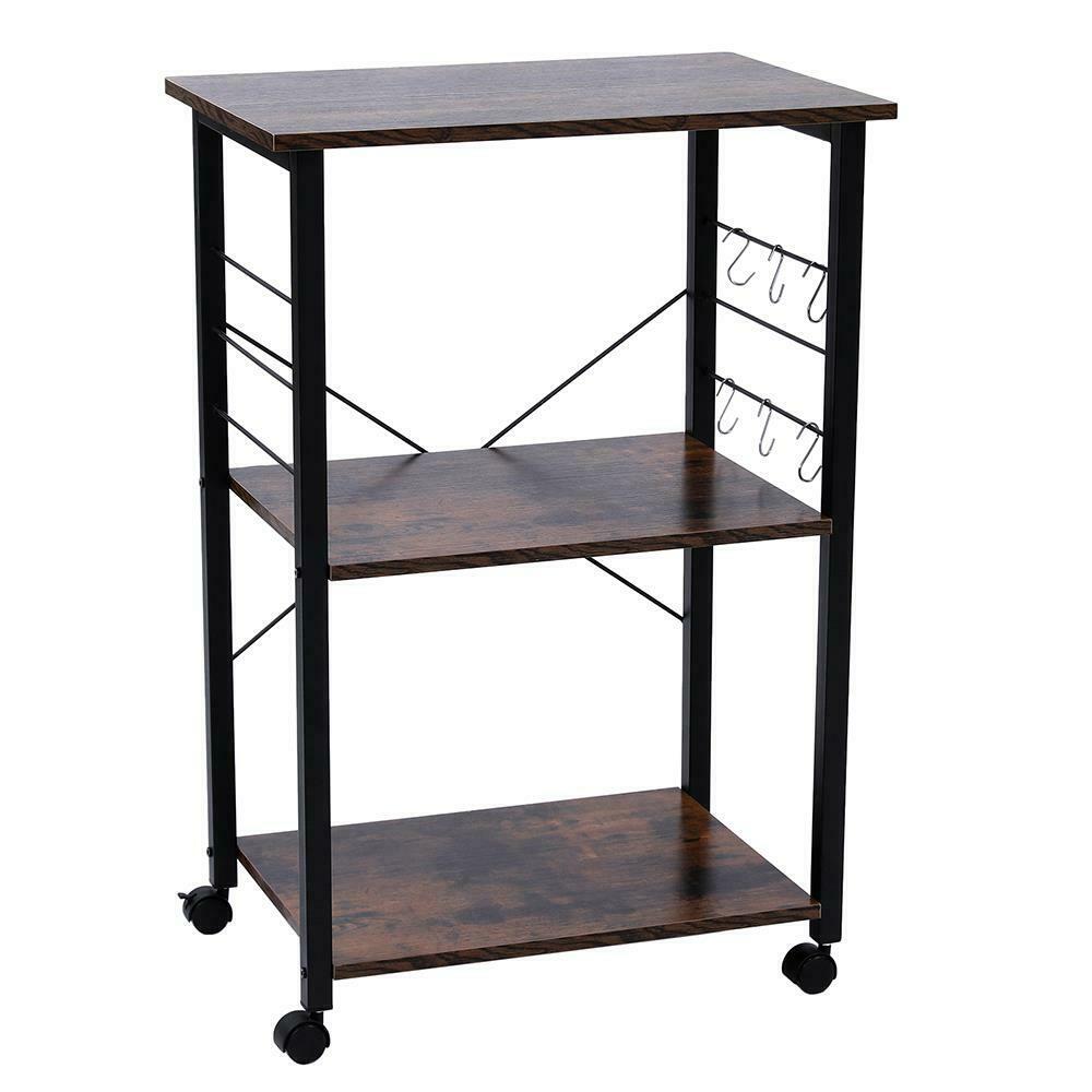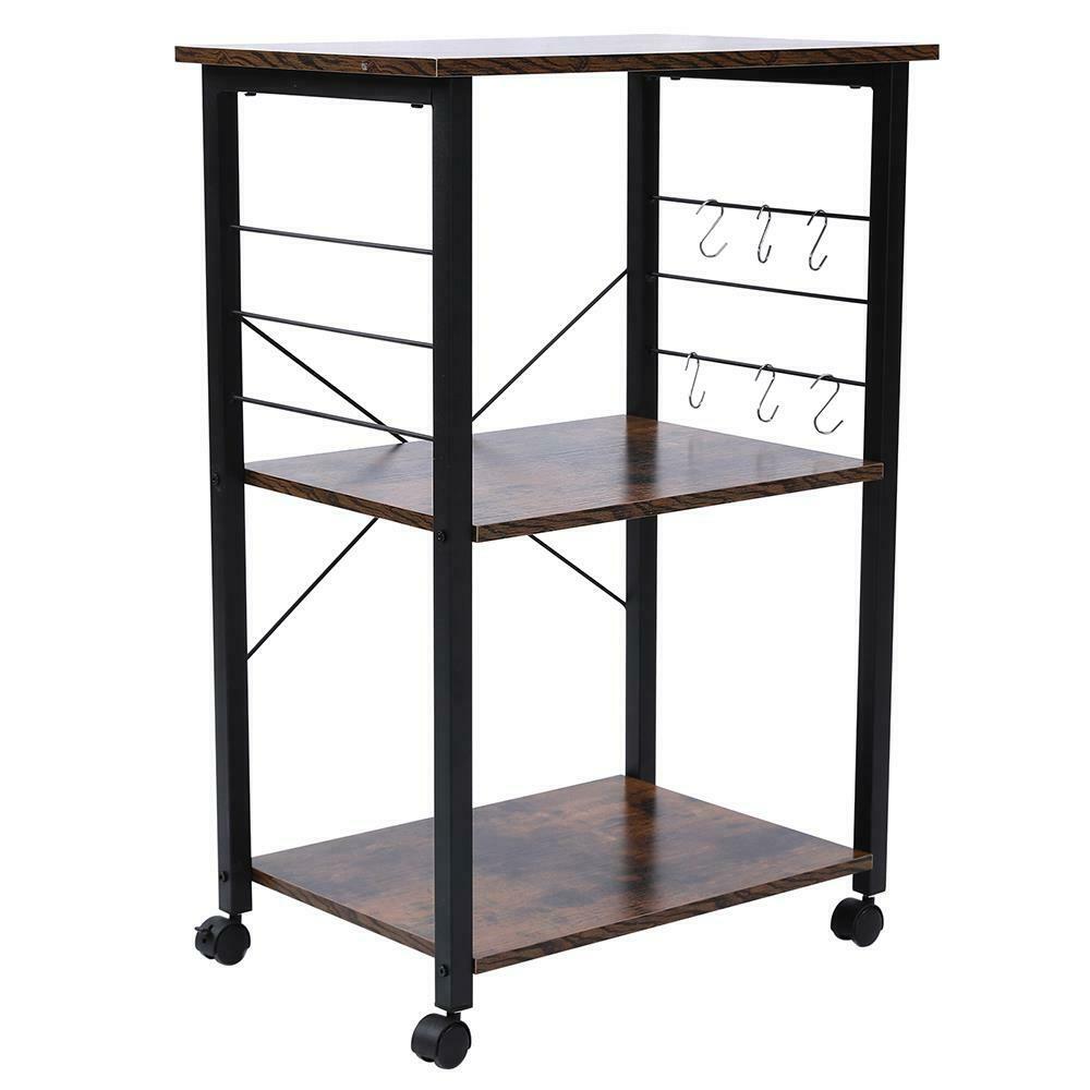 3 Tier Kitchen Trolley Microwave Cart Stand Shelves Storage Hooks Wooden Rack