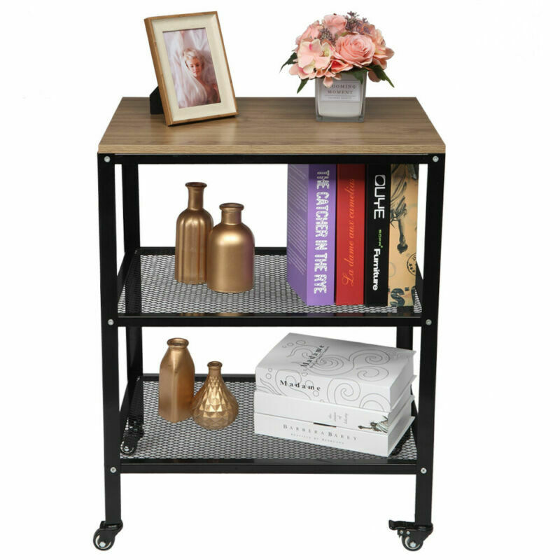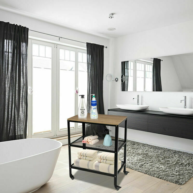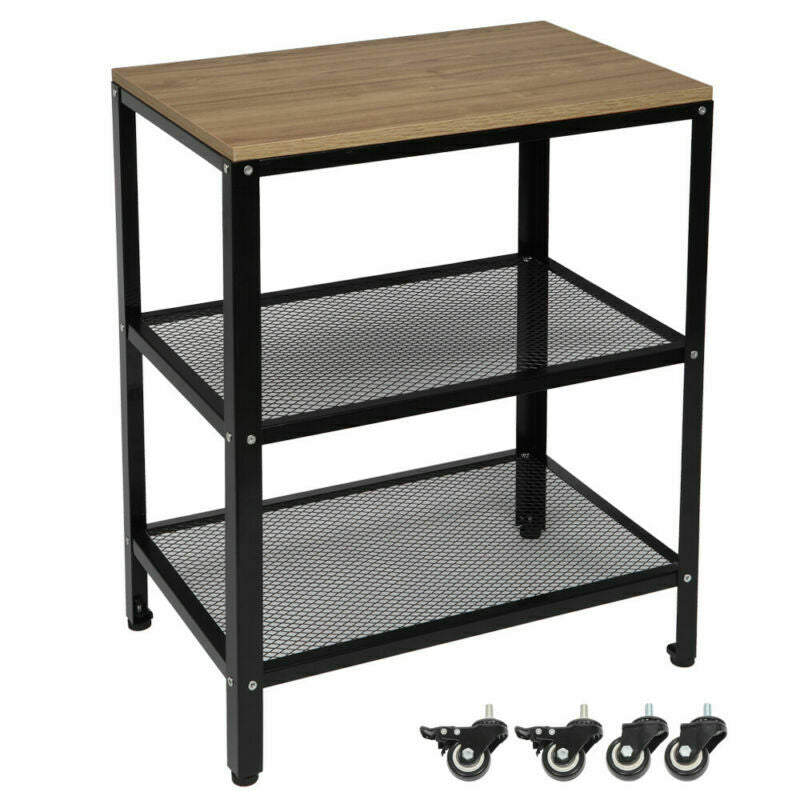 3-Tier Kitchen Trolley Microwave Cart Stand Shelves Storage Wooden Utensils Rack