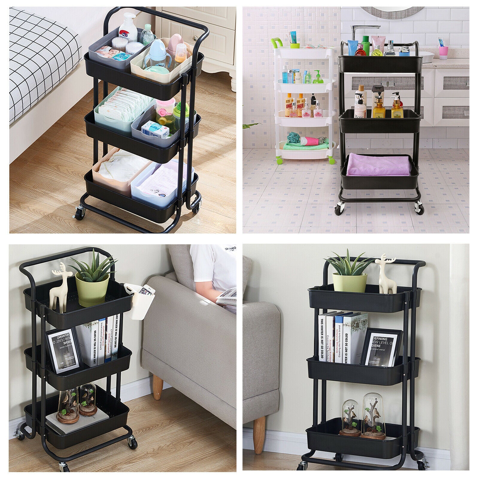 3 Tier Kitchen Trolley Salon Hairdresser Storage Cart Rack Rolling Wheels Black