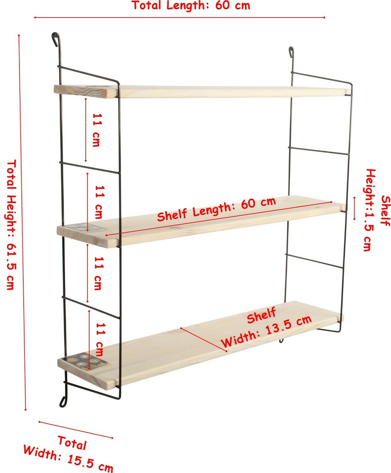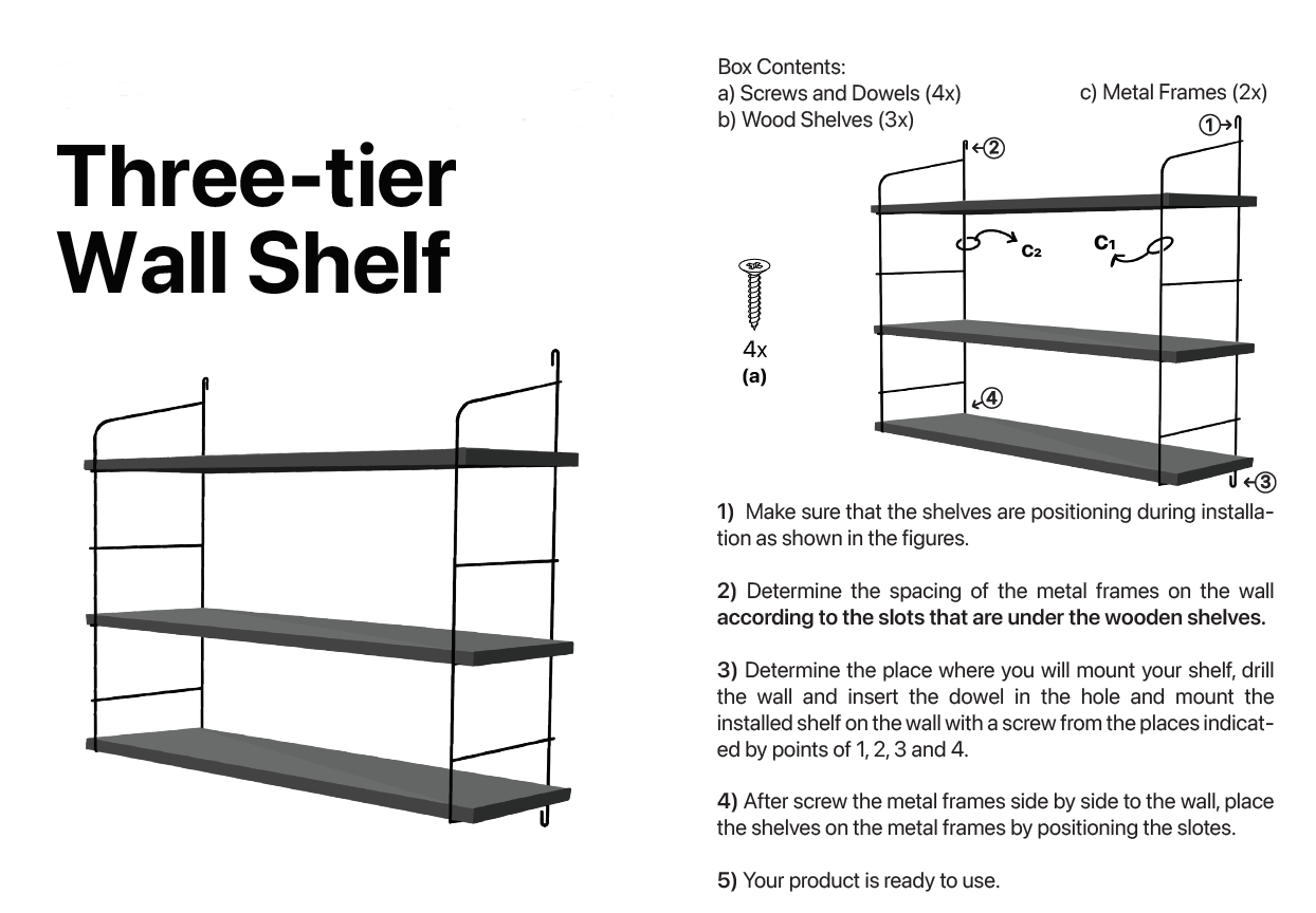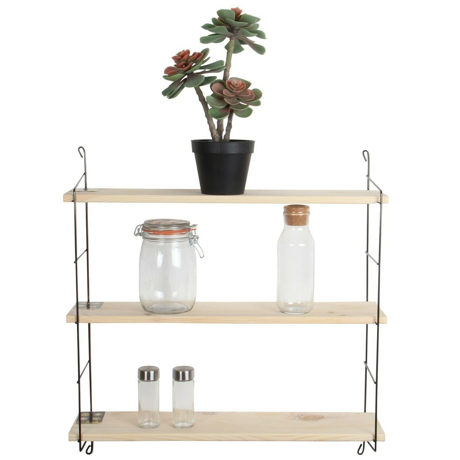 3 Tier Mounted Wall Floating Shelves.Decorative Shelf.(Black Metal & Solid Wood)