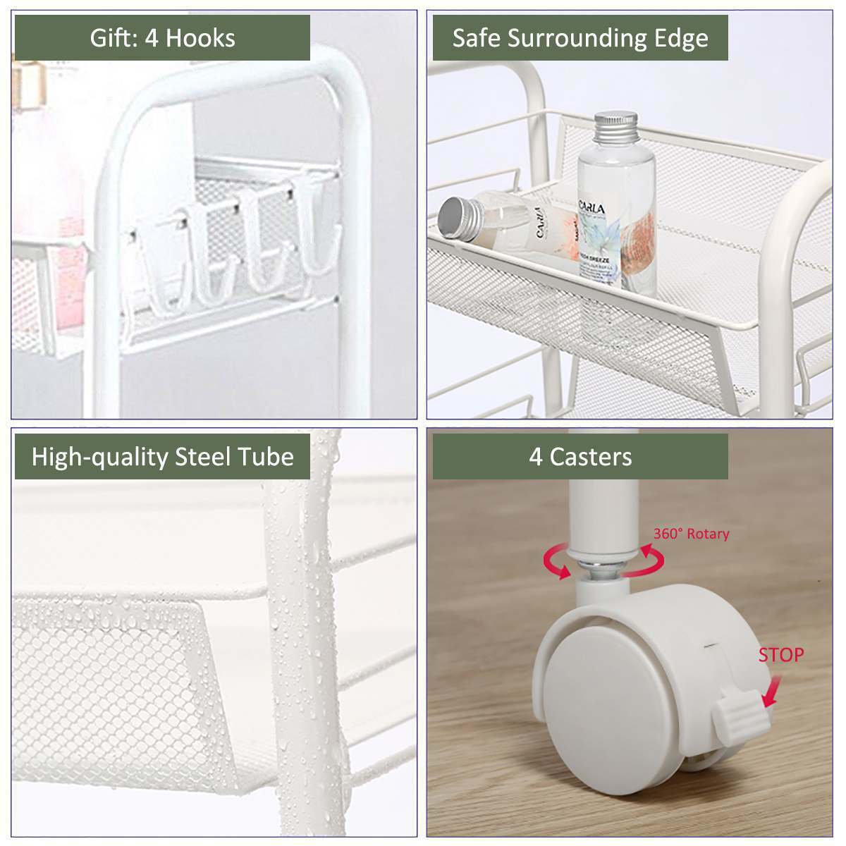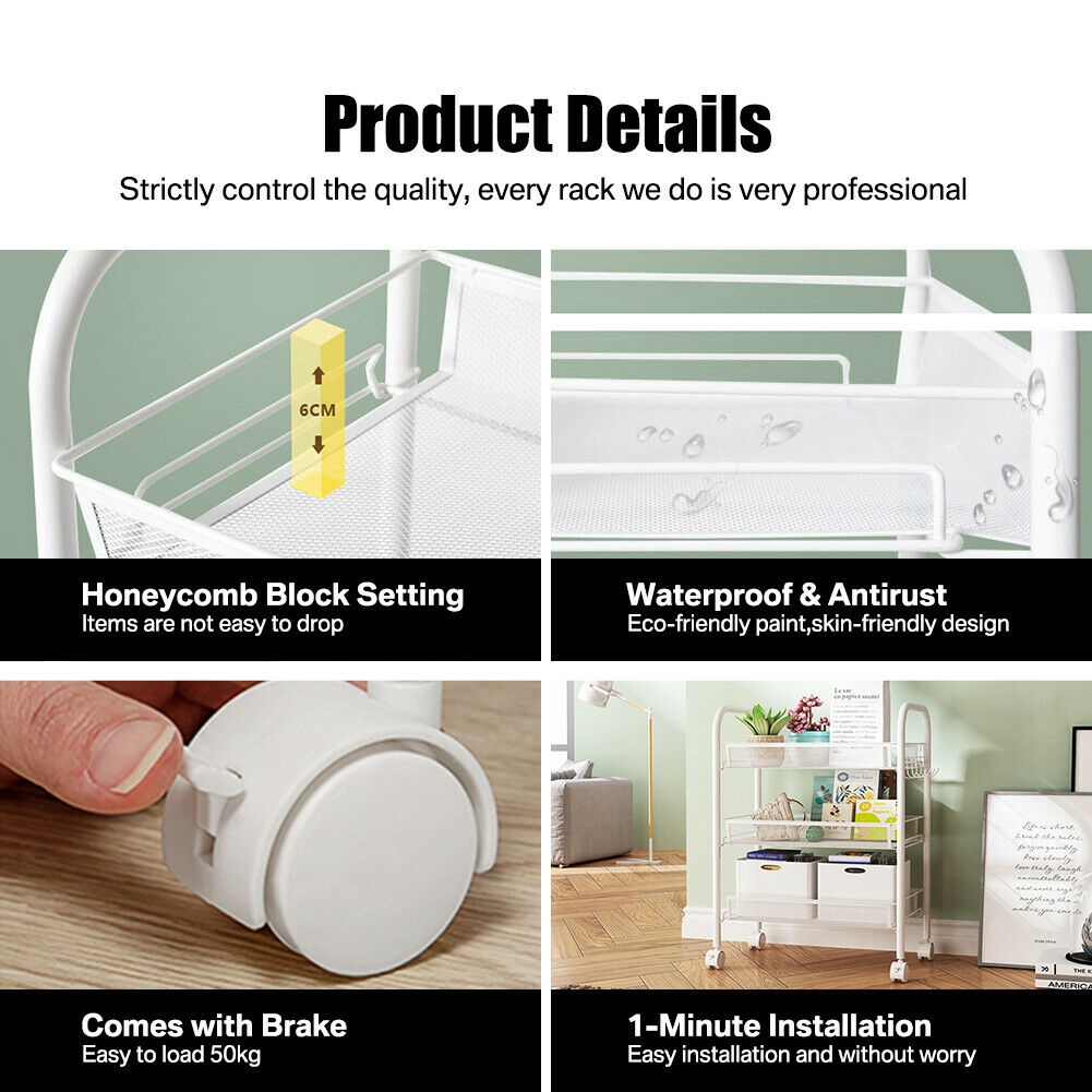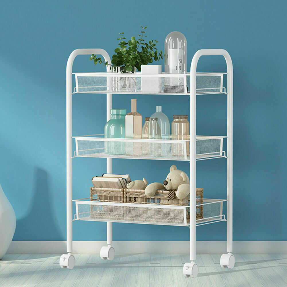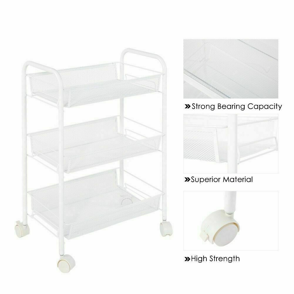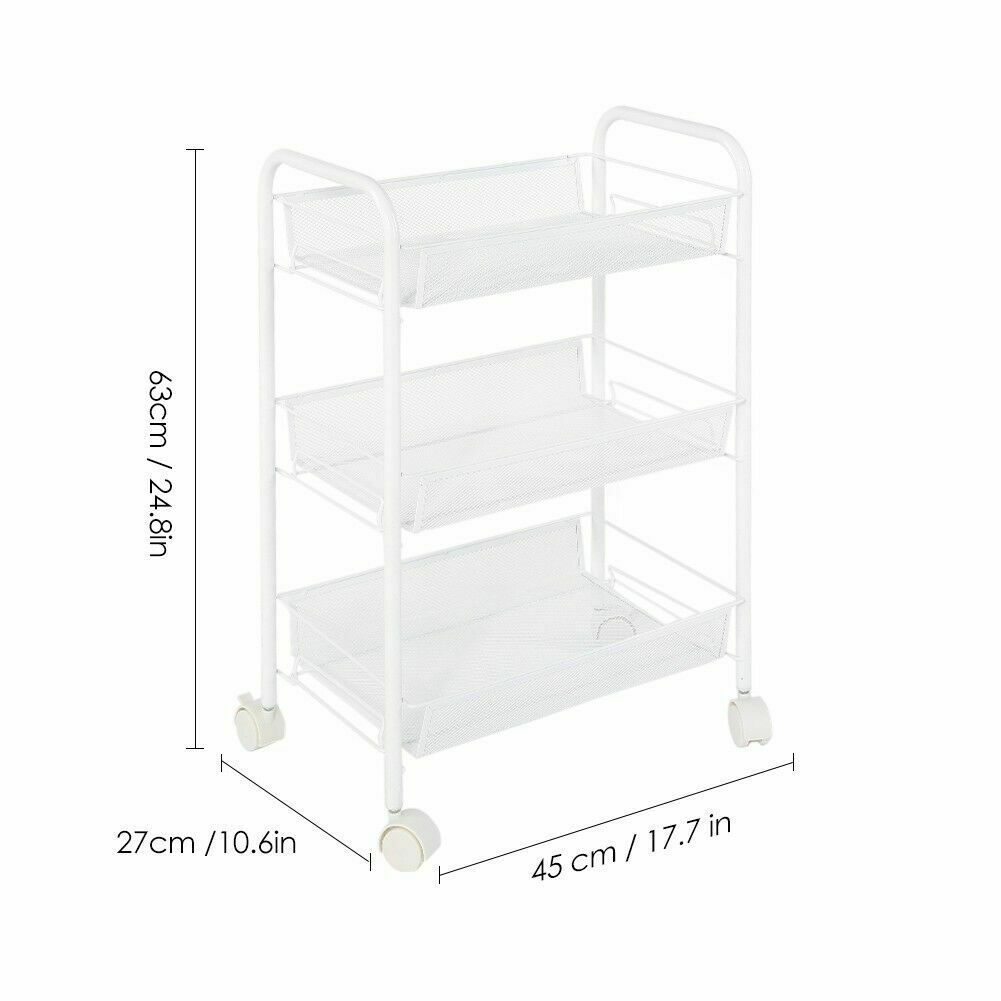 3 Tier Multi-purpose Trolley Cart Rolling Mesh Storage Rack Shelf with Wheel New