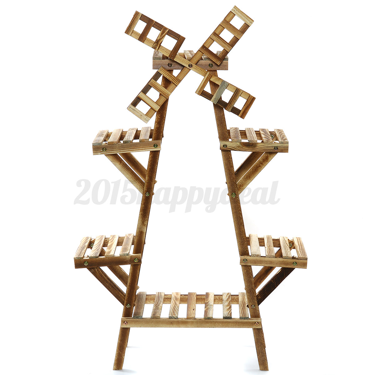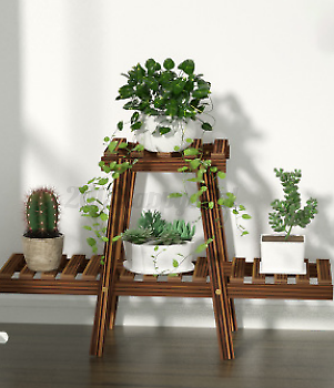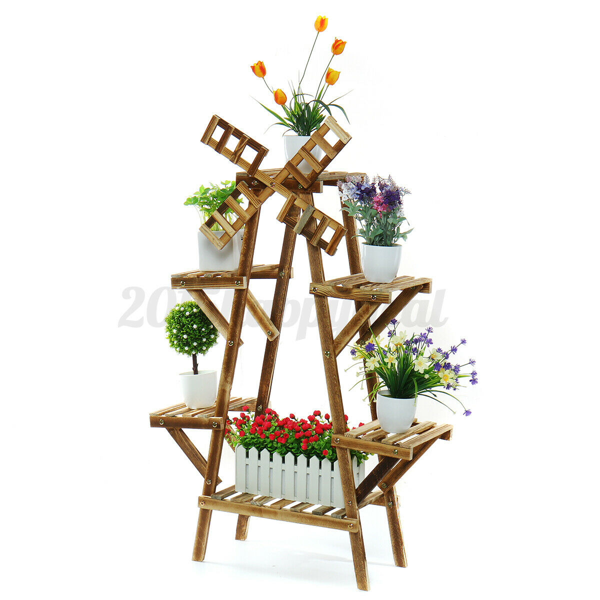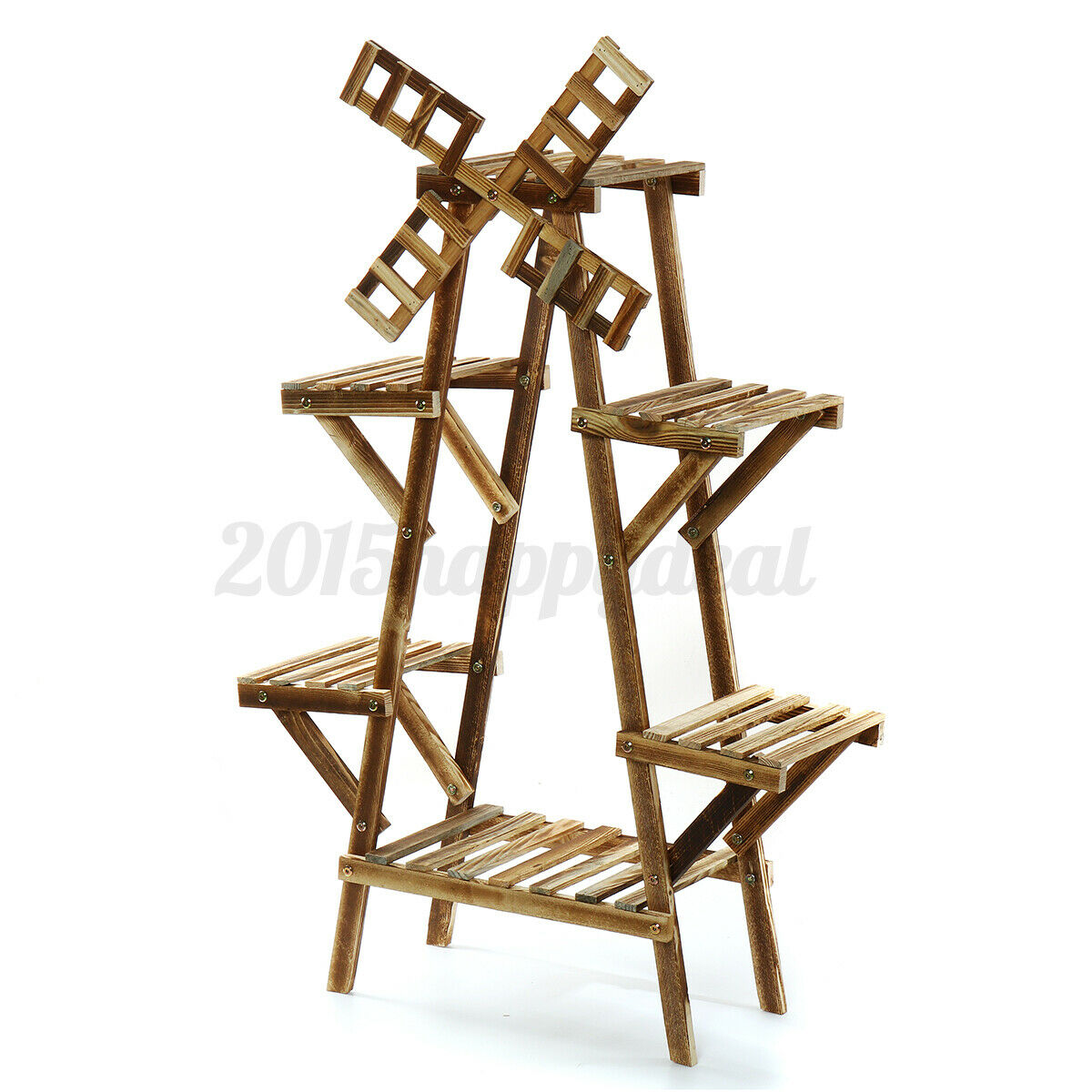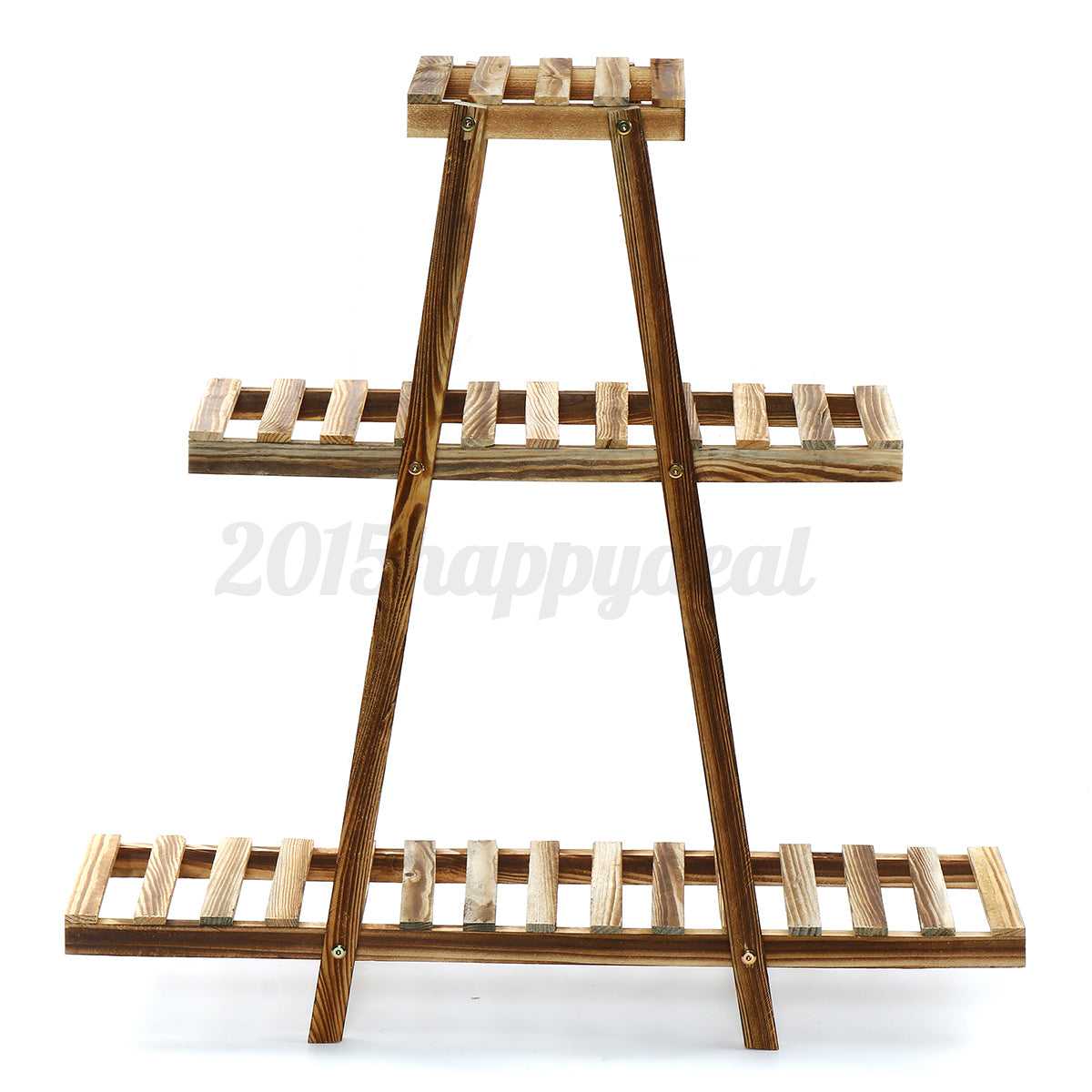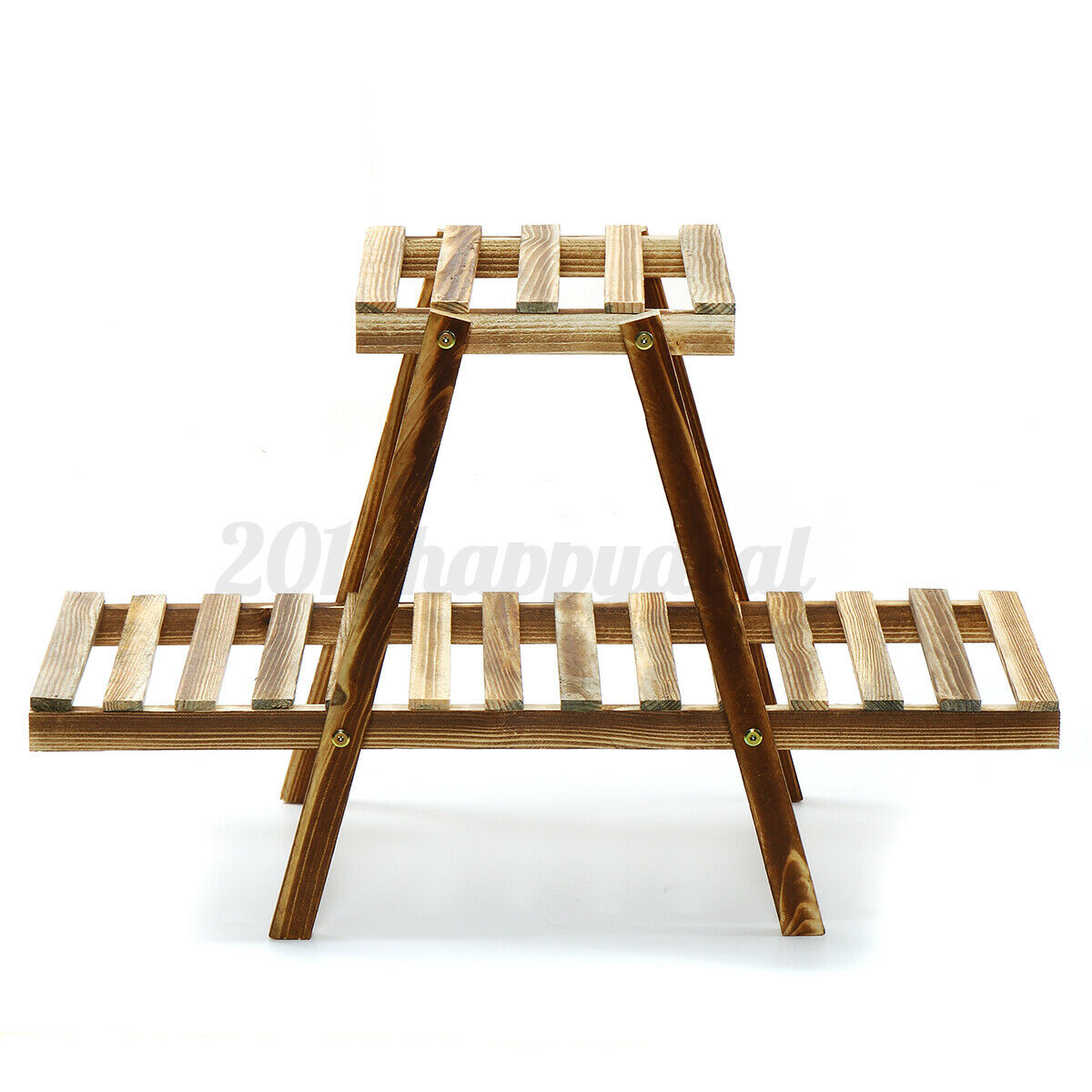 3 Tier Outdoor Wooden Flower Plant Pot Shelf Stand Folding Display Ladder Garden