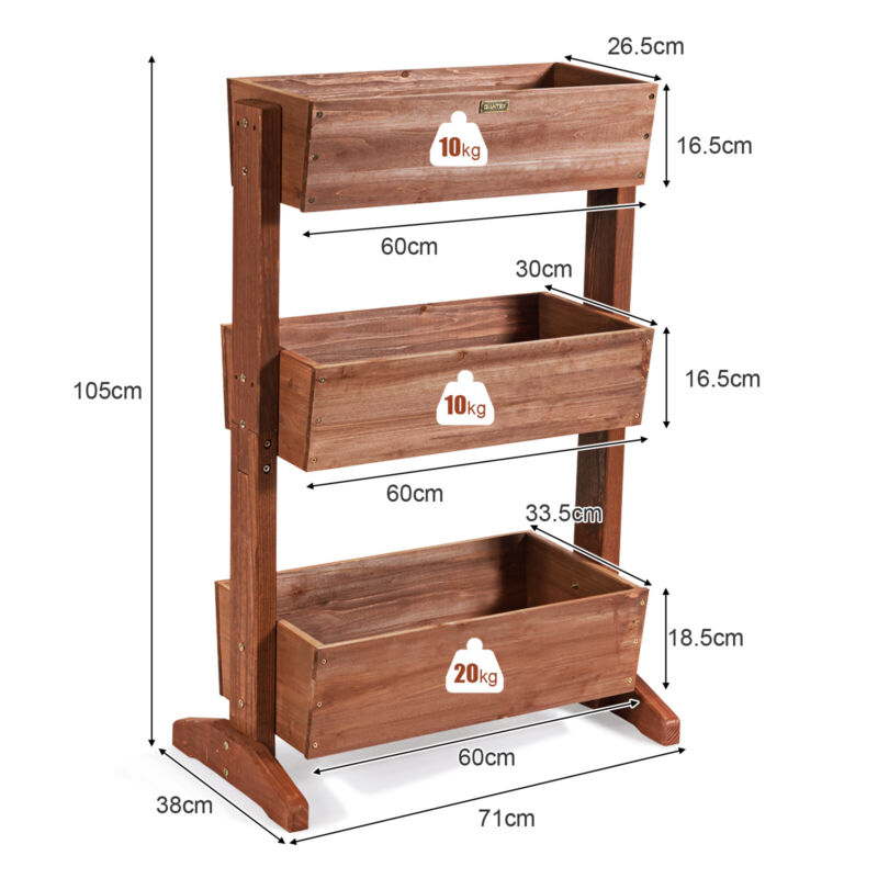 3 Tier Raised Garden Bed Vertical Flower Pots Rack Wooden Elevated Plant Stand