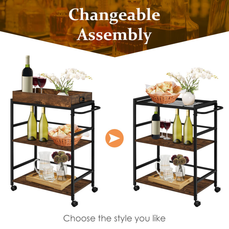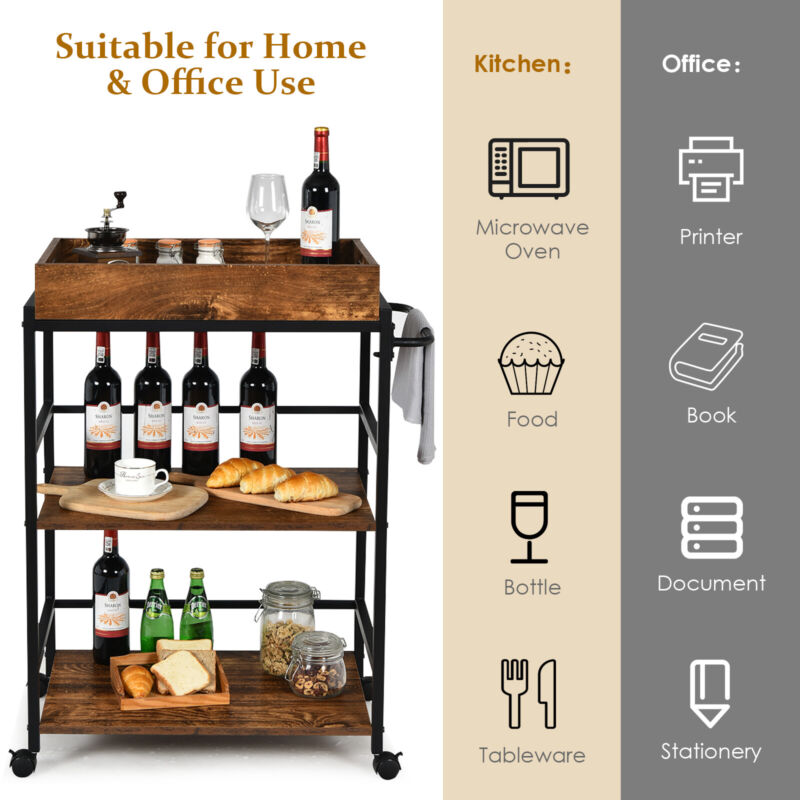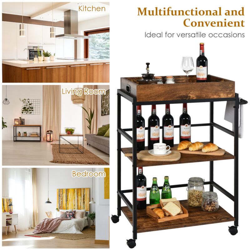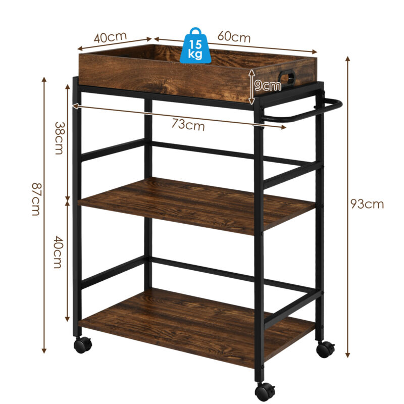 3-Tier Rolling Trolley Cart Utility Organiser Shelves with Lockable Wheels &Tray