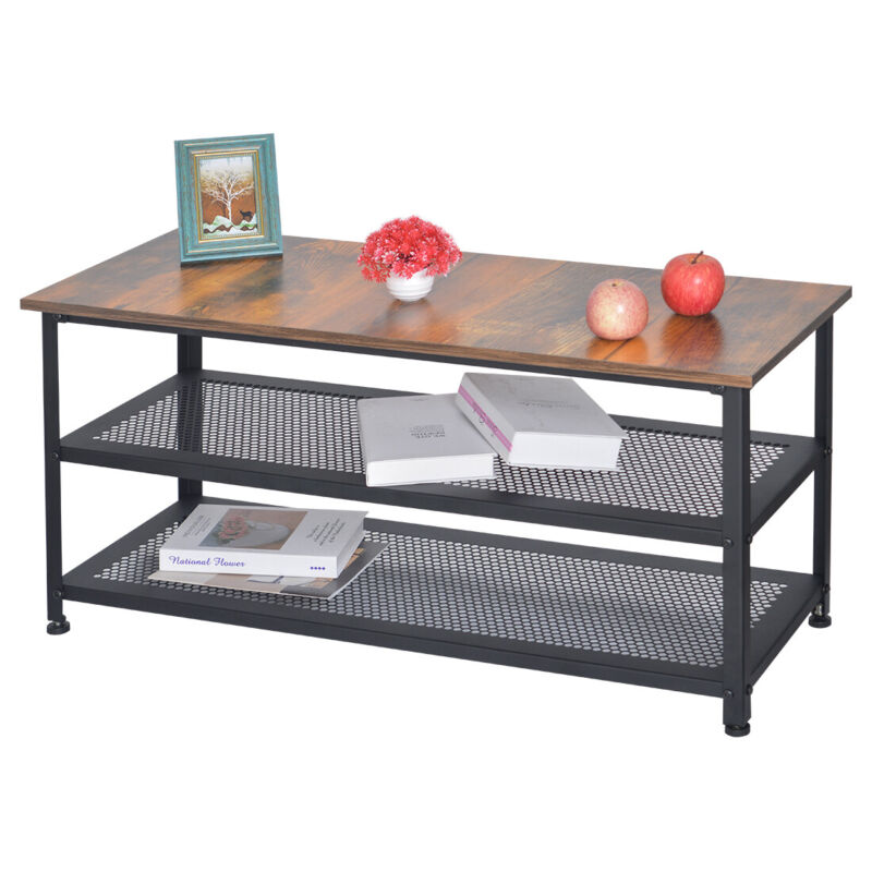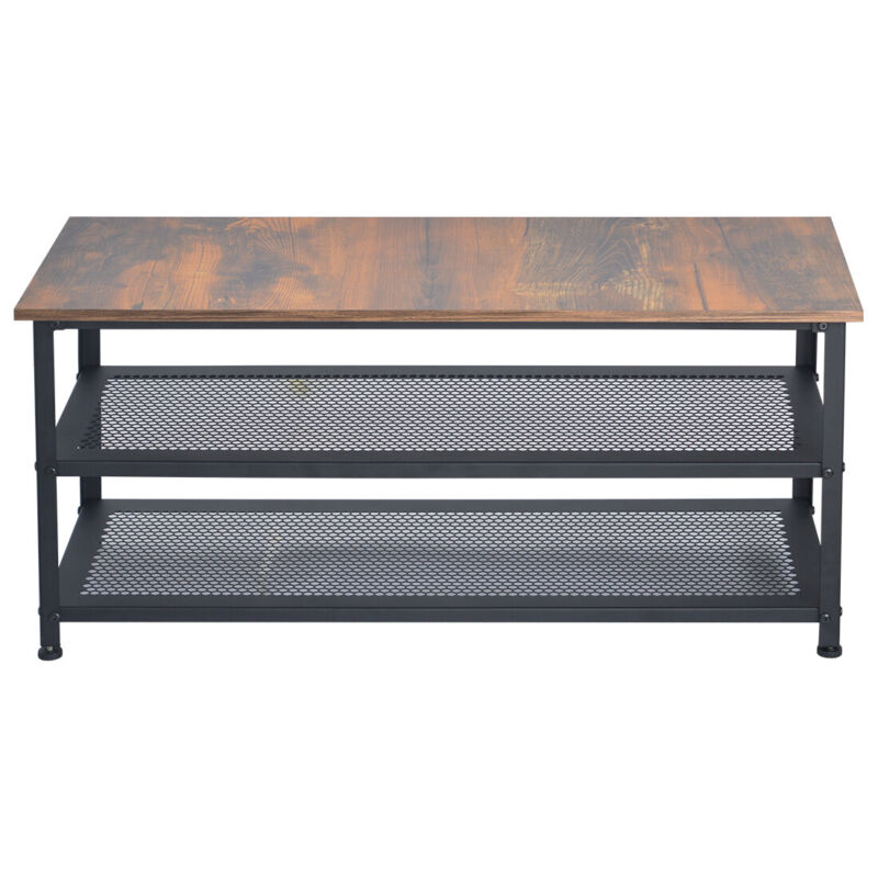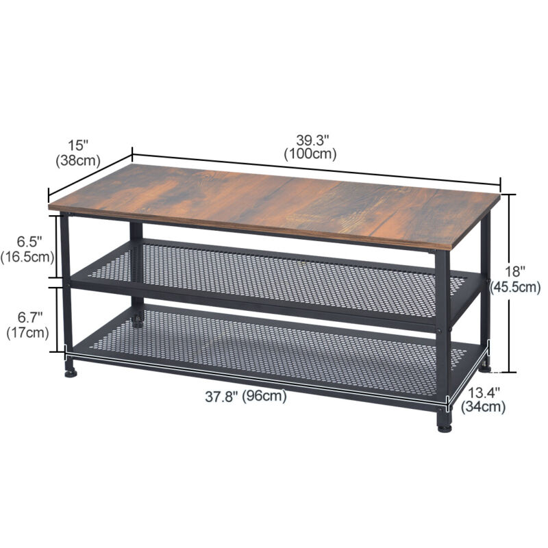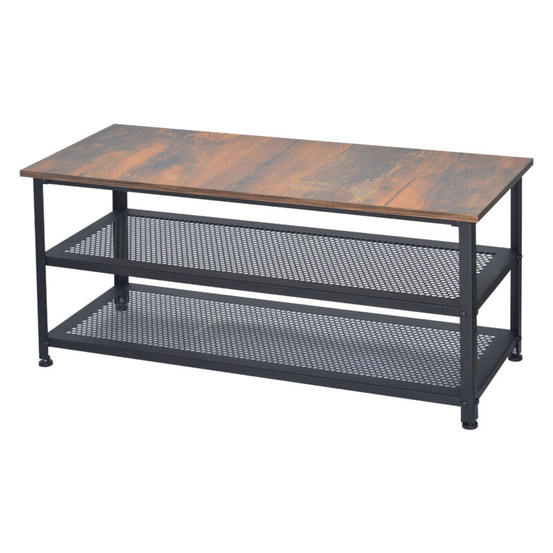 3-Tier Shoe Rack Bench Industrial Style Metal Wooden Shoe Storage Bench & Seat