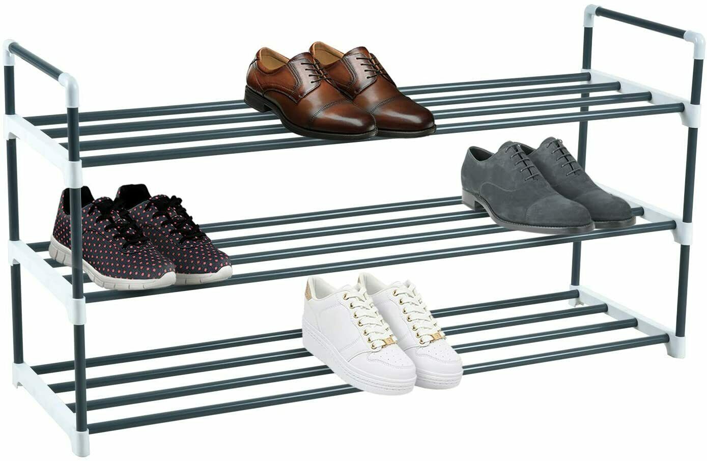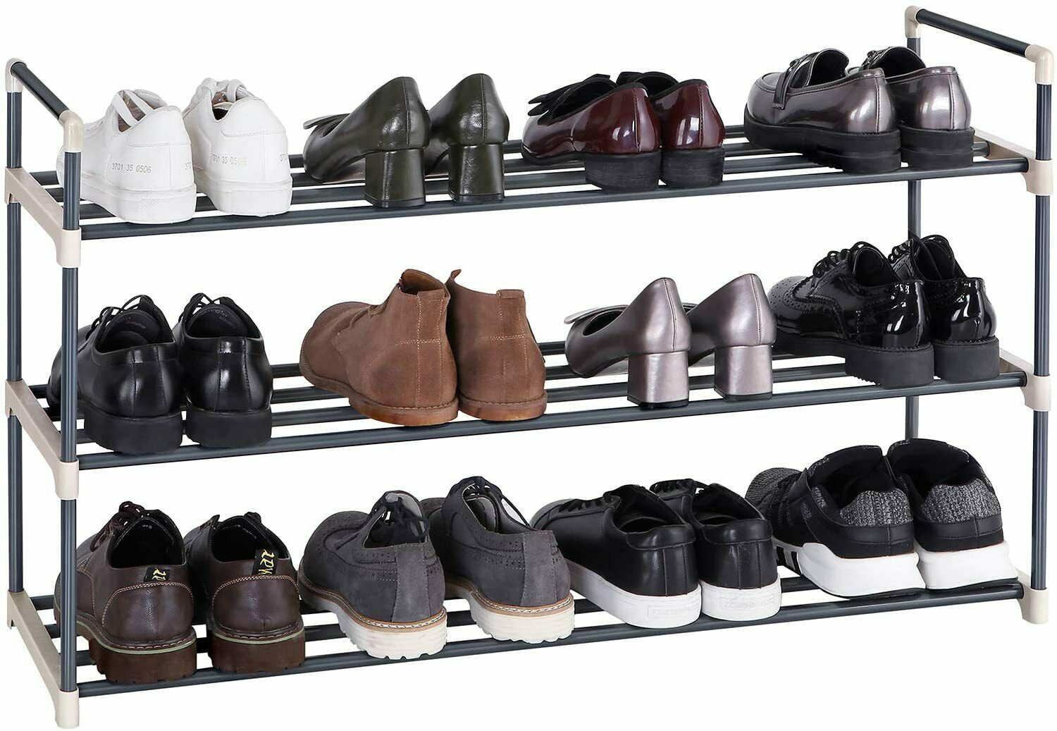 3 Tier Shoe Rack Metal Storage Organiser Shelf Unit 15 Pairs Entryway Hallway