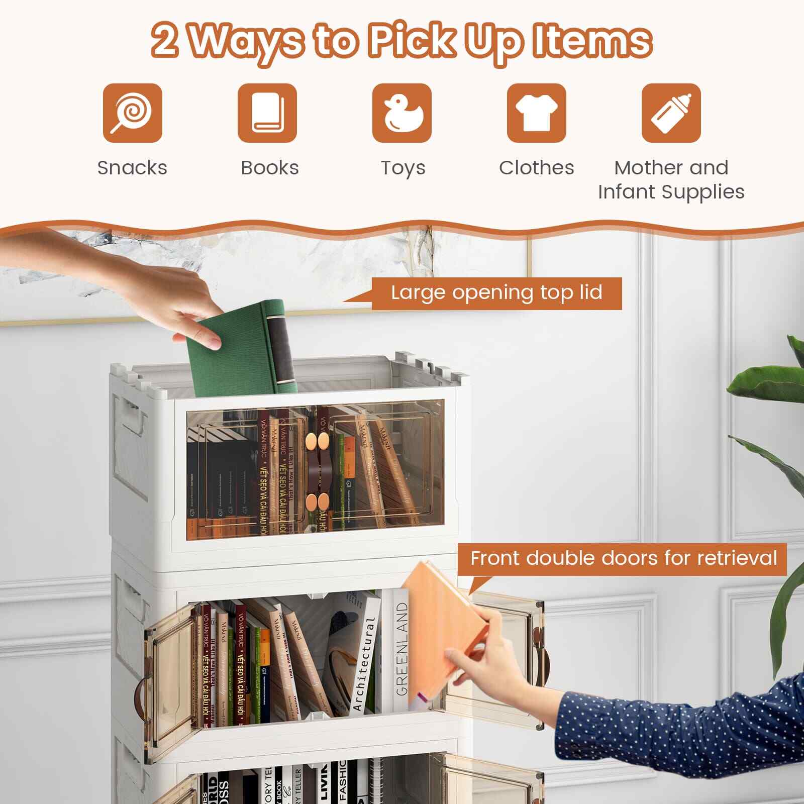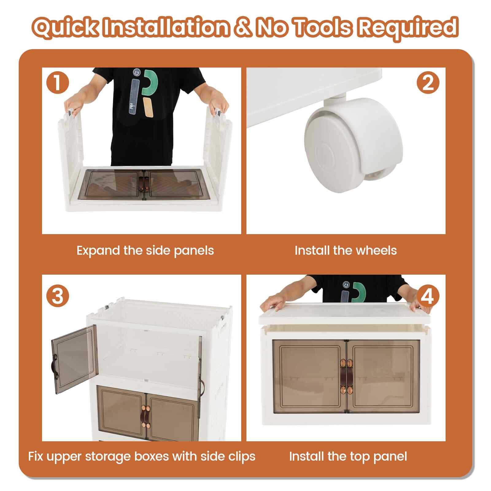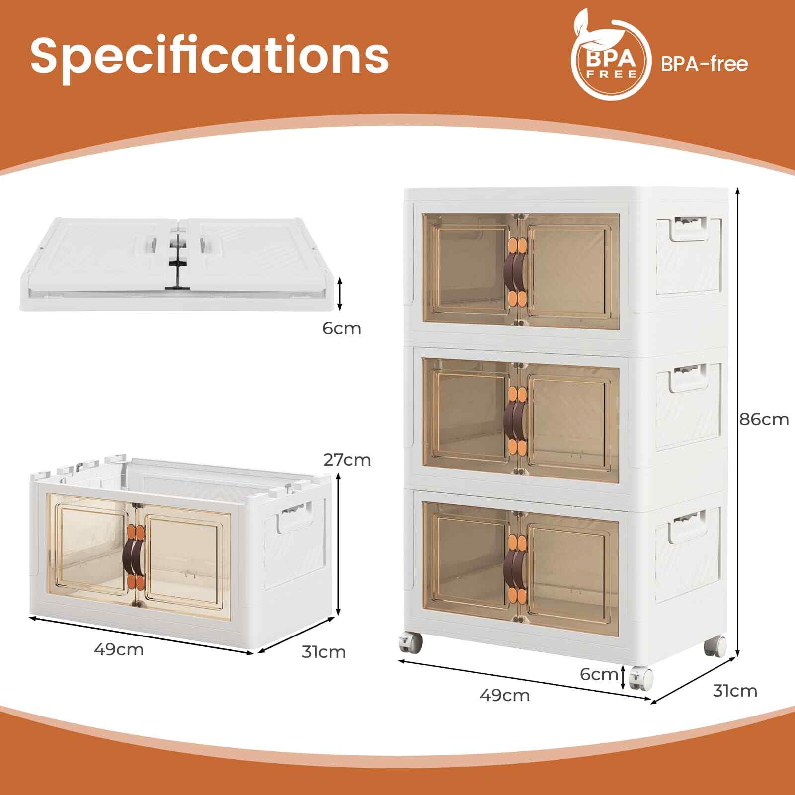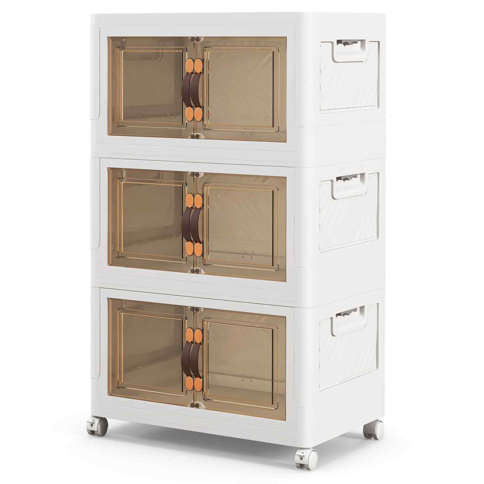 3 Tier Stackable Storage Box Folding Shoe Cabinet w/Lockable Wheels-White
