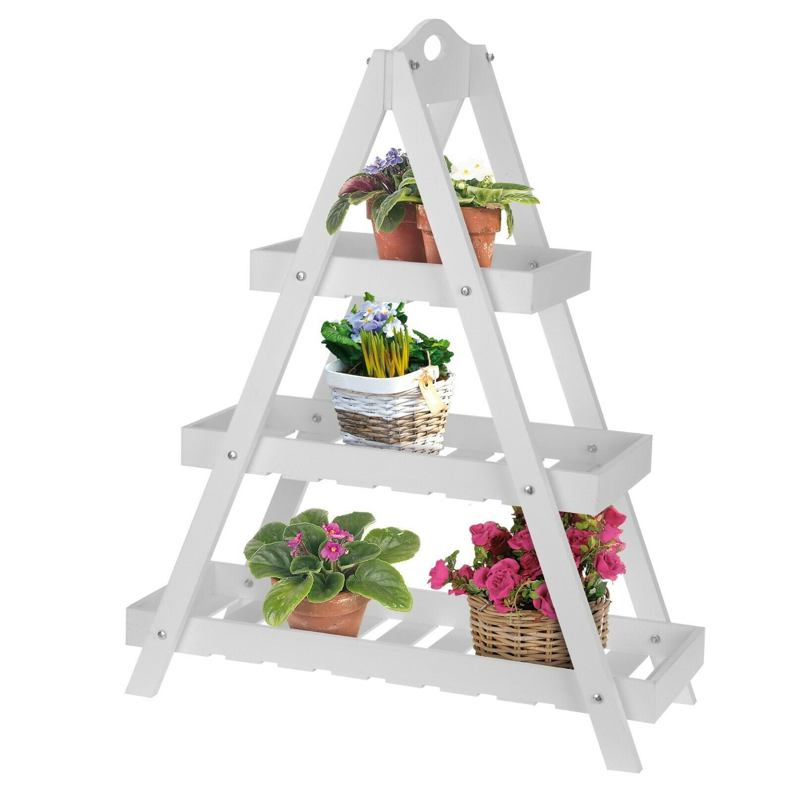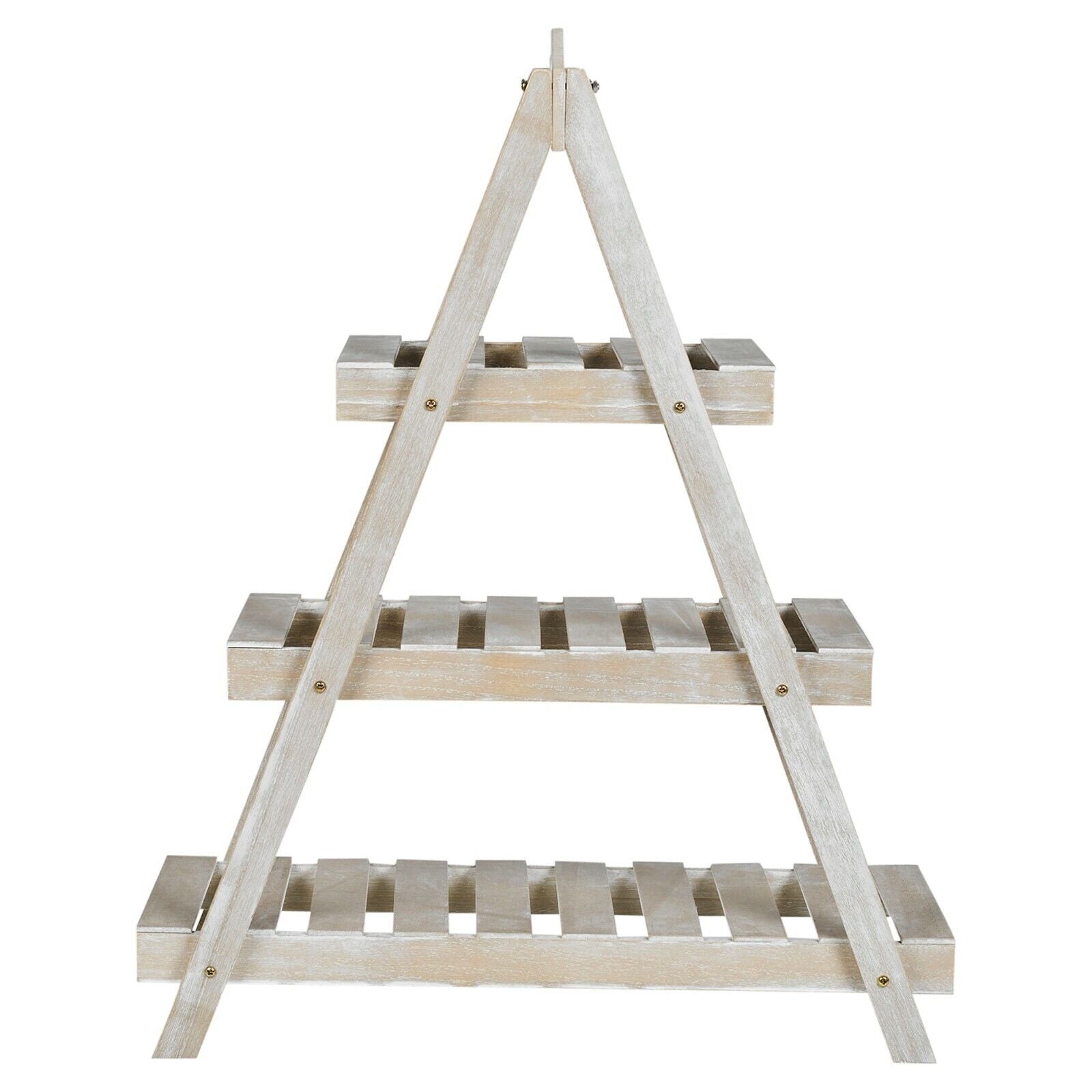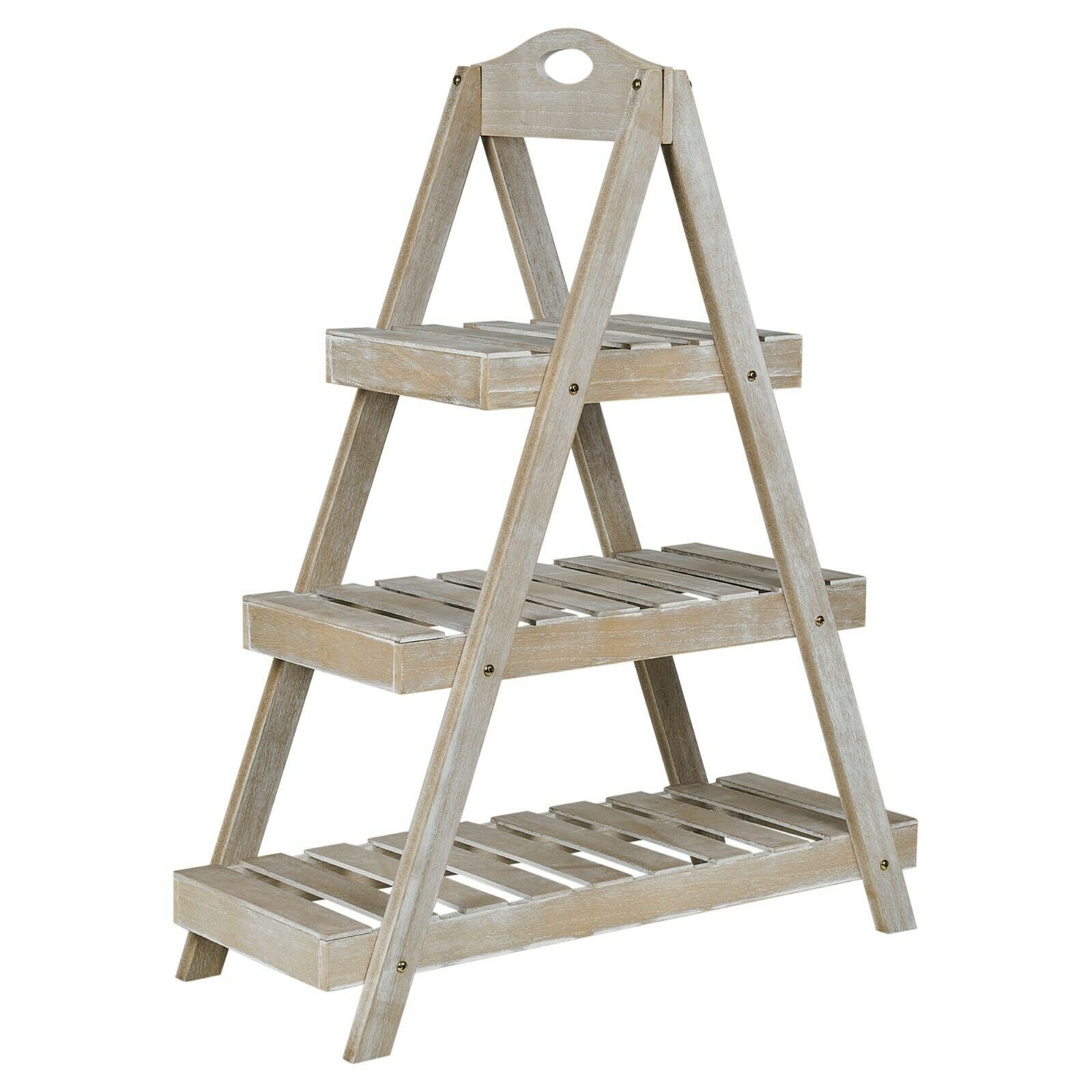 3-Tier Triangular Wooden Plant Ladder Stand Rustic Garden Flower Display Shelf