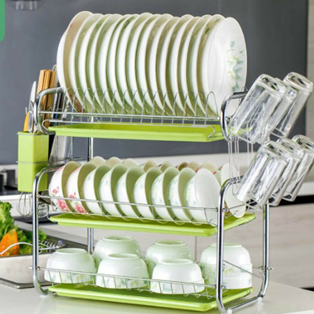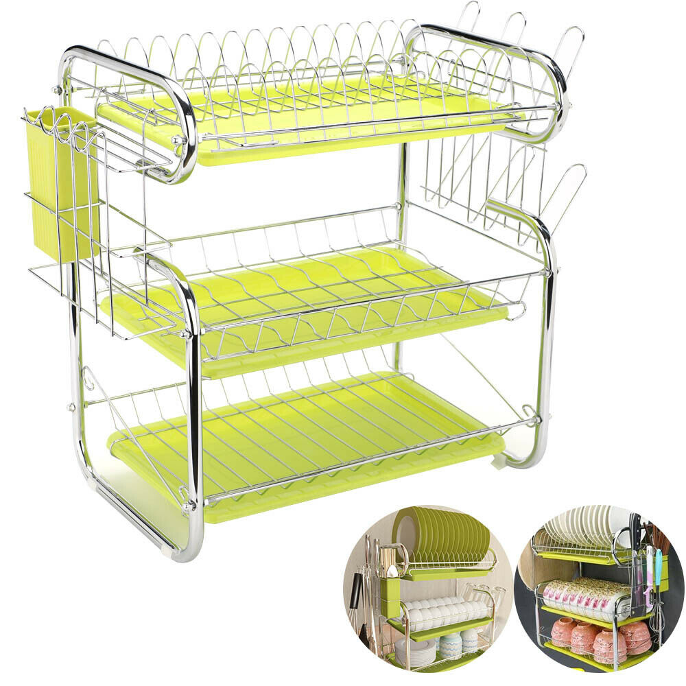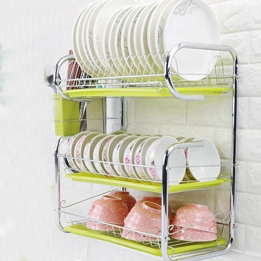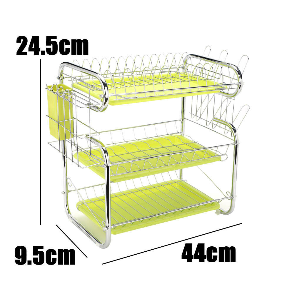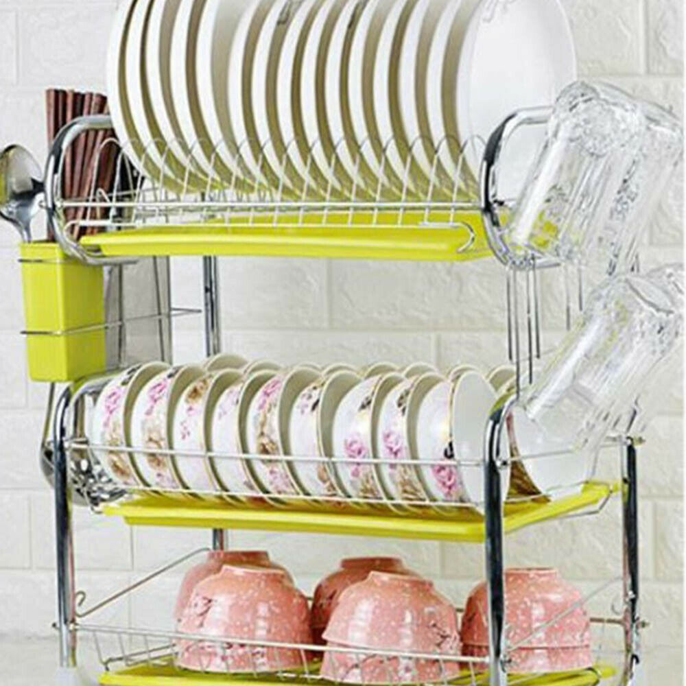 3 Tier White Kitchen Plate Rack Tidy Cupboard Shelf Insert Organiser Drainer