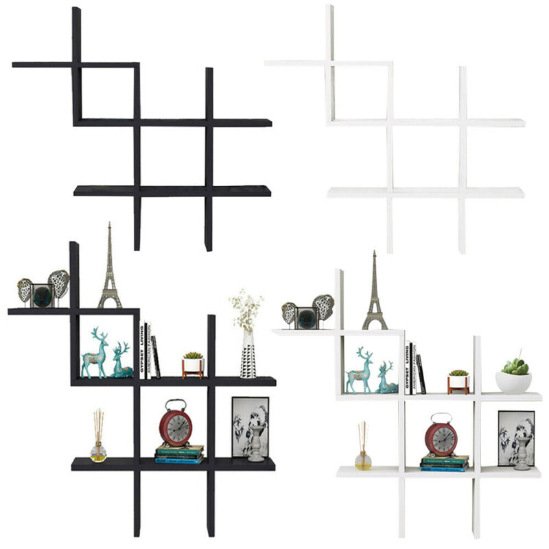 3 Tier Wood Floating Wall Shelves Storage Home Display Shelf Cube Bookcase Rack