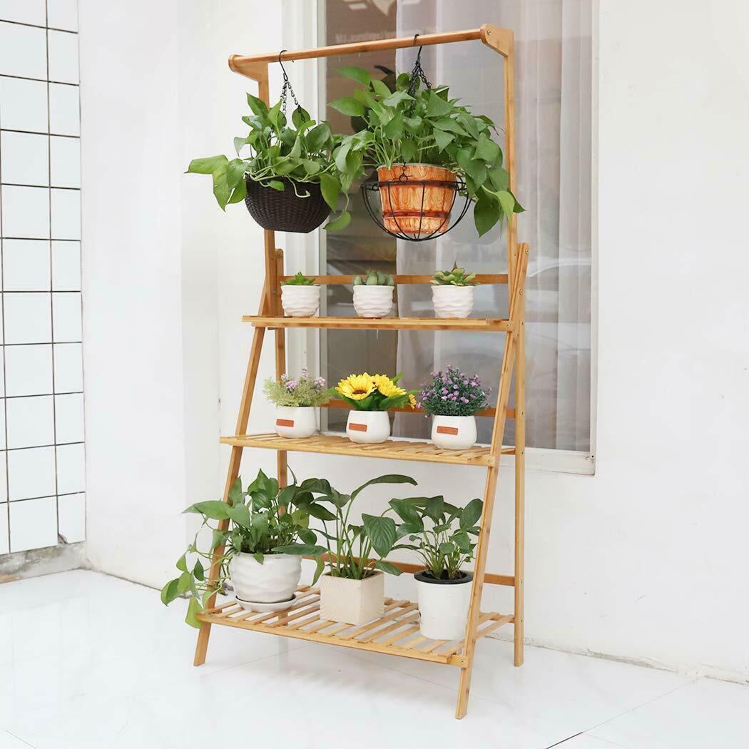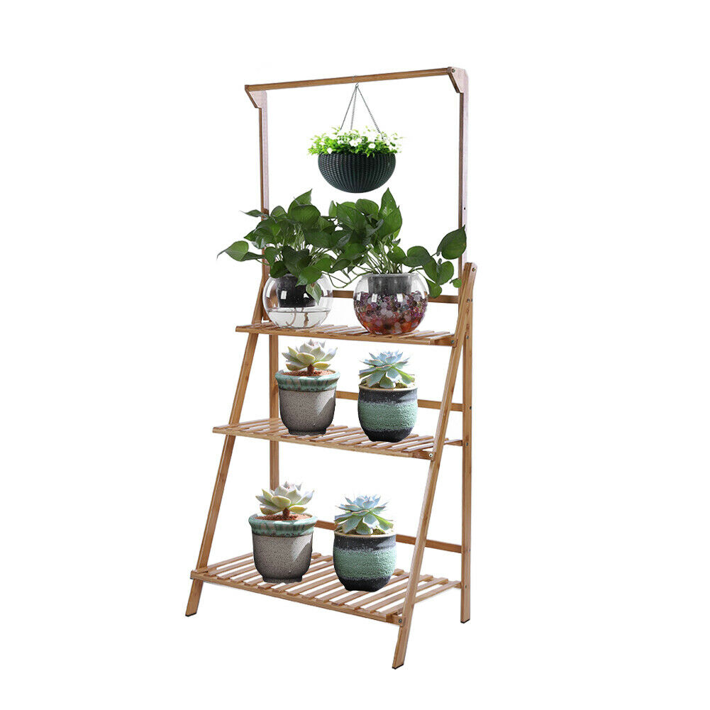 3 Tier Wood Flower Plant Pot Shelf Stand Display Ladder Hanging Rack Home Garden